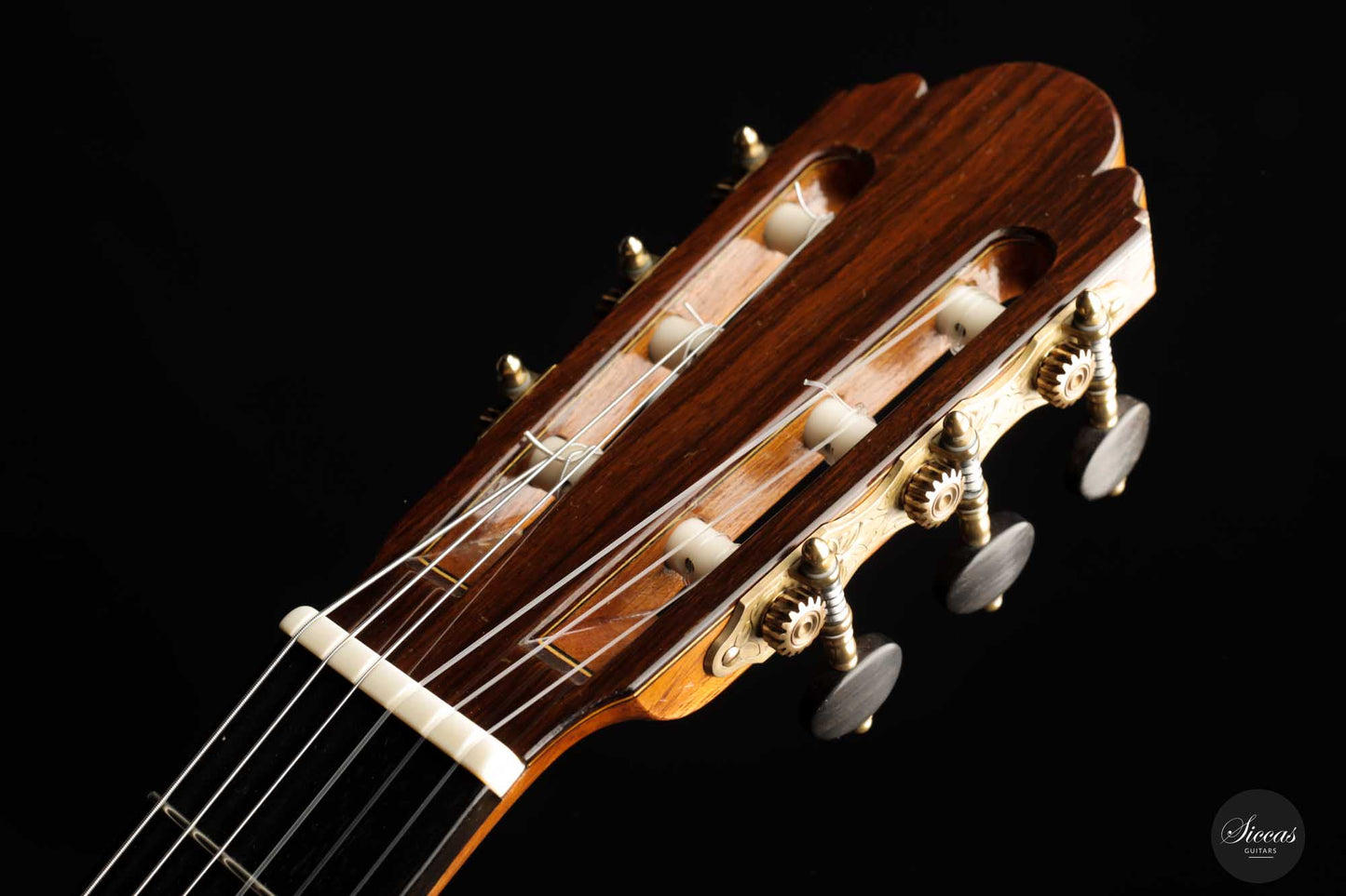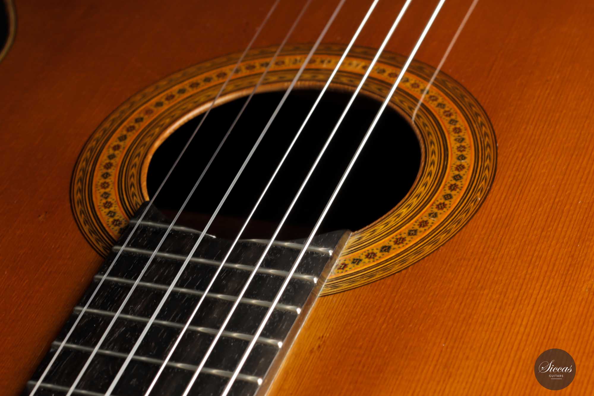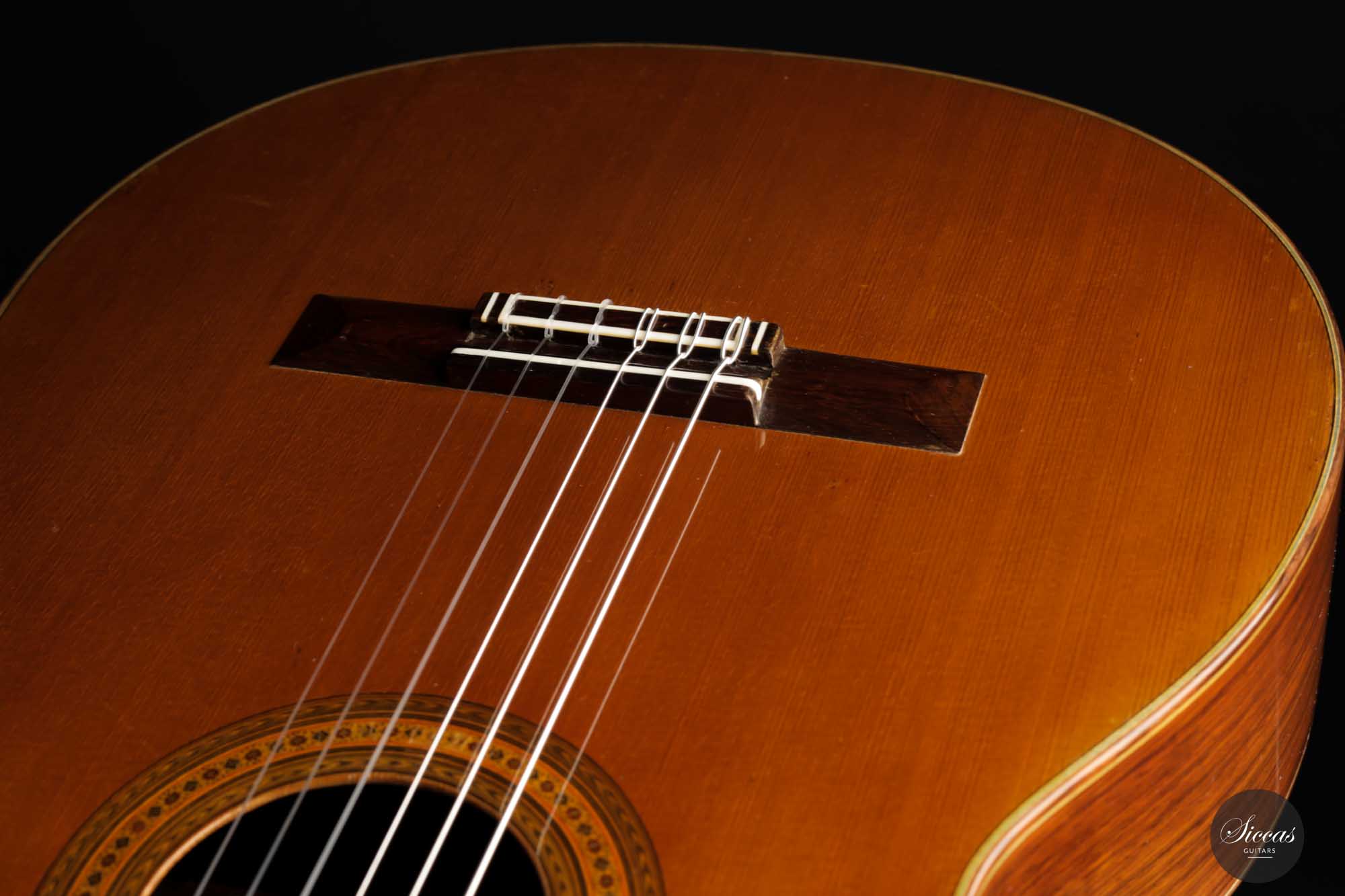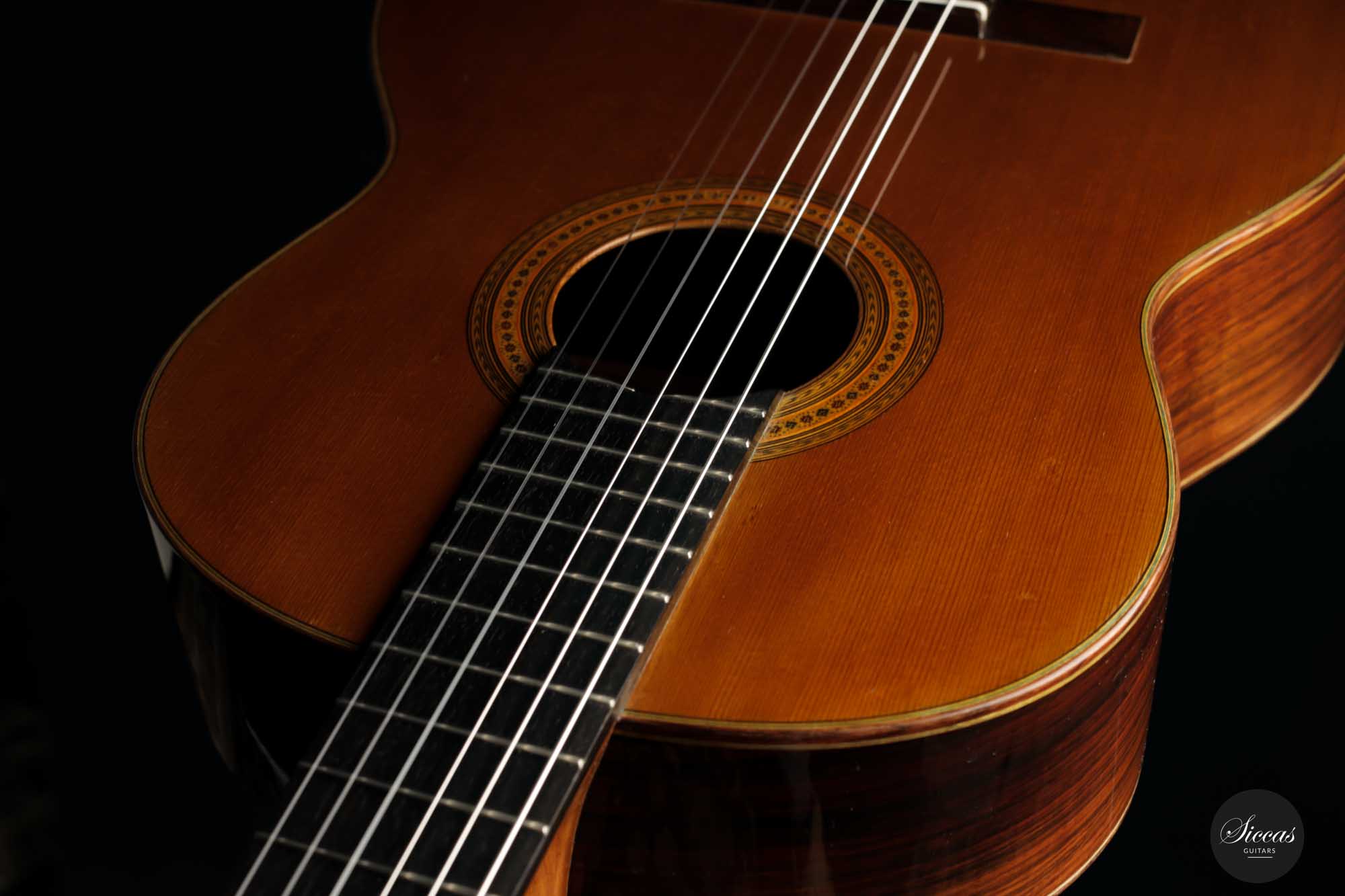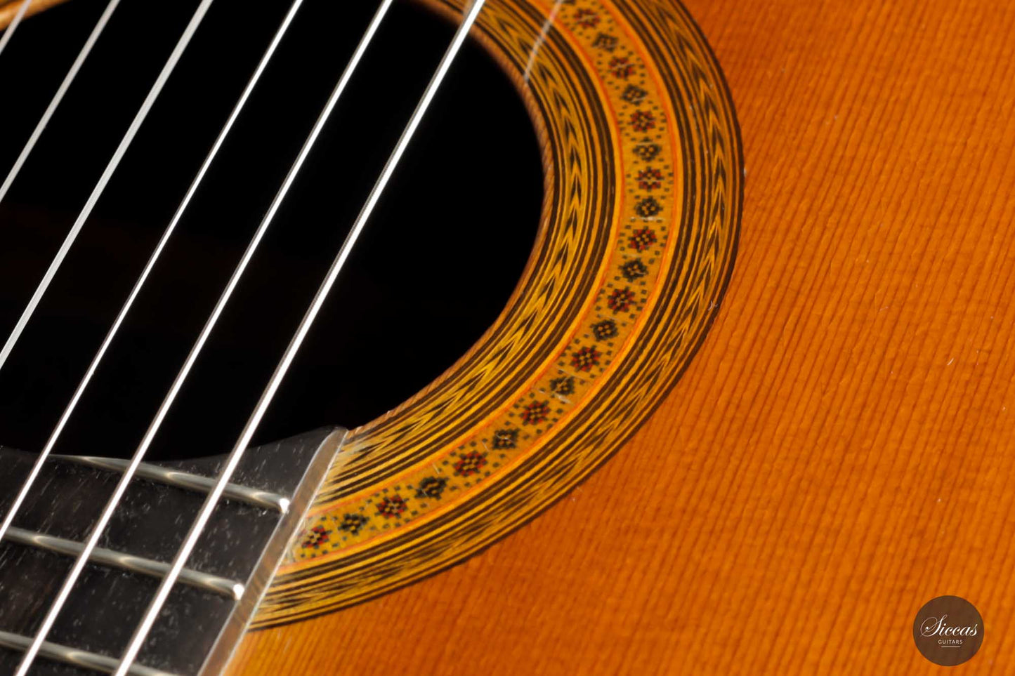 Many players and aficionados consider Ignacio Fleta's 1970s guitars as the golden cedar period of his career due to their magical, powerful, and rich sound. This beautiful 1973 guitar, numbered 637, is indeed no exception. Its dark cedar soundboard perfectly matches its haunting, mysterious, and dark tonal characteristics. Adding to it the striking Indian rosewood back and sides, this instrument is truly a treat for the eyes. Most importantly, this guitar has been well-preserved throughout its life and is now in a rare-to-find condition with no structural damage. Only the finish of this guitar has been refreshed masterfully. Furthermore, the poetic voices and colors of this instrument will bring any musical work into the world of storytelling. Other remarkable characteristics of this guitar are its G# body resonance, almost cello-like, and its excellent separation of voices, especially when playing chordal passages. This is undoubtedly a fine example from one of the greatest luthiers of the 20th century. A very desirable instrument for both collector and performer.