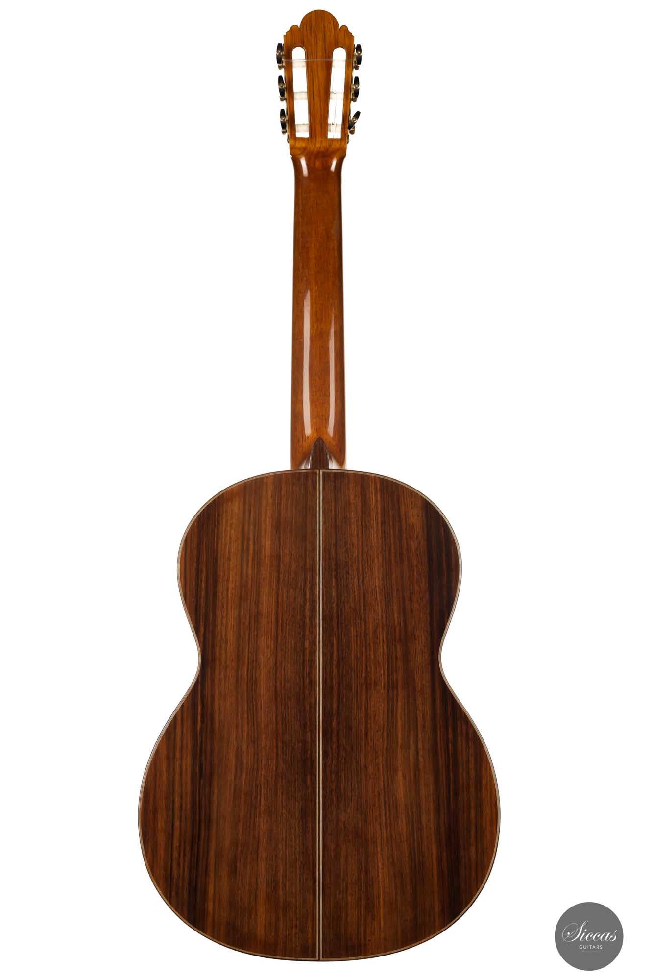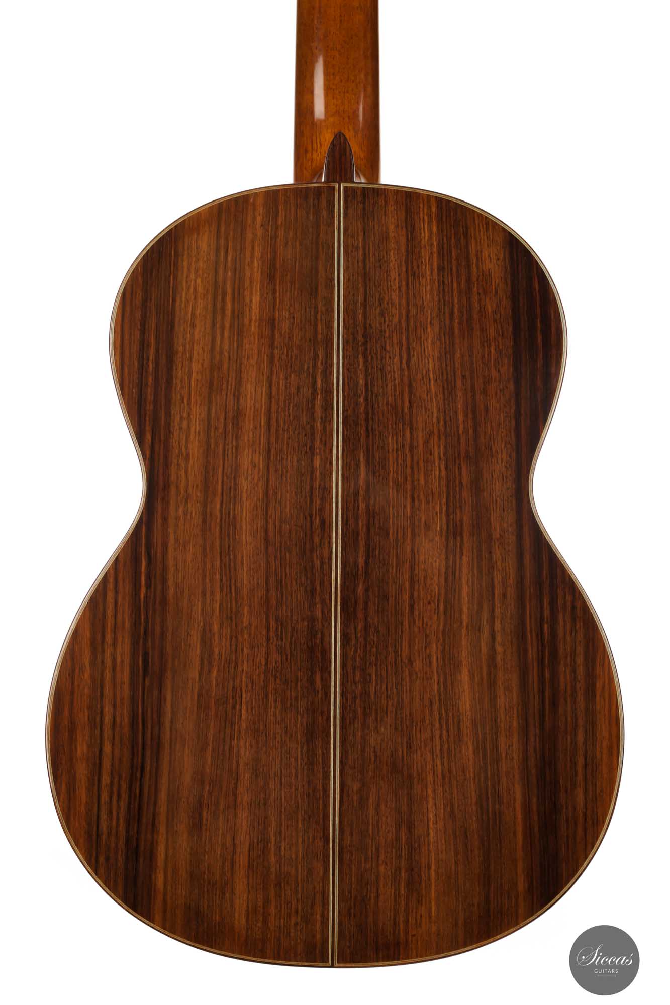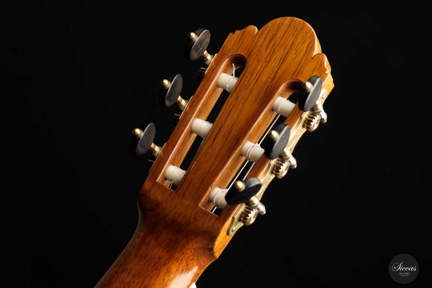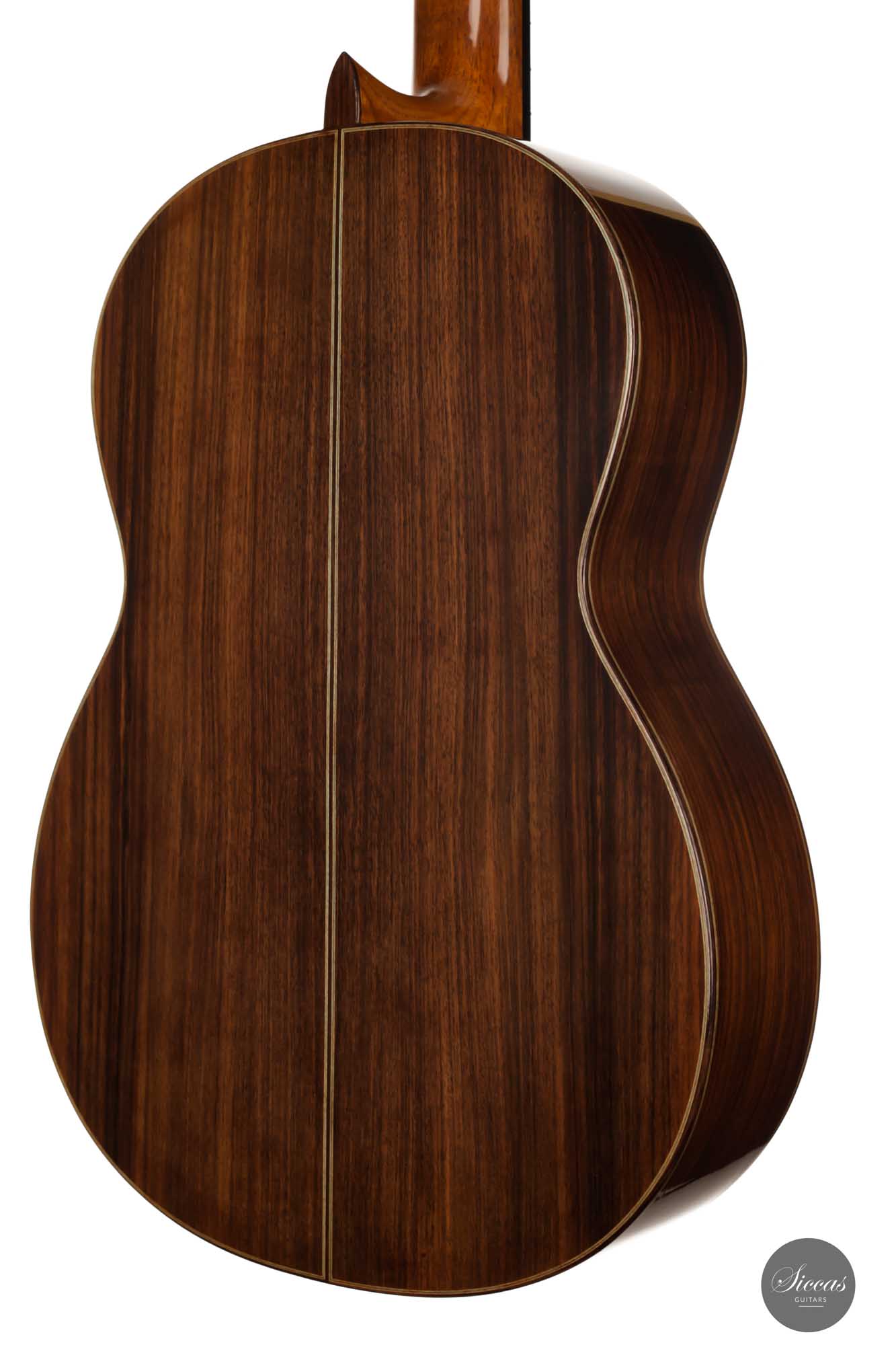 Many players and aficionados consider Ignacio Fleta's 1970s guitars as the golden cedar period of his career due to their magical, powerful, and rich sound. This beautiful 1973 guitar, numbered 637, is indeed no exception. Its dark cedar soundboard perfectly matches its haunting, mysterious, and dark tonal characteristics. Adding to it the striking Indian rosewood back and sides, this instrument is truly a treat for the eyes. Most importantly, this guitar has been well-preserved throughout its life and is now in a rare-to-find condition with no structural damage. Only the finish of this guitar has been refreshed masterfully. Furthermore, the poetic voices and colors of this instrument will bring any musical work into the world of storytelling. Other remarkable characteristics of this guitar are its G# body resonance, almost cello-like, and its excellent separation of voices, especially when playing chordal passages. This is undoubtedly a fine example from one of the greatest luthiers of the 20th century. A very desirable instrument for both collector and performer.