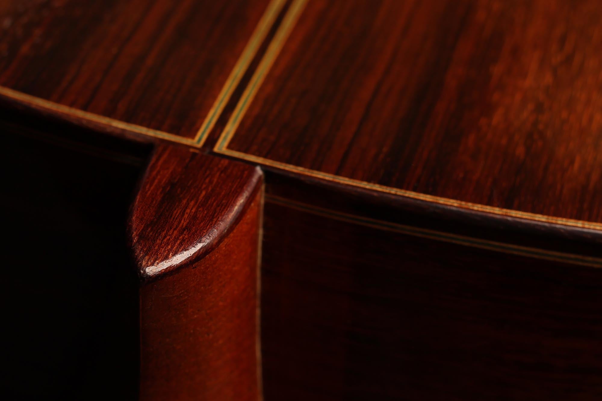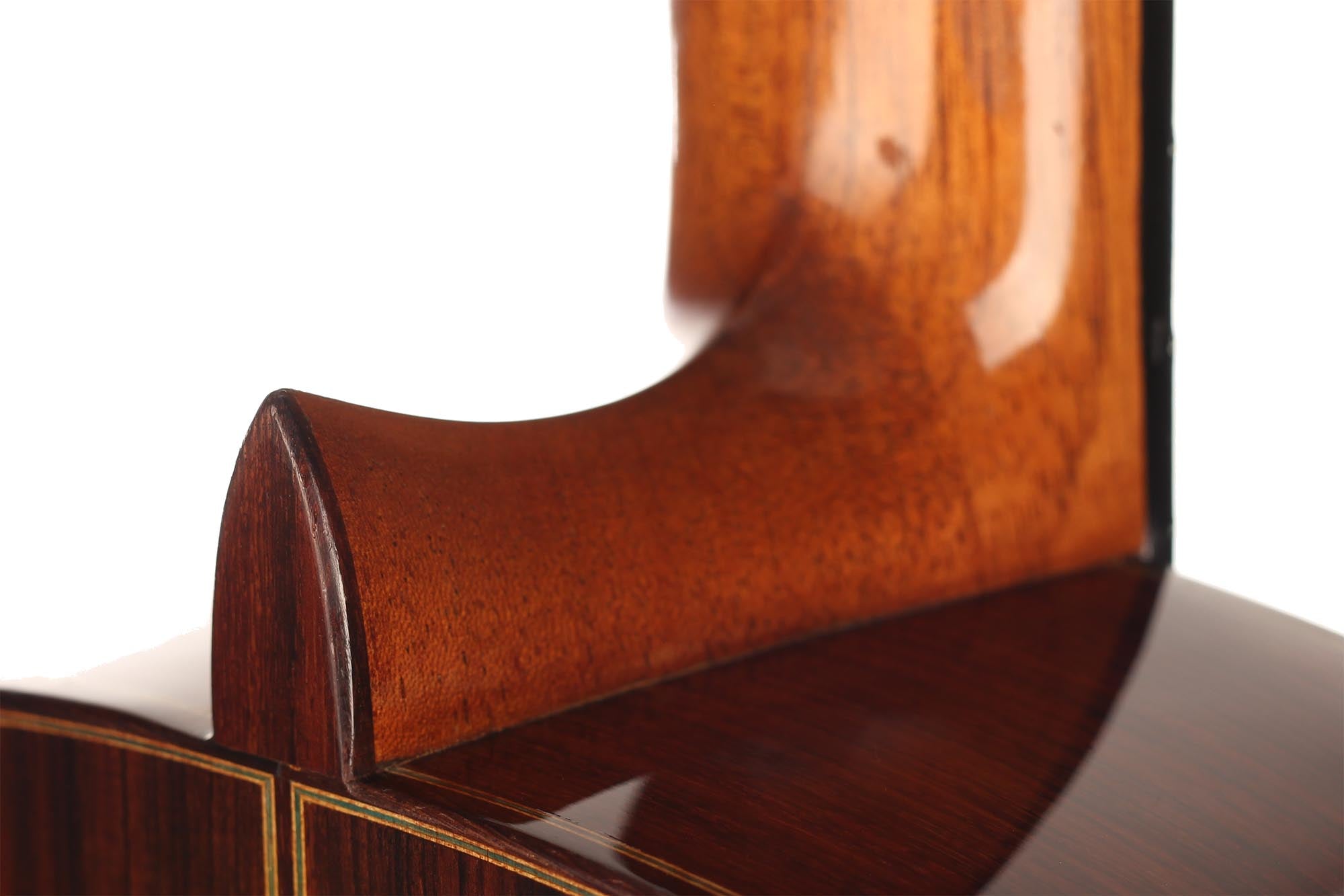 This guitar has the spontaneous and powerful character that we know well from the guitars built by Fleta. Each time we receive one of these instruments, we are impressed by the volume they produce, and this one is particularly captivating. It is an instrument of great lyricism, and its perfect playability allows the guitarist to give free rein to his inspiration. The timbre is round and warm with an astounding sustain and perfect balance. The guitars of Ignacio Fleta have strongly influenced an entire era, and this magnificent instrument shows us why.