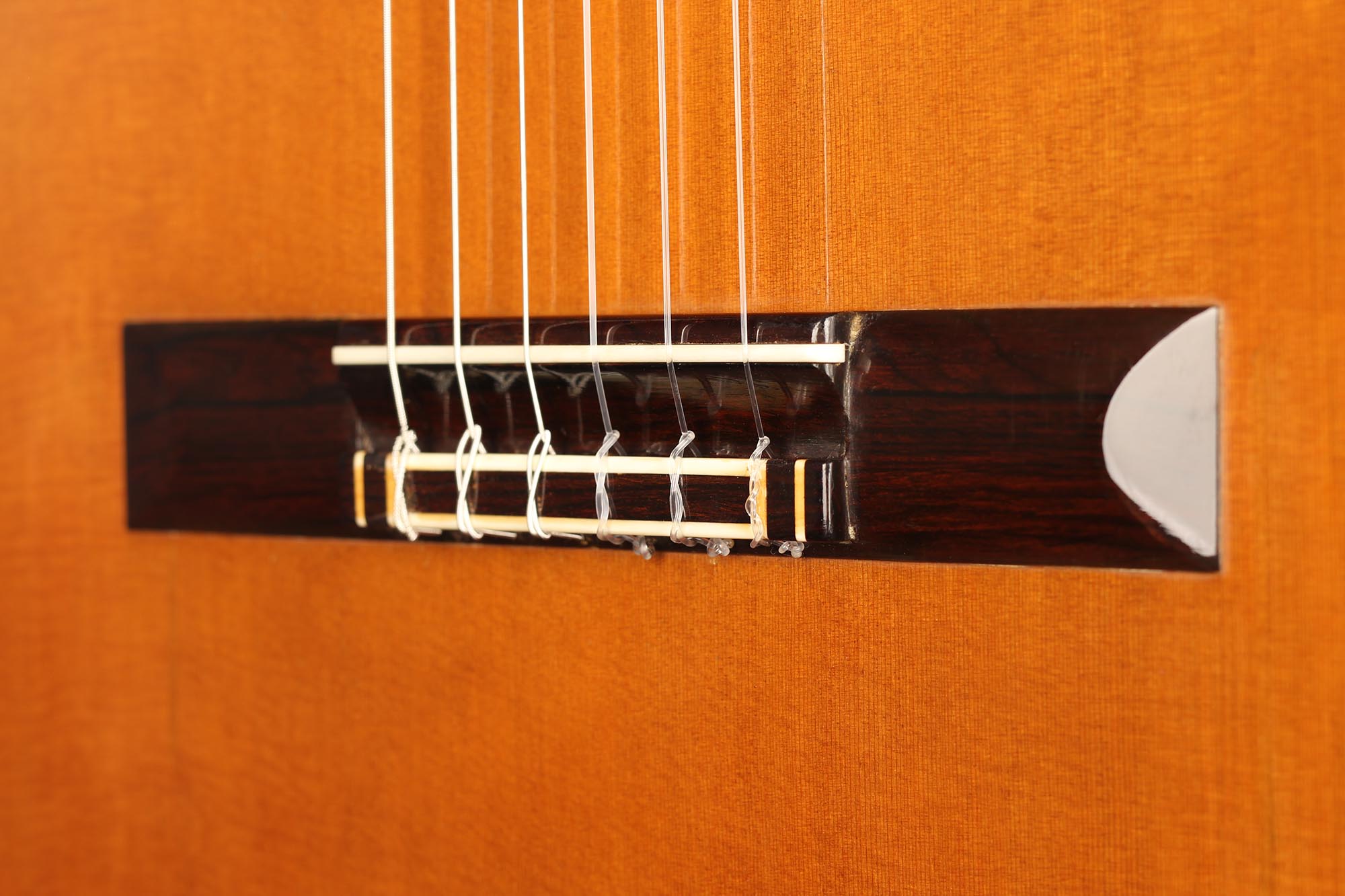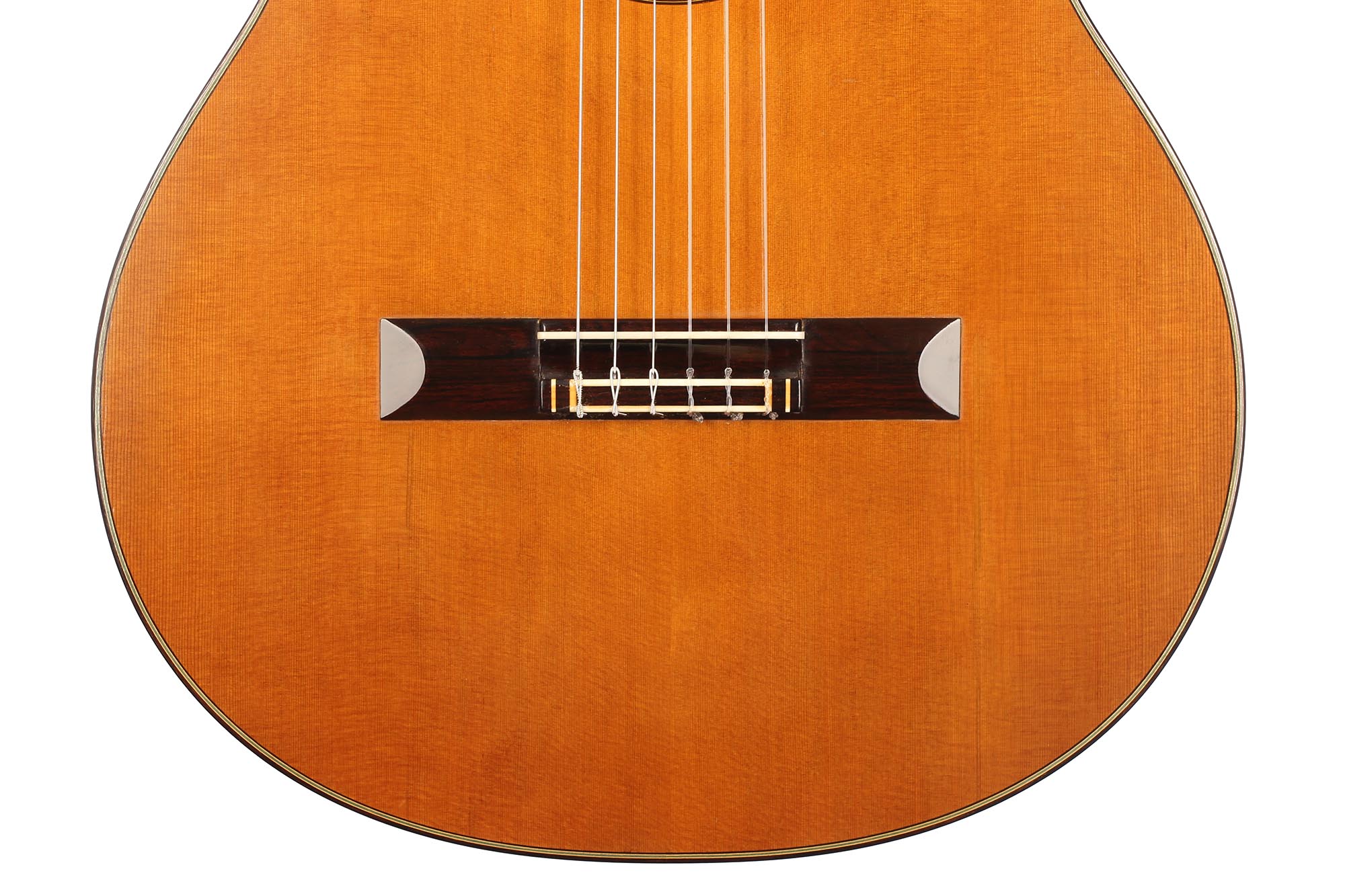 This 1982 guitar is absolutely beautiful, with a nice set of straight-grained Indian rosewood and a first-class red cedar top. The condition is very good with just some varnish wear and two cracks on the top, that have been perfectly repaired by Fleta in their workshop and have been stable for more than twenty years now.