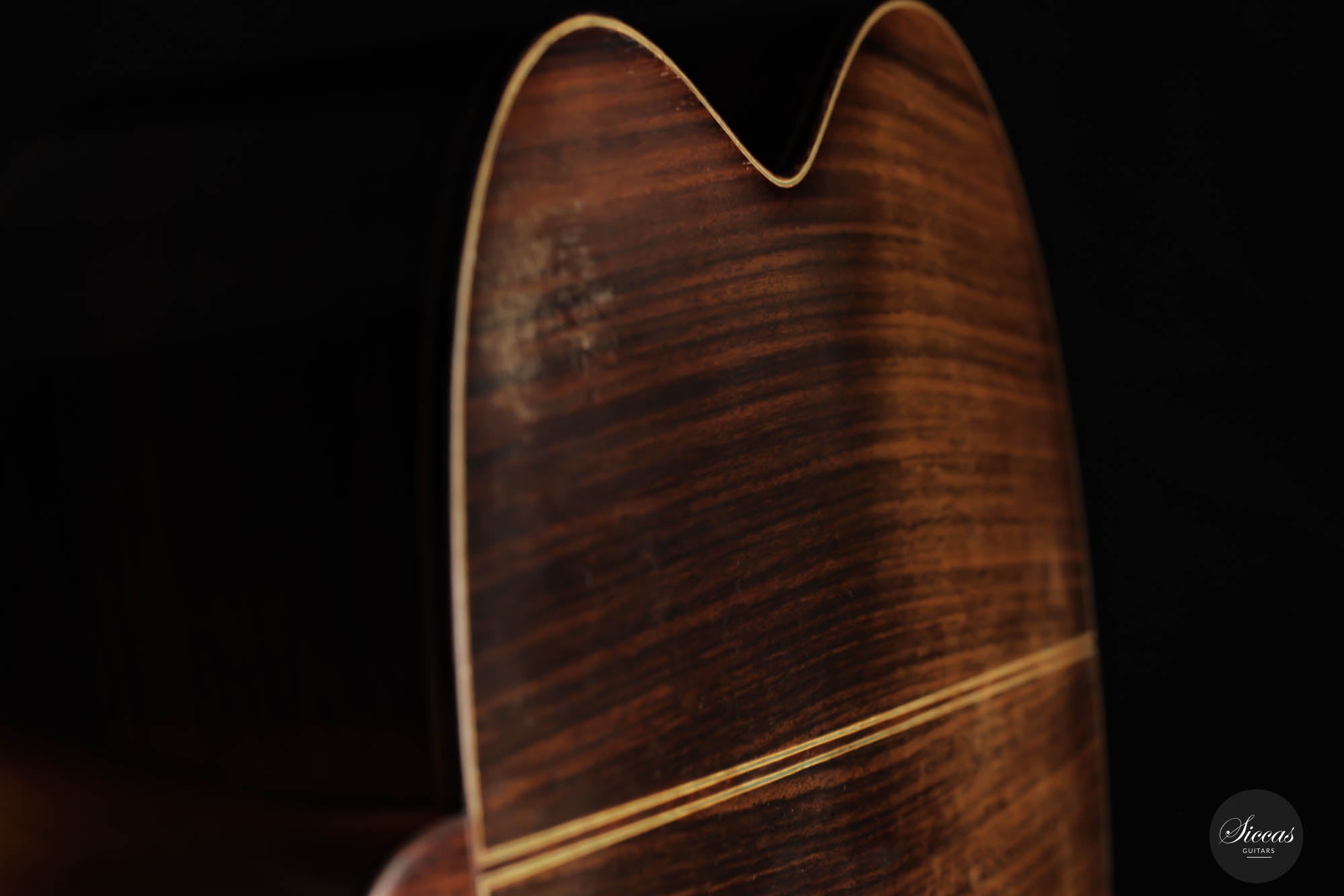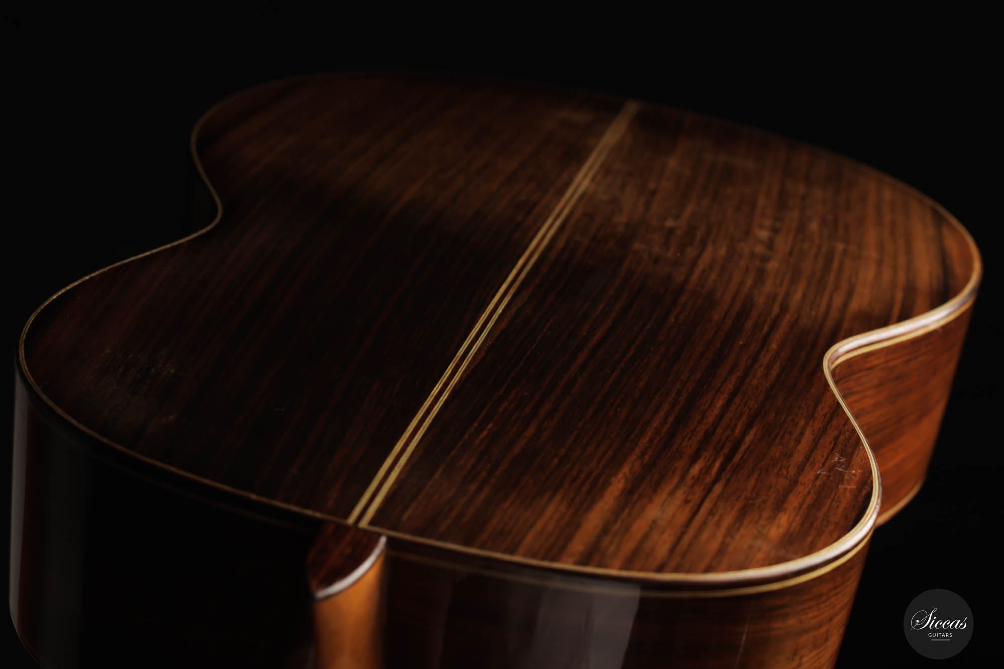 Ignacio Fleta (1897-1977) is one of the most famous luthiers of the twentieth century. In addition to being a successful guitar maker, he was a recognized bowed and ancient instruments luthier (violins, violas, cellos, vihuelas, and violas de gamba). After his death, his work was continued by his two sons Gabriel and Francisco Fleta and later by his grandson Gabriel Fleta Jr. The current waiting time for a new guitar is about 20 years. Fleta follow a different concept than other Spanish luthiers from, for example, Andalusia. Their guitars are characterized among other things by a 9-fan-bracing instead of 5 or 7-fan bracing.