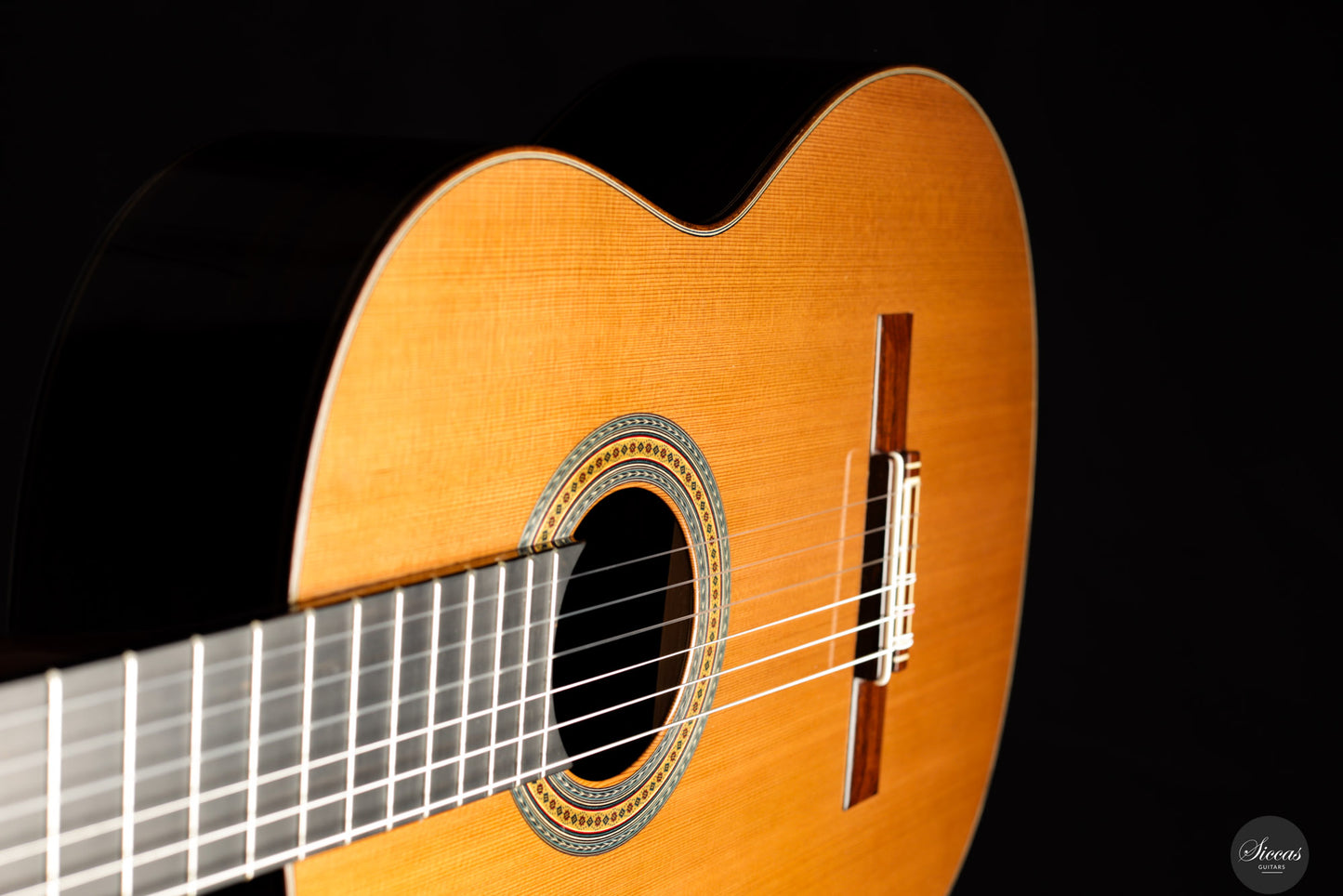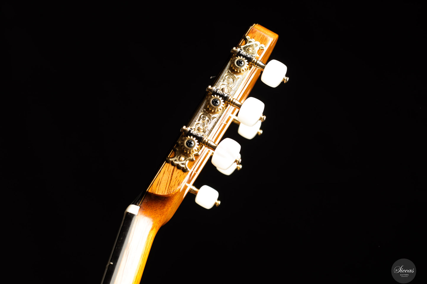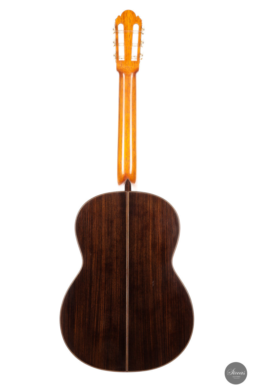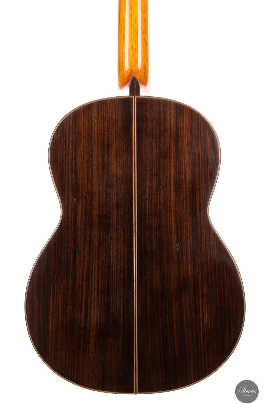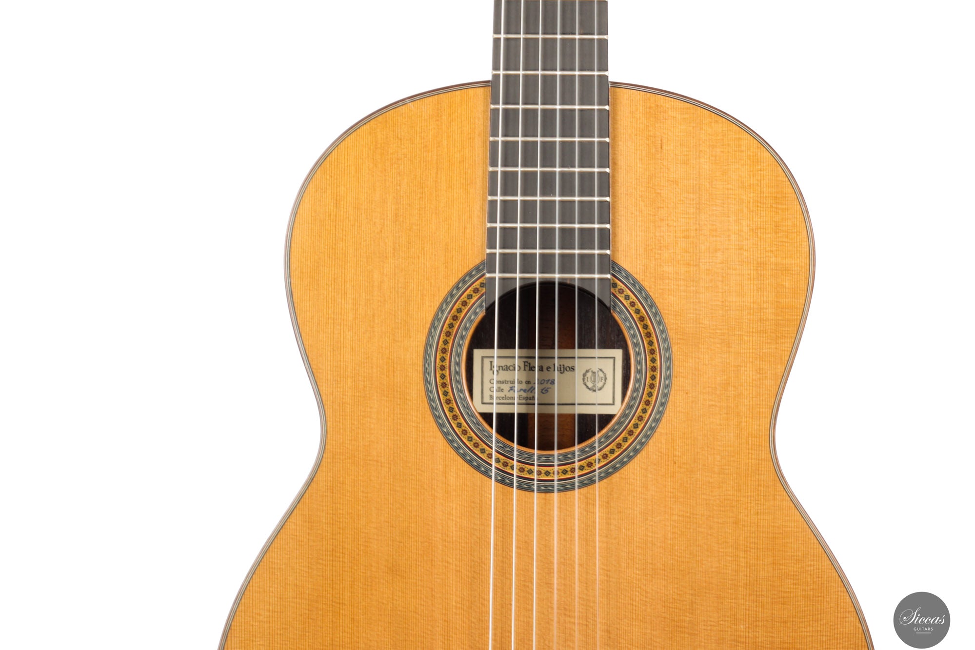This 2018 guitar by Ignacio Fleta is a truly exceptional and rare instrument that embodies the finest traditions of one of the most legendary Spanish guitar makers. Built in the iconic Fleta workshop in Barcelona, this guitar reflects the pinnacle of luthier craftsmanship, tone, and power for which Ignacio Fleta has long been revered. The trebles are full of character and presence—warm, dark, and rounded, with a sweet, lyrical voice that responds beautifully to left-hand vibrato. Each note carries a singing quality that invites deep musical expression. The bass register is powerful and rich, yet well-balanced, giving the entire instrument a broad tonal spectrum and a remarkable depth. In terms of projection and volume, the guitar is a powerhouse. It delivers concert-level dynamics, making it ideal for solo recitals or ensemble settings. The guitar speaks with authority in every setting and offers a commanding yet nuanced sound.