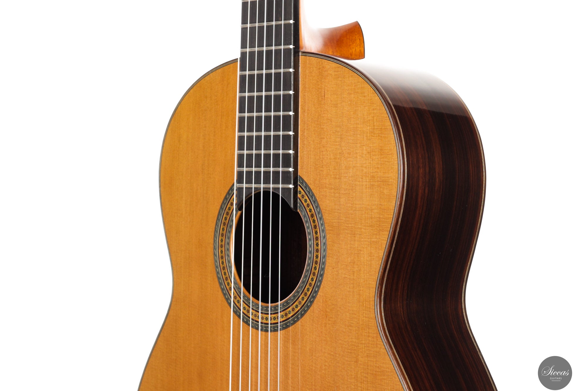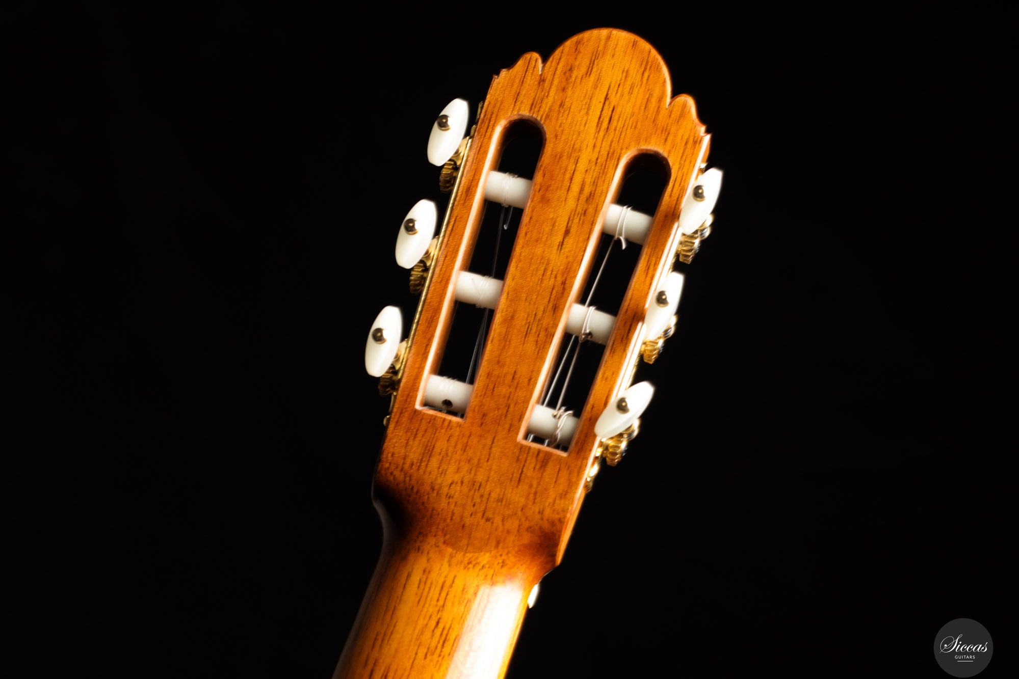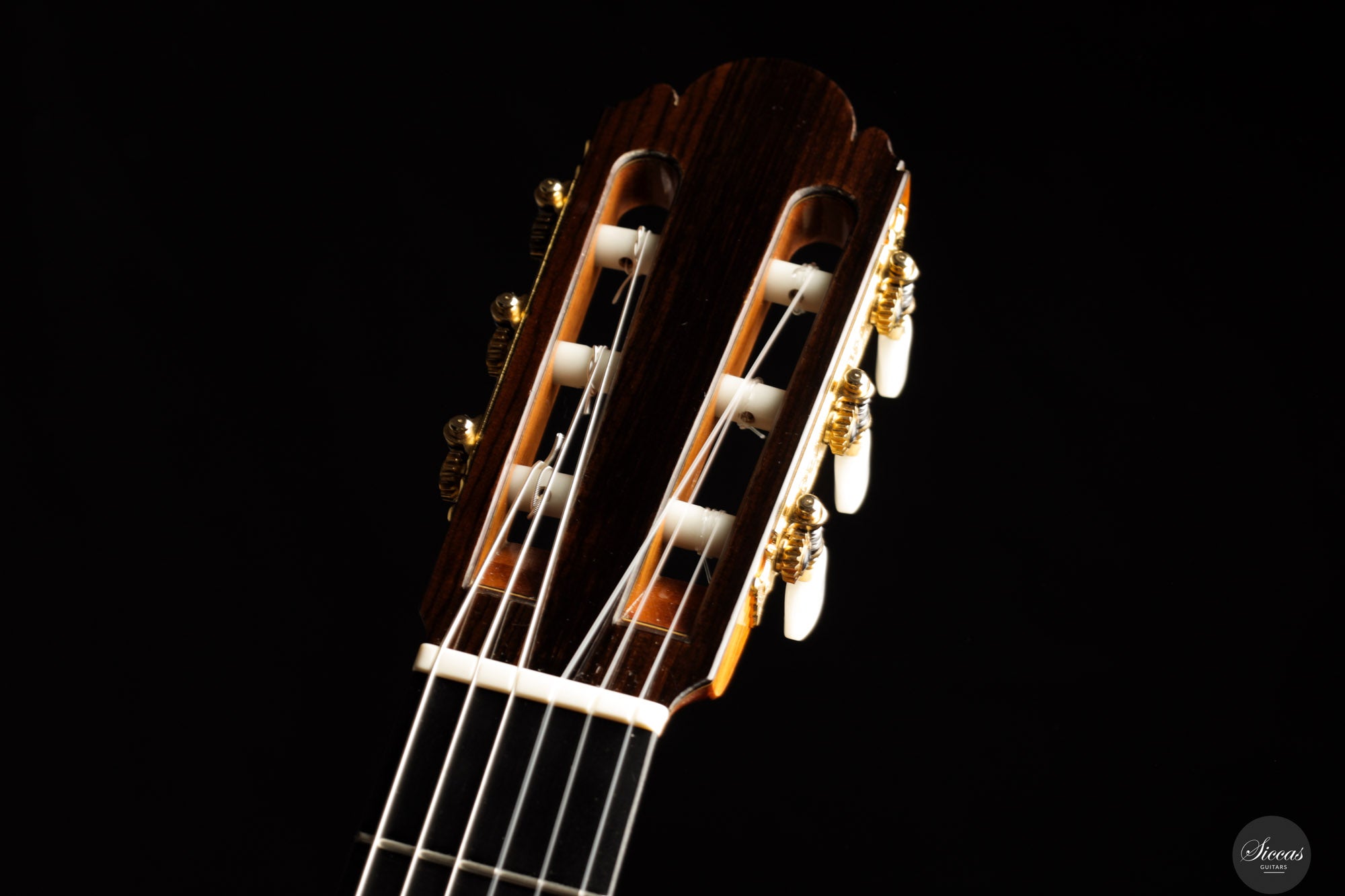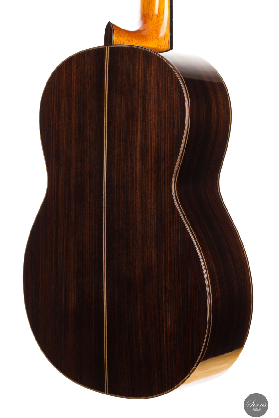 This 2018 guitar by Ignacio Fleta is a truly exceptional and rare instrument that embodies the finest traditions of one of the most legendary Spanish guitar makers. Built in the iconic Fleta workshop in Barcelona, this guitar reflects the pinnacle of luthier craftsmanship, tone, and power for which Ignacio Fleta has long been revered. The trebles are full of character and presence—warm, dark, and rounded, with a sweet, lyrical voice that responds beautifully to left-hand vibrato. Each note carries a singing quality that invites deep musical expression. The bass register is powerful and rich, yet well-balanced, giving the entire instrument a broad tonal spectrum and a remarkable depth. In terms of projection and volume, the guitar is a powerhouse. It delivers concert-level dynamics, making it ideal for solo recitals or ensemble settings. The guitar speaks with authority in every setting and offers a commanding yet nuanced sound.
