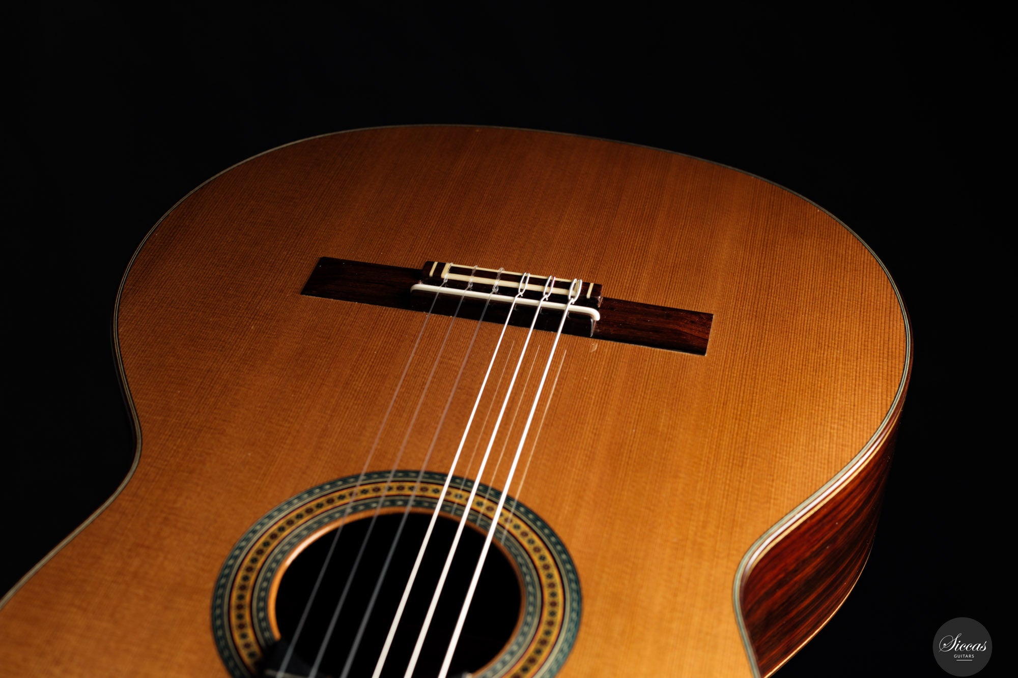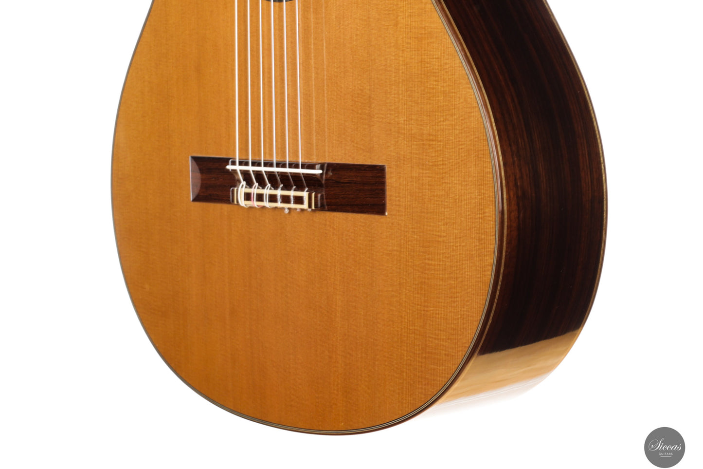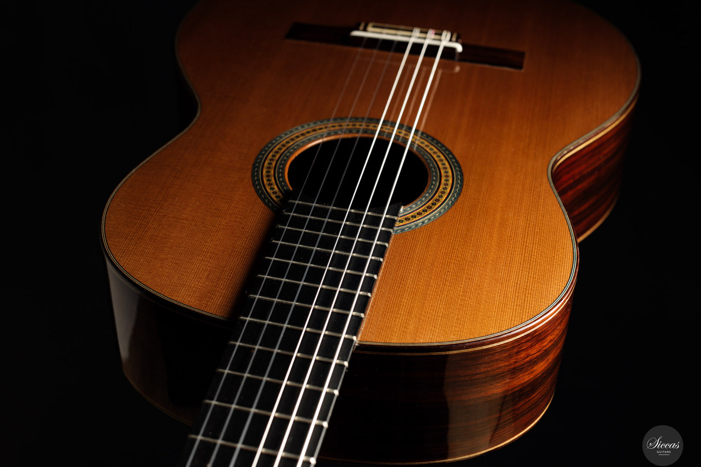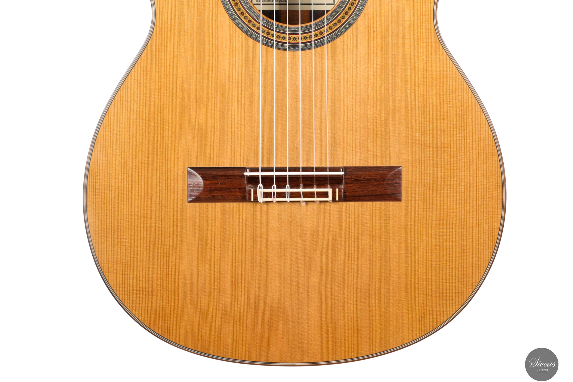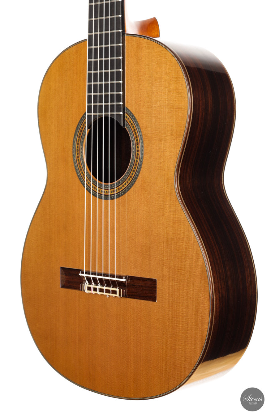 This 2018 guitar by Ignacio Fleta is a truly exceptional and rare instrument that embodies the finest traditions of one of the most legendary Spanish guitar makers. Built in the iconic Fleta workshop in Barcelona, this guitar reflects the pinnacle of luthier craftsmanship, tone, and power for which Ignacio Fleta has long been revered. The trebles are full of character and presence—warm, dark, and rounded, with a sweet, lyrical voice that responds beautifully to left-hand vibrato. Each note carries a singing quality that invites deep musical expression. The bass register is powerful and rich, yet well-balanced, giving the entire instrument a broad tonal spectrum and a remarkable depth. In terms of projection and volume, the guitar is a powerhouse. It delivers concert-level dynamics, making it ideal for solo recitals or ensemble settings. The guitar speaks with authority in every setting and offers a commanding yet nuanced sound.