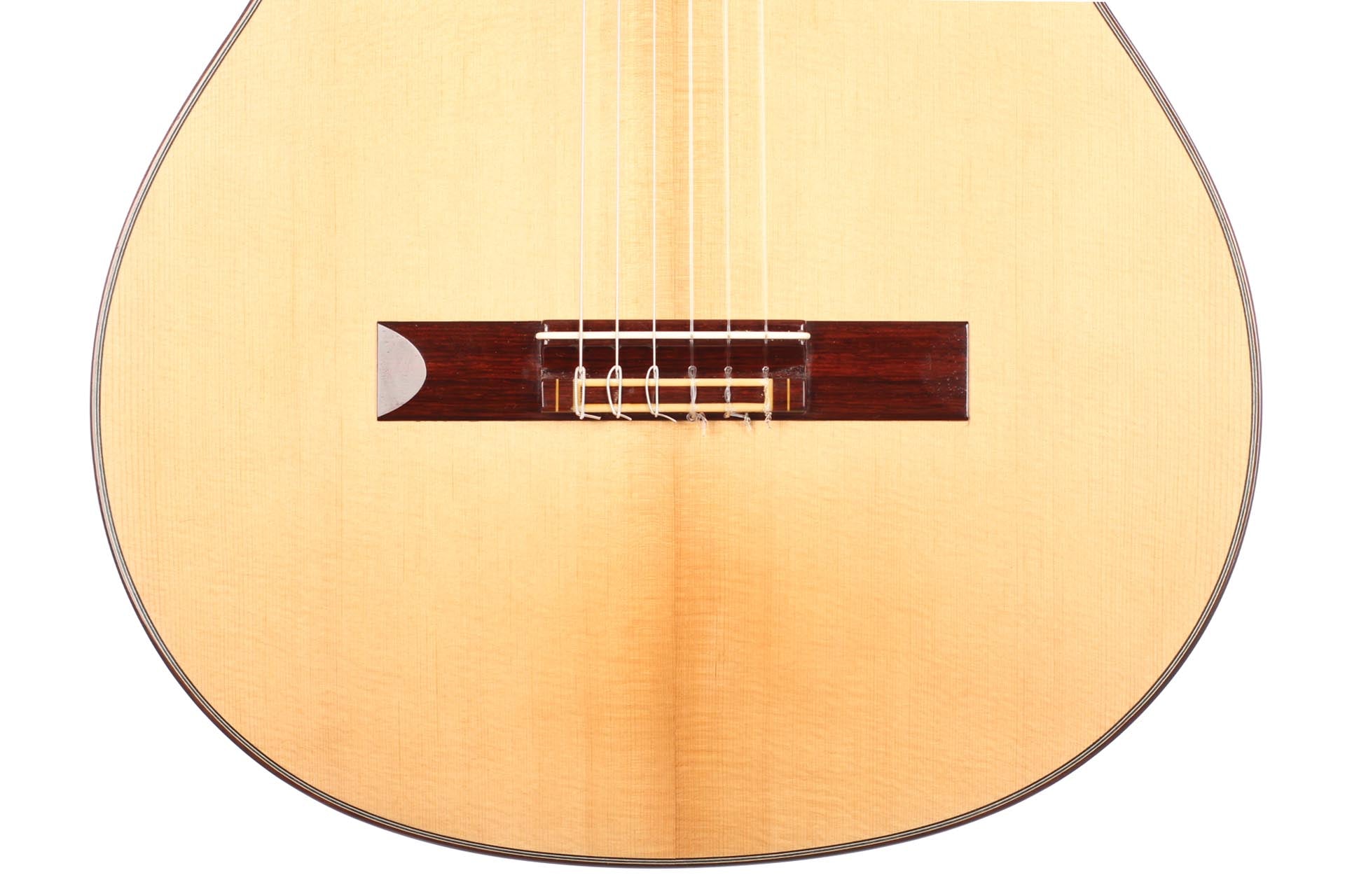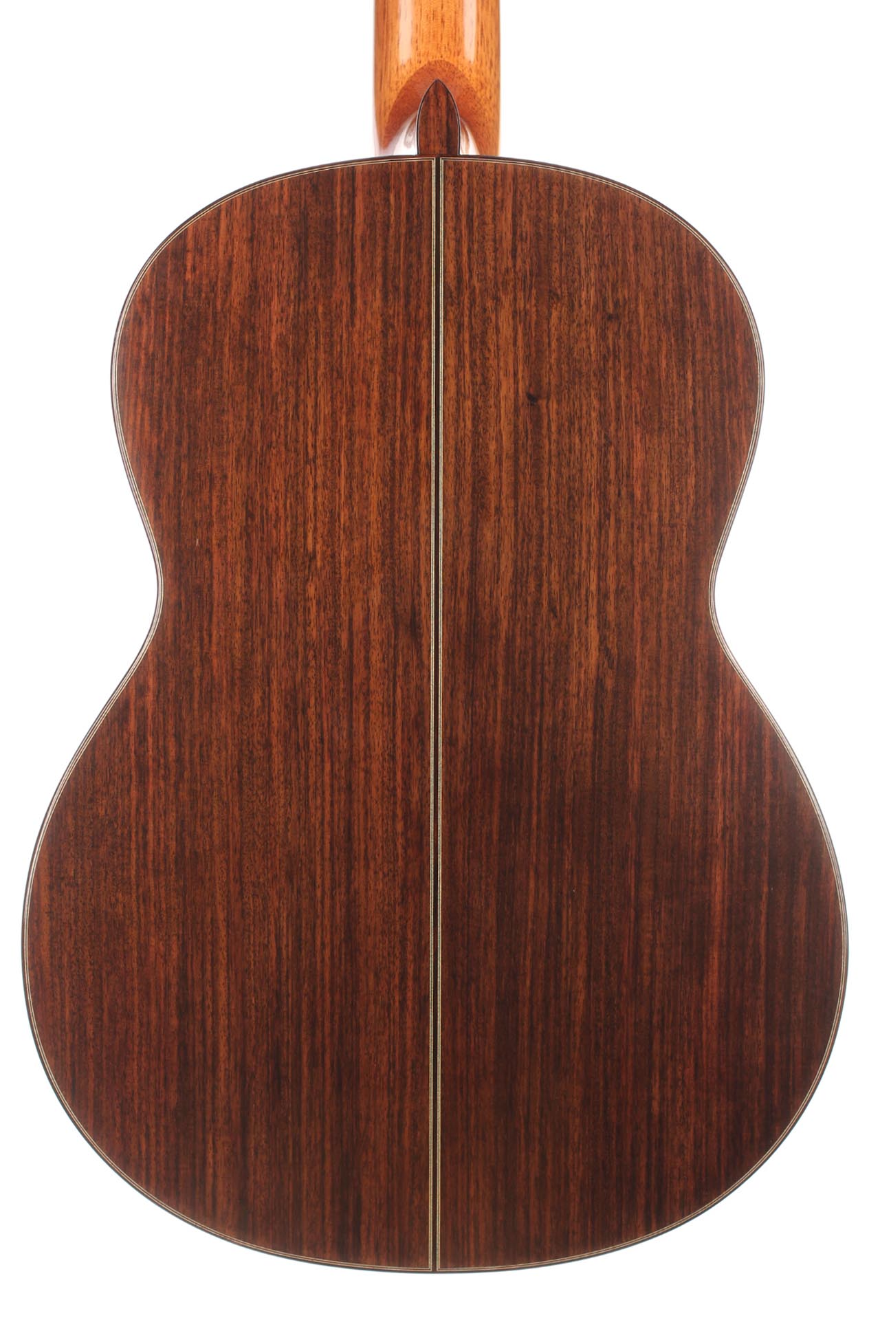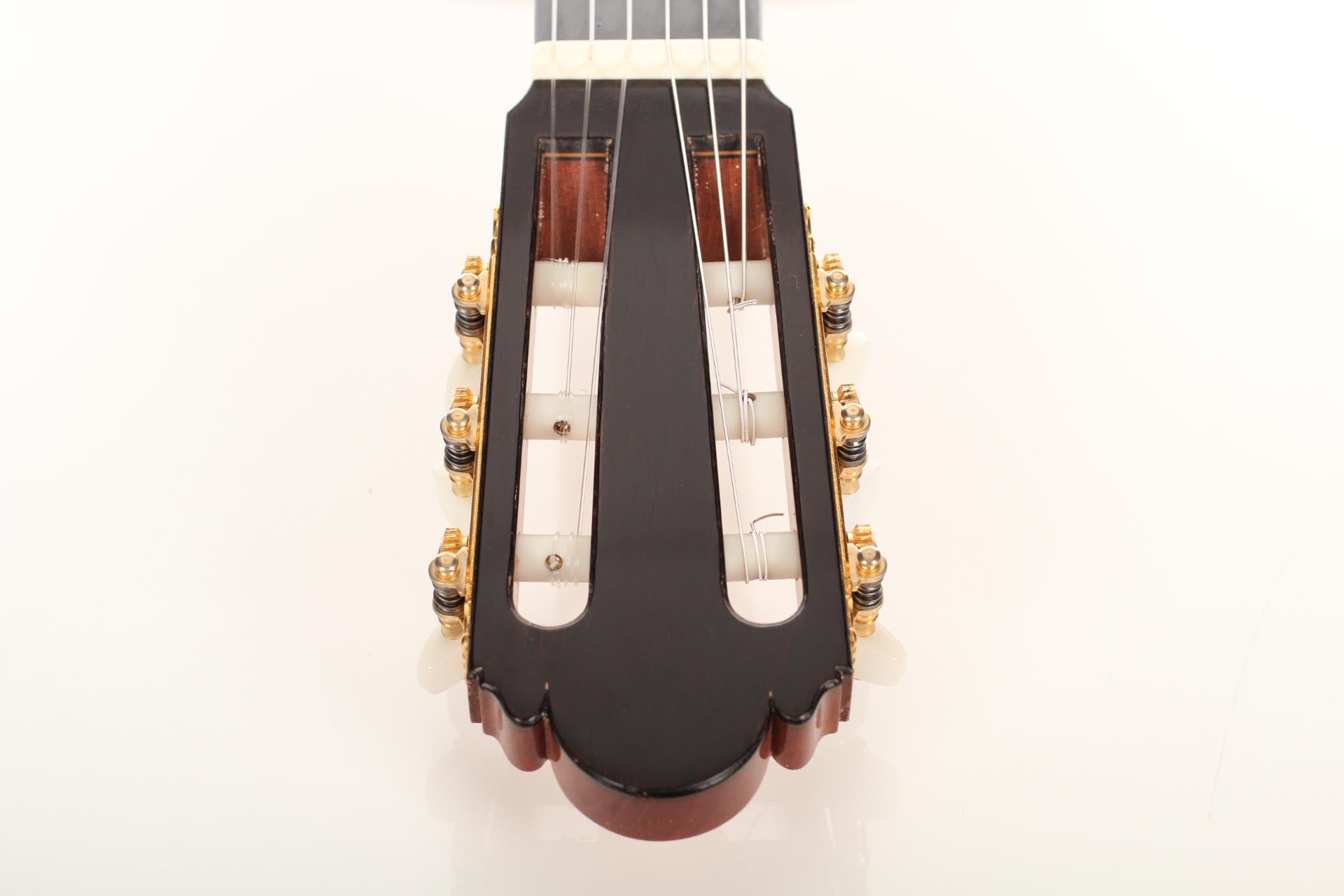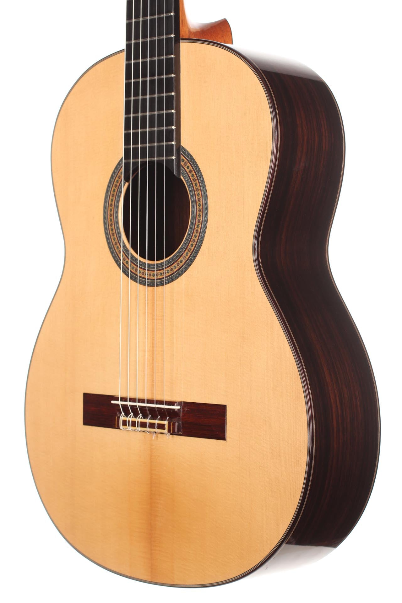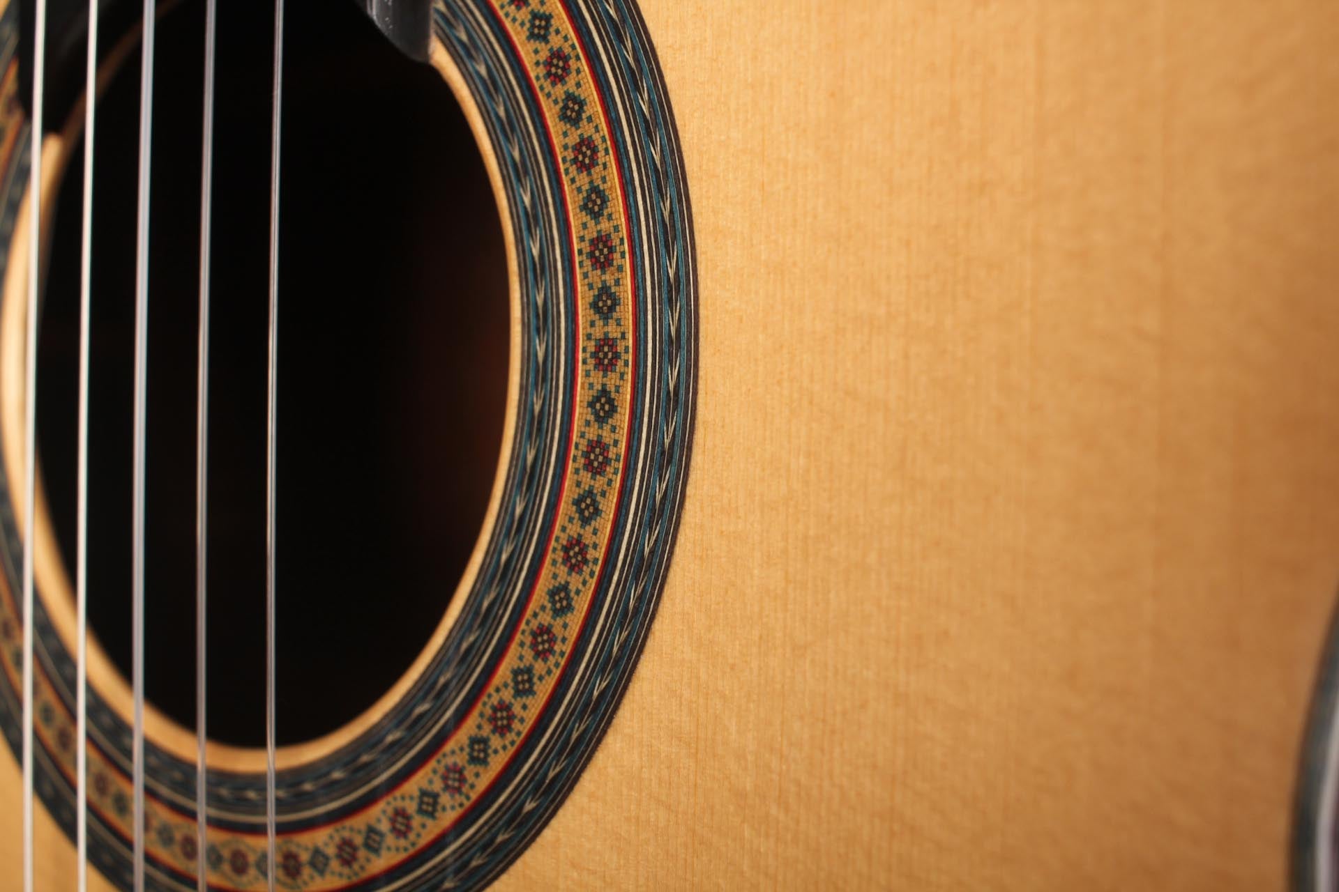 Ignacio Fleta lived from 1897 till 1977 and is one of the most famous luthiers worldwide. Not only did he build guitars, but also violins, violas, violoncellos, vihuelas, and violas da gamba. After his death, his two sons Gabriel and Francisco Fleta and his grandson Gabriel Fleta Jr. continued his work. Today Gabriel Fleta runs the workshop in Calle Farell 15. Today the waiting time for a new guitar is approximately 20 years. Fletas of the newer generation are very rare since only few customers sell their instruments after having waited for over 20 years. This guitar is an absolutely rare opportunity to buy one of these newer Fletas. The beautiful looking spruce top has only very minor playing or handling marks. A highlight is the rosette that is made of blueish shavings in combination with the traditional Fleta flower design - a special combination that, as far as we know, was solely used for this guitar. The innermost and outermost part of the guitar’s rosette consists of rings with herringbone pattern design. The bridge is also decorated with mosaic inlays, which are framed by mother of pearl inlays. The back and sides are made of very old Indian Rosewood. The basses are quite focused and clear while the trebles have a lot of sustain and sing with clarity. The tuners are made by Fustero. This guitar is a true rarity for guitar collectors and players. A Hiscox Pro II case is included.