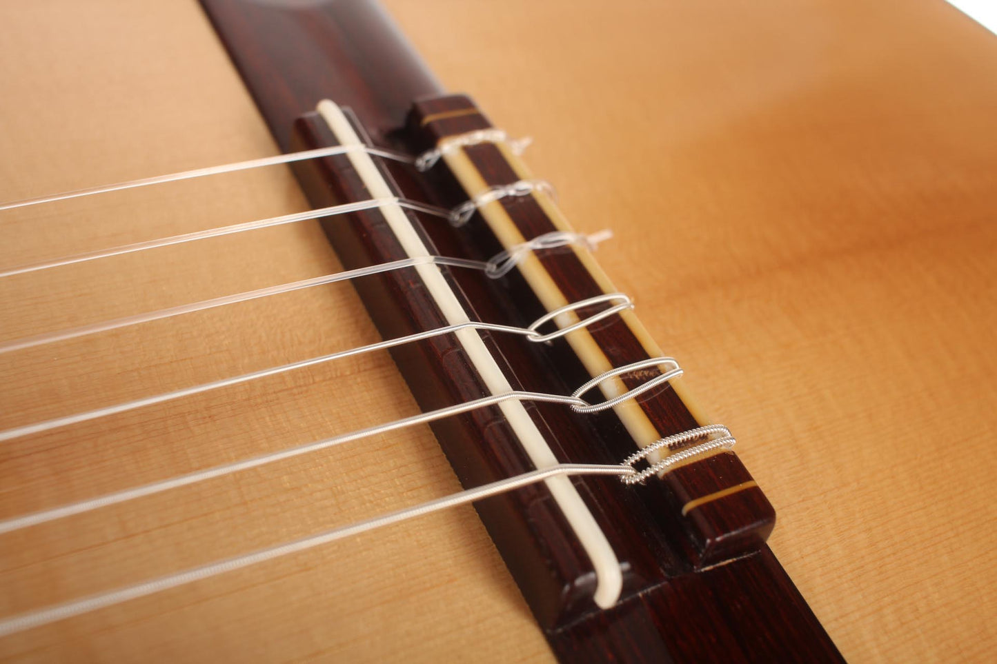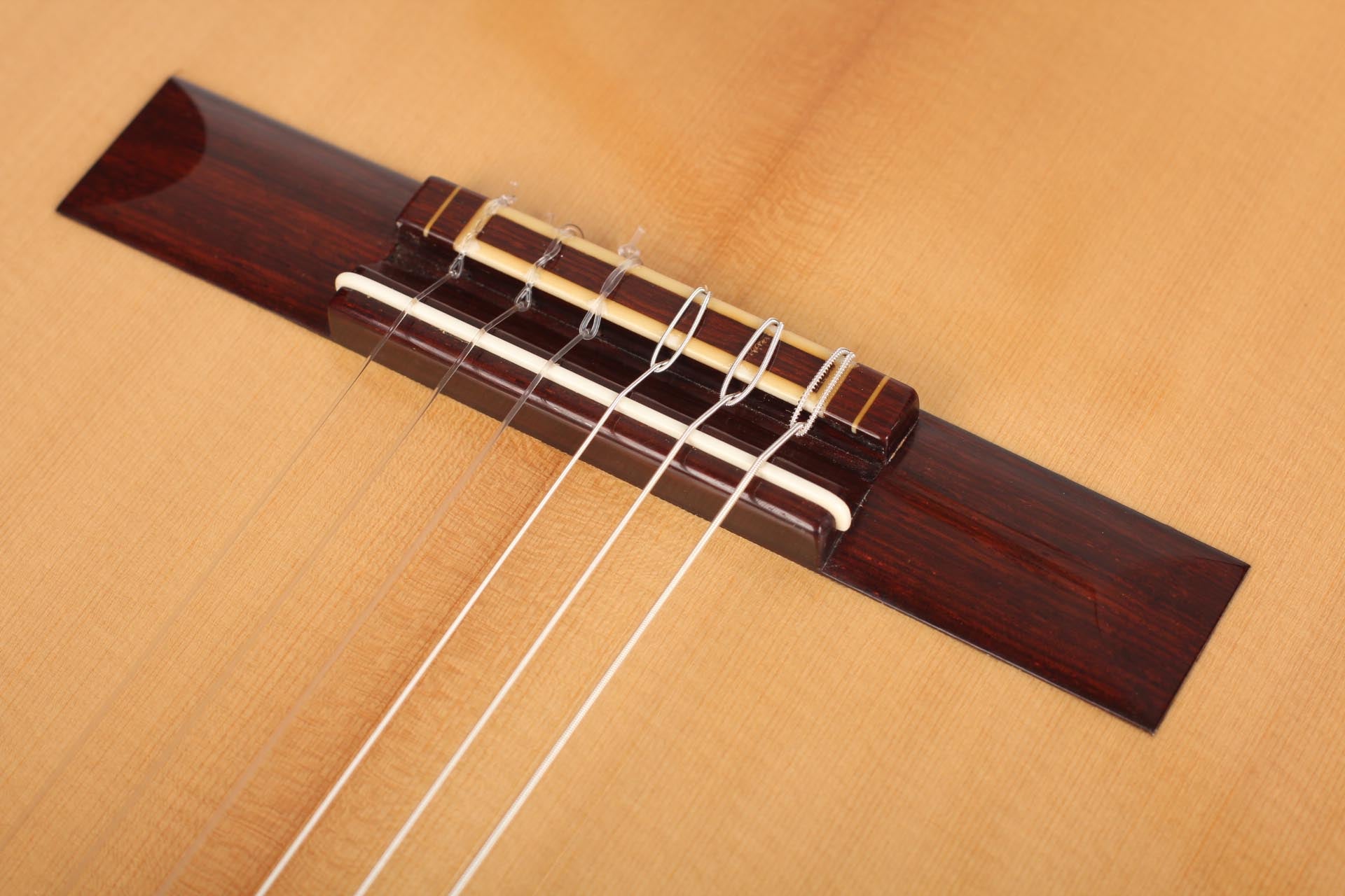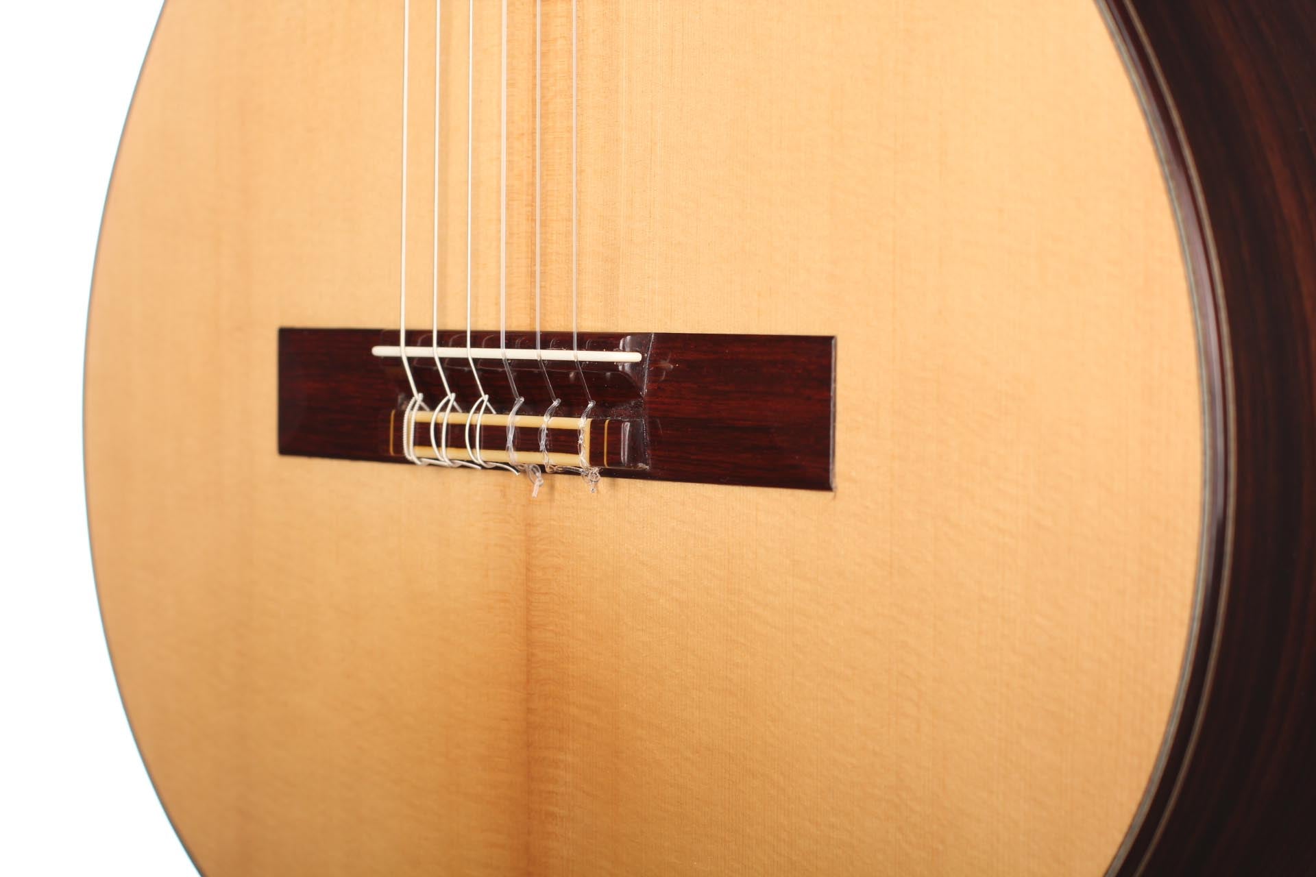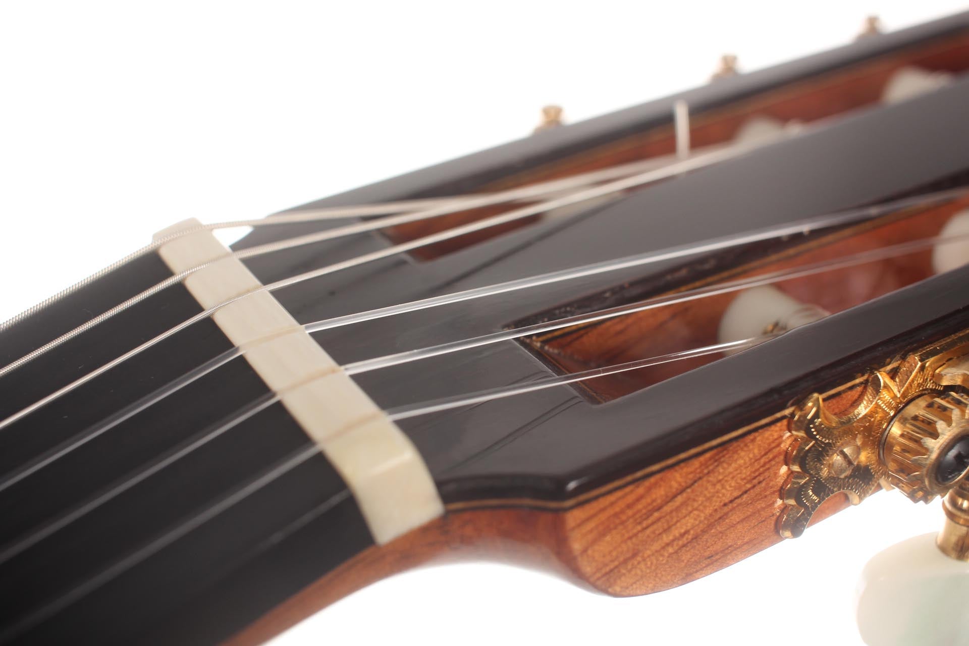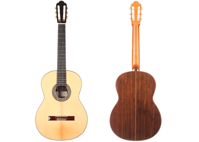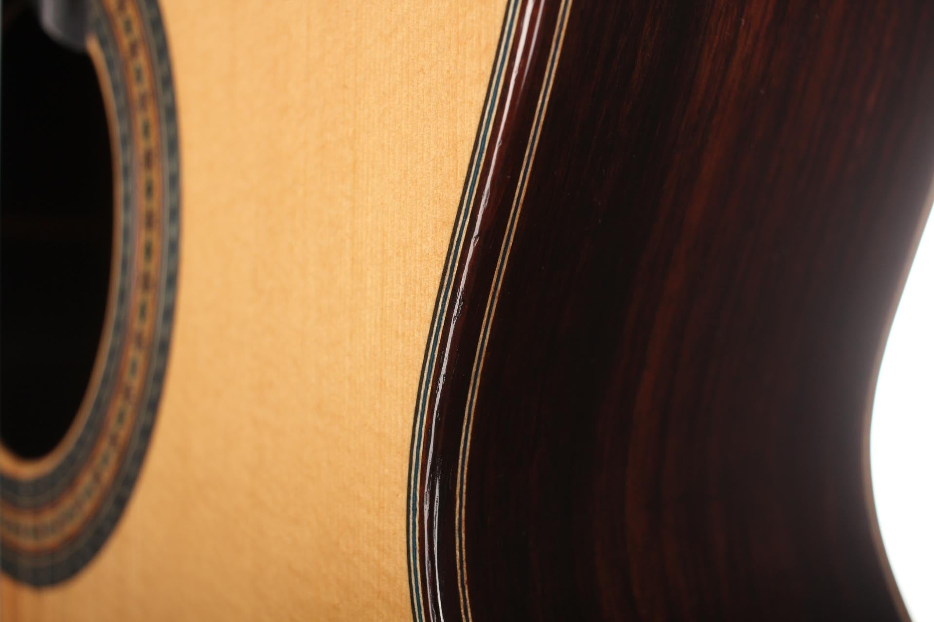 Ignacio Fleta lived from 1897 till 1977 and is one of the most famous luthiers worldwide. Not only did he build guitars, but also violins, violas, violoncellos, vihuelas, and violas da gamba. After his death, his two sons Gabriel and Francisco Fleta and his grandson Gabriel Fleta Jr. continued his work. Today Gabriel Fleta runs the workshop in Calle Farell 15. Today the waiting time for a new guitar is approximately 20 years. Fletas of the newer generation are very rare since only few customers sell their instruments after having waited for over 20 years. This guitar is an absolutely rare opportunity to buy one of these newer Fletas. The beautiful looking spruce top has only very minor playing or handling marks. A highlight is the rosette that is made of blueish shavings in combination with the traditional Fleta flower design - a special combination that, as far as we know, was solely used for this guitar. The innermost and outermost part of the guitar’s rosette consists of rings with herringbone pattern design. The bridge is also decorated with mosaic inlays, which are framed by mother of pearl inlays. The back and sides are made of very old Indian Rosewood. The basses are quite focused and clear while the trebles have a lot of sustain and sing with clarity. The tuners are made by Fustero. This guitar is a true rarity for guitar collectors and players. A Hiscox Pro II case is included.