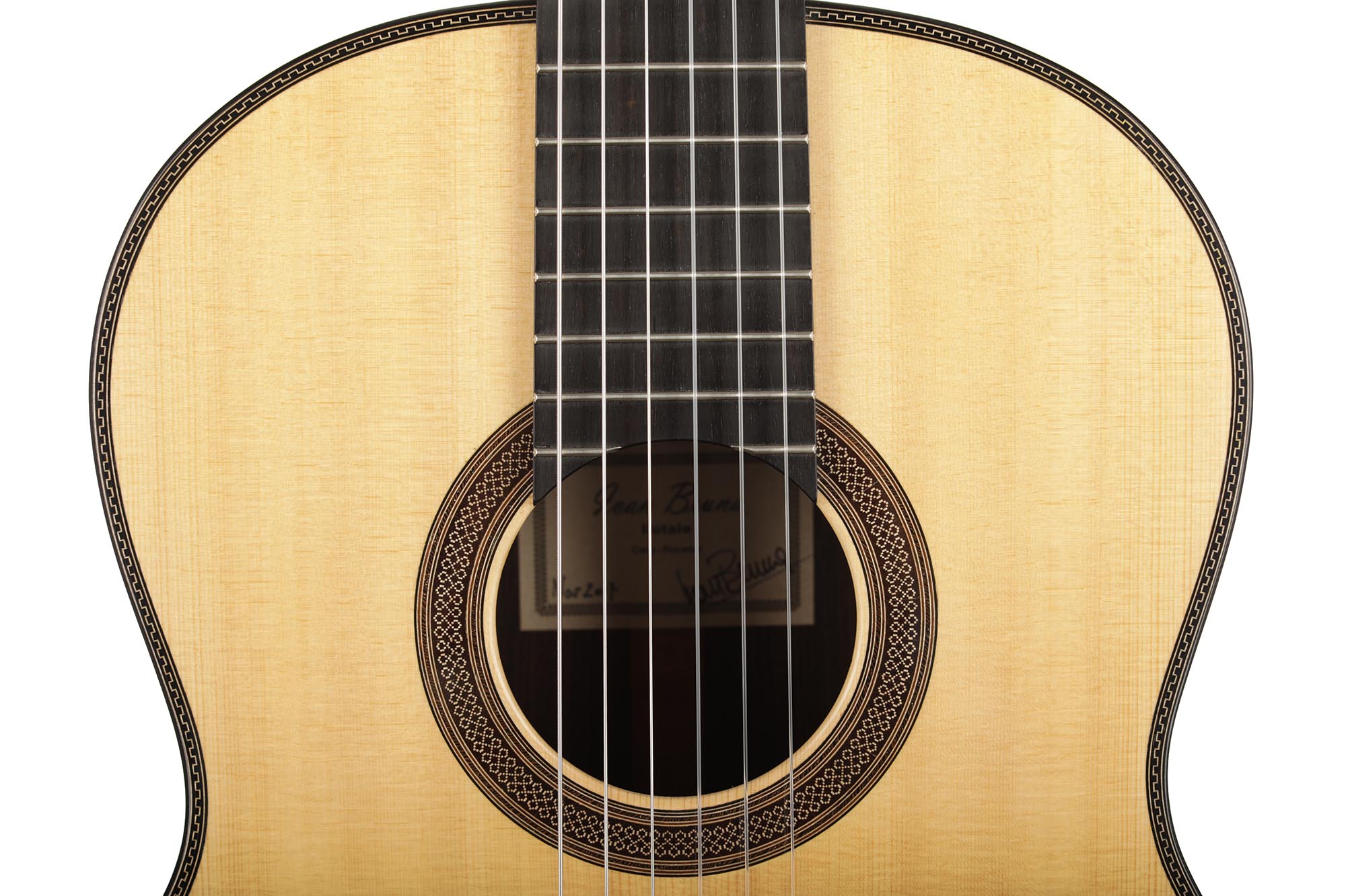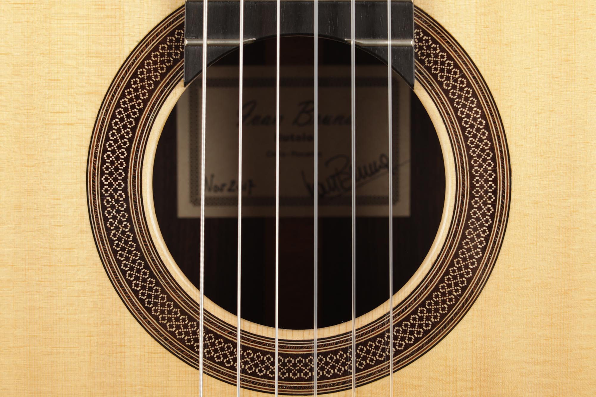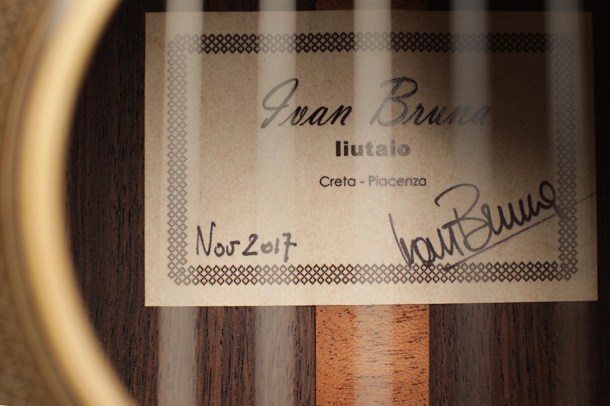 This guitar, bearing the hand-written date November 2017 on the label, is a perfect example of the successful implementation of Ivan Bruna's philosophy. The top has taken on a beautiful honey colour over the last two years. It is evident that the guitar was played by its previous owner, as it has a very open, balanced and mature sound. Moreover, this traditionally built guitar is also in perfect condition thanks to the great care of the former holder.