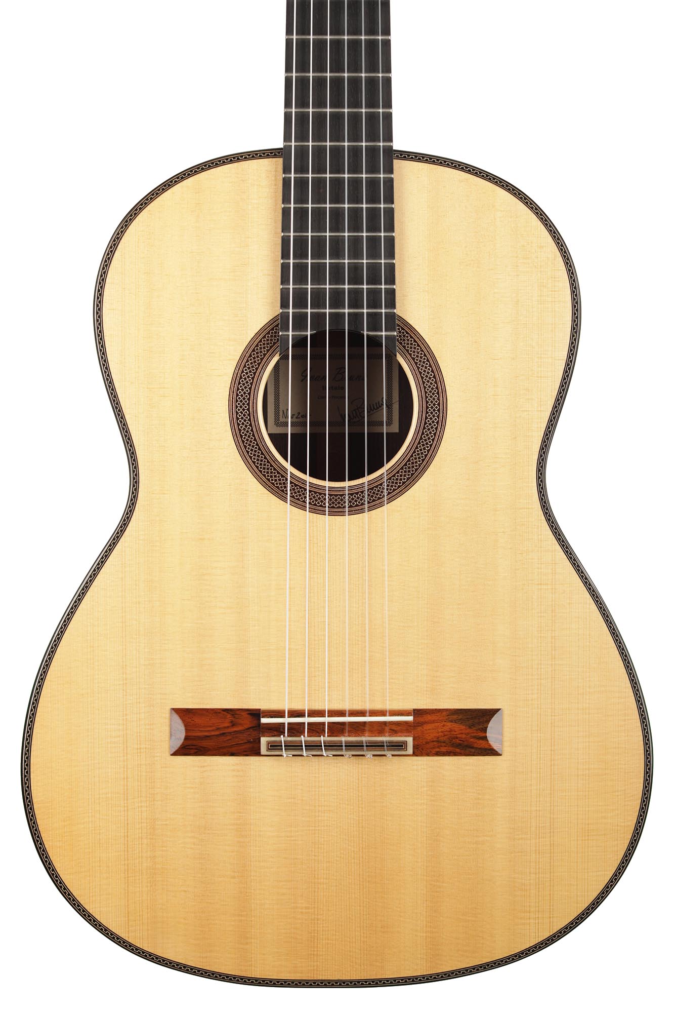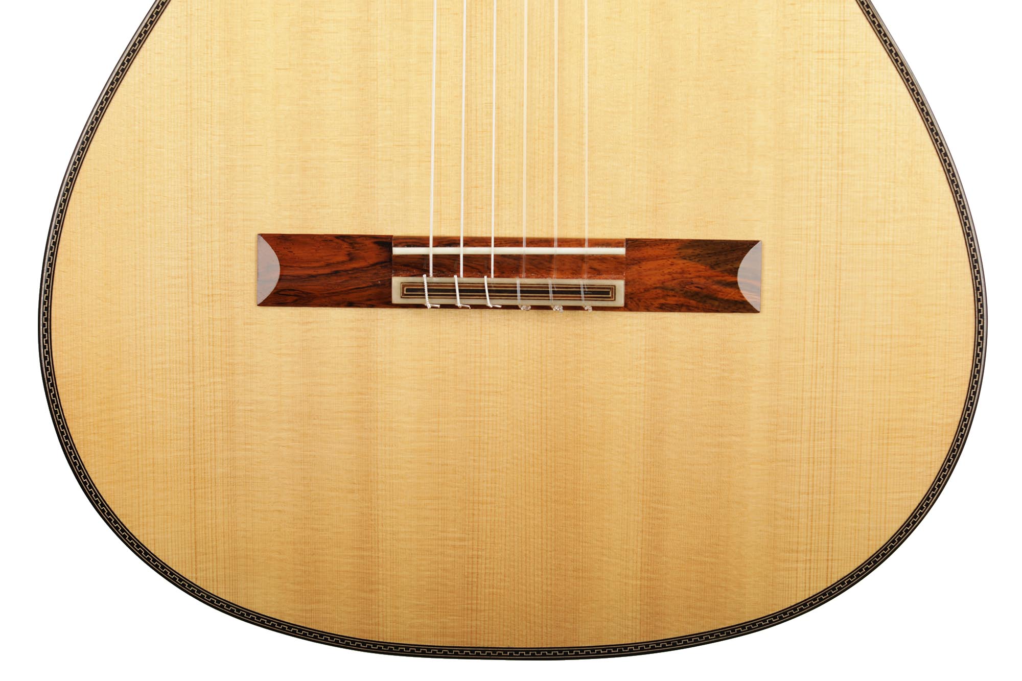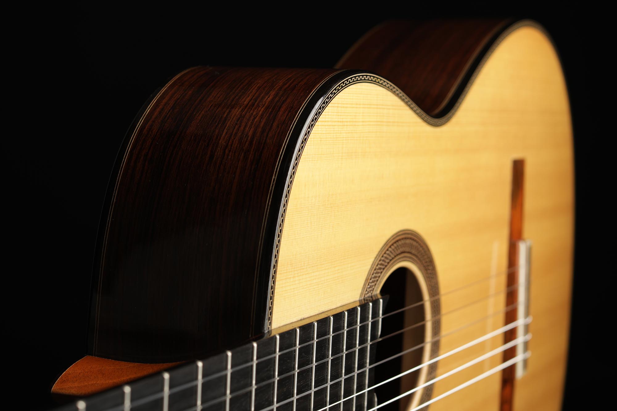 This guitar, bearing the hand-written date November 2017 on the label, is a perfect example of the successful implementation of Ivan Bruna's philosophy. The top has taken on a beautiful honey colour over the last two years. It is evident that the guitar was played by its previous owner, as it has a very open, balanced and mature sound. Moreover, this traditionally built guitar is also in perfect condition thanks to the great care of the former holder.