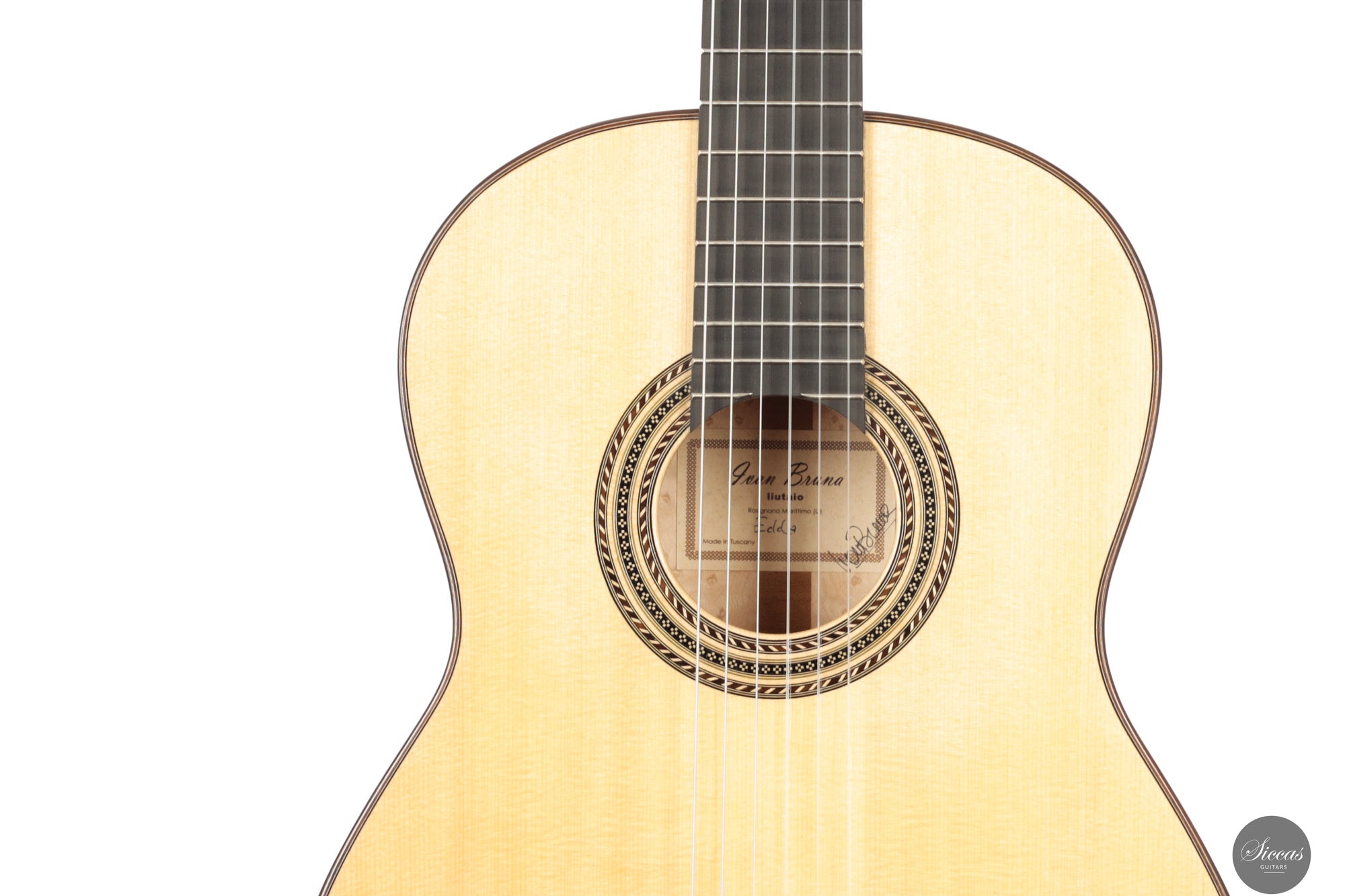 Ivan Bruna is an Italian guitar maker based near Livorno where he builds concert guitars entirely by hand following the classical tradition. He studied at the Scuola di Liuteria di Milano and deepened his craft through an apprenticeship with Enrico Bottelli. His work is shaped by analytical attention and by a philosophy that places musical clarity and structural coherence above novelty. Bruna refines traditional methods with meticulous precision, seeking a sound that combines richness, stability and a bold singing core. His instruments are respected for their elegant workmanship and for a voice that maintains clarity across a wide dynamic range.