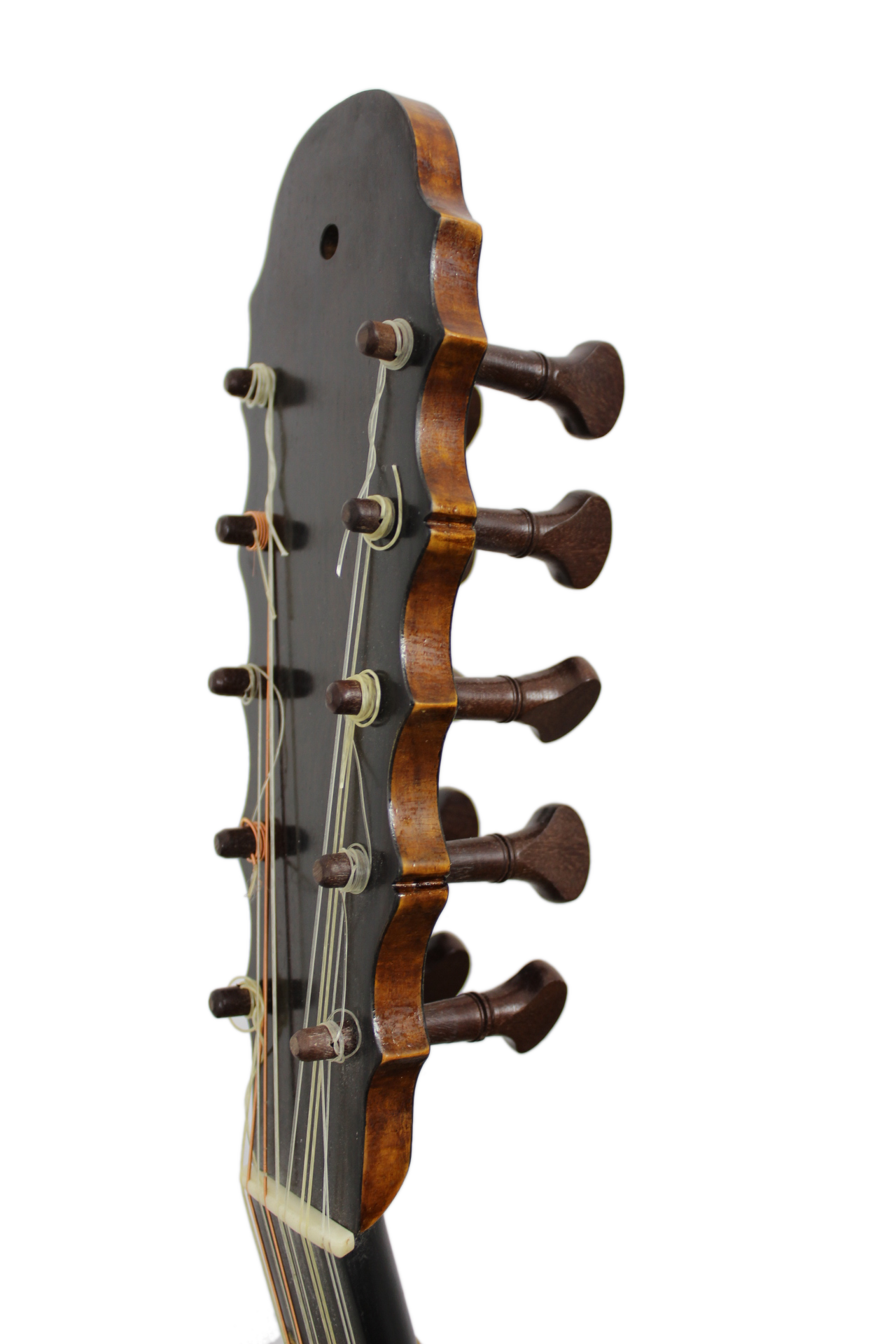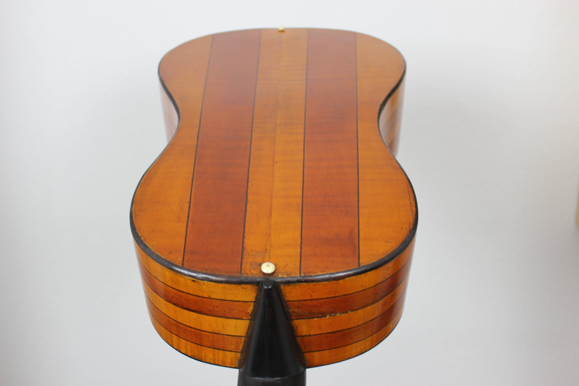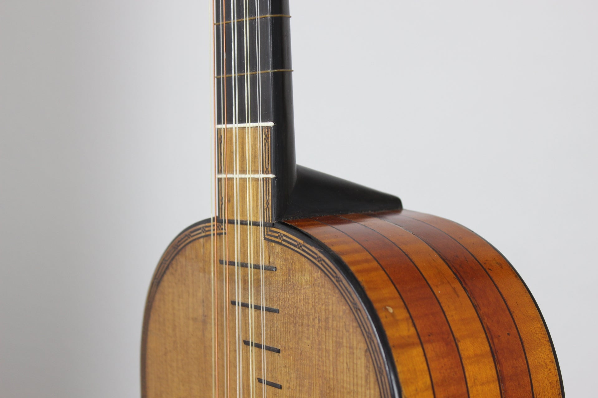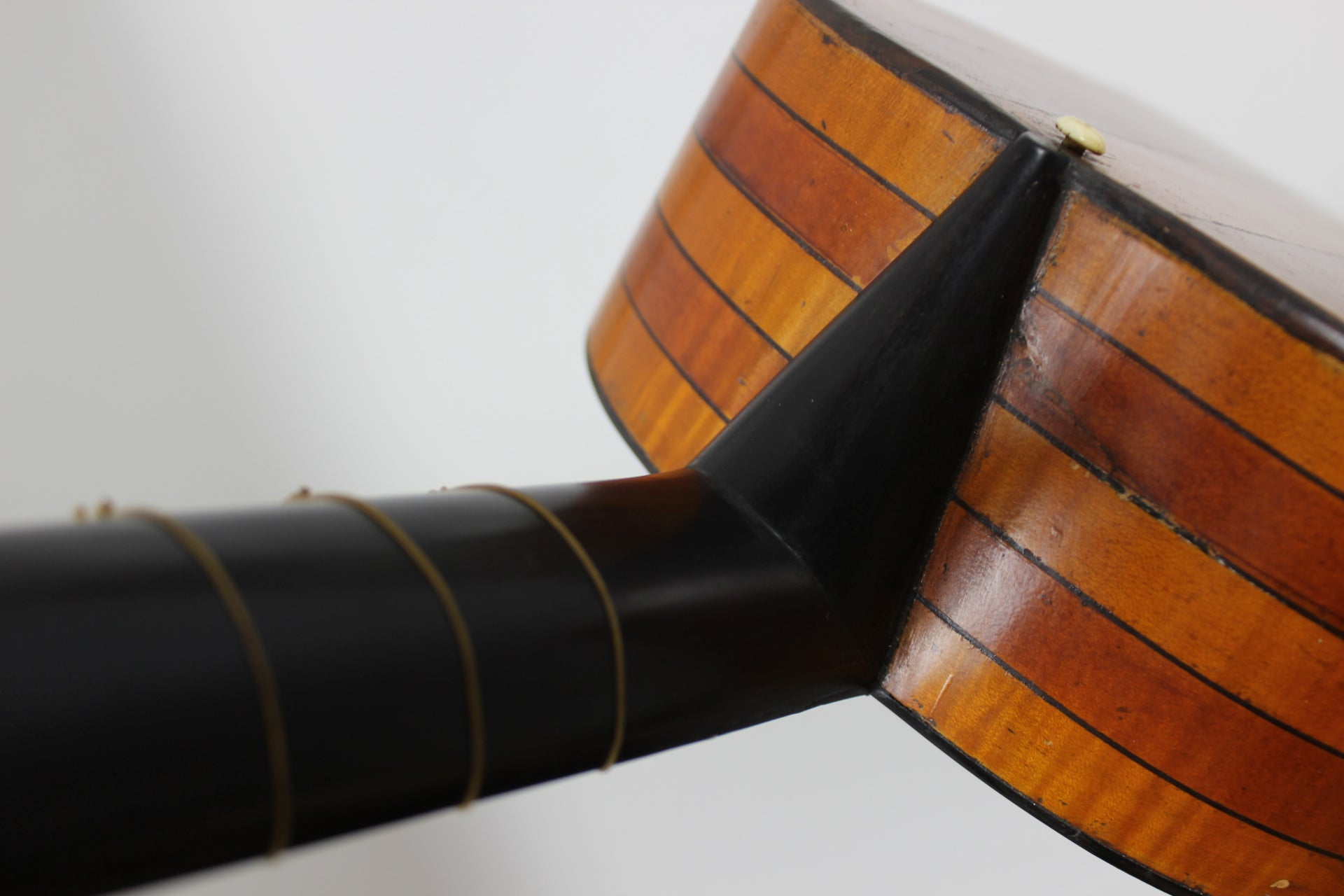 Jean Laurent Mast was born in 1748 and died 1791 Mirecourt, France. Although all his work was done in Mirecourt, the output was stamped 'Paris'. The guitar is branded internally with 'J.L. Mast à Paris'. It's in very good condition and has only some minor repairs near the fretboard were a piece was replaced. The top is made of spruce, back and sides are made of maple. A lovely guitar!
