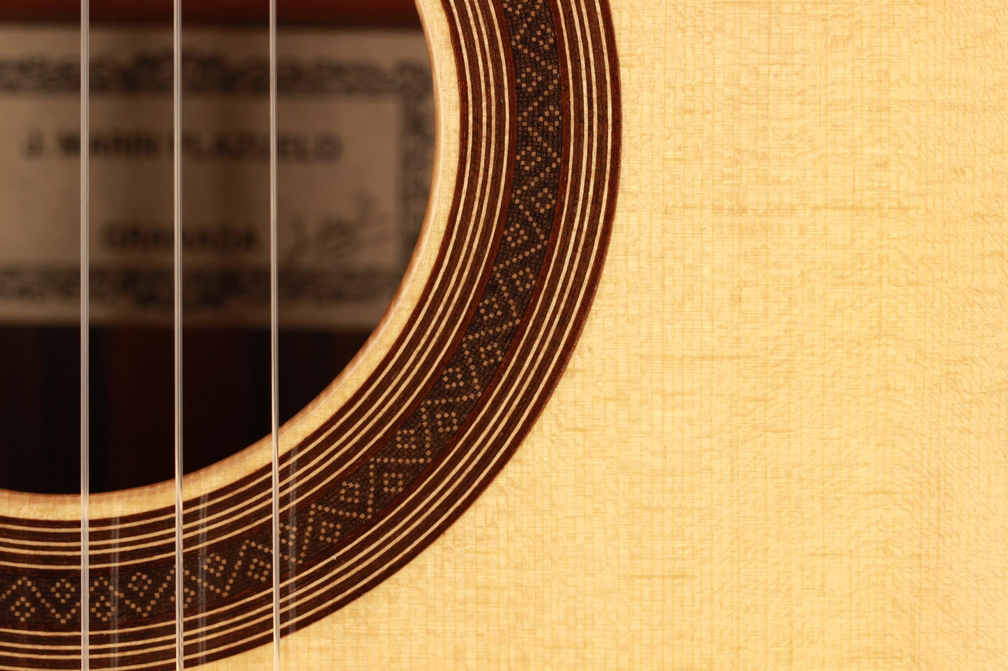 José Marin Plazuelo was born in Granada in 1960. He is the nephew and student of Antonio Marin Montero. He began an apprenticeship with his uncle in 1974 and shortly after started to build guitars under his own name. His guitars are always very fine instruments, entirely French polished, with subtle black/white geometric mosaics. They are often played in great concert-halls all around the world by professional guitarists and have a typical warm Spanish sound