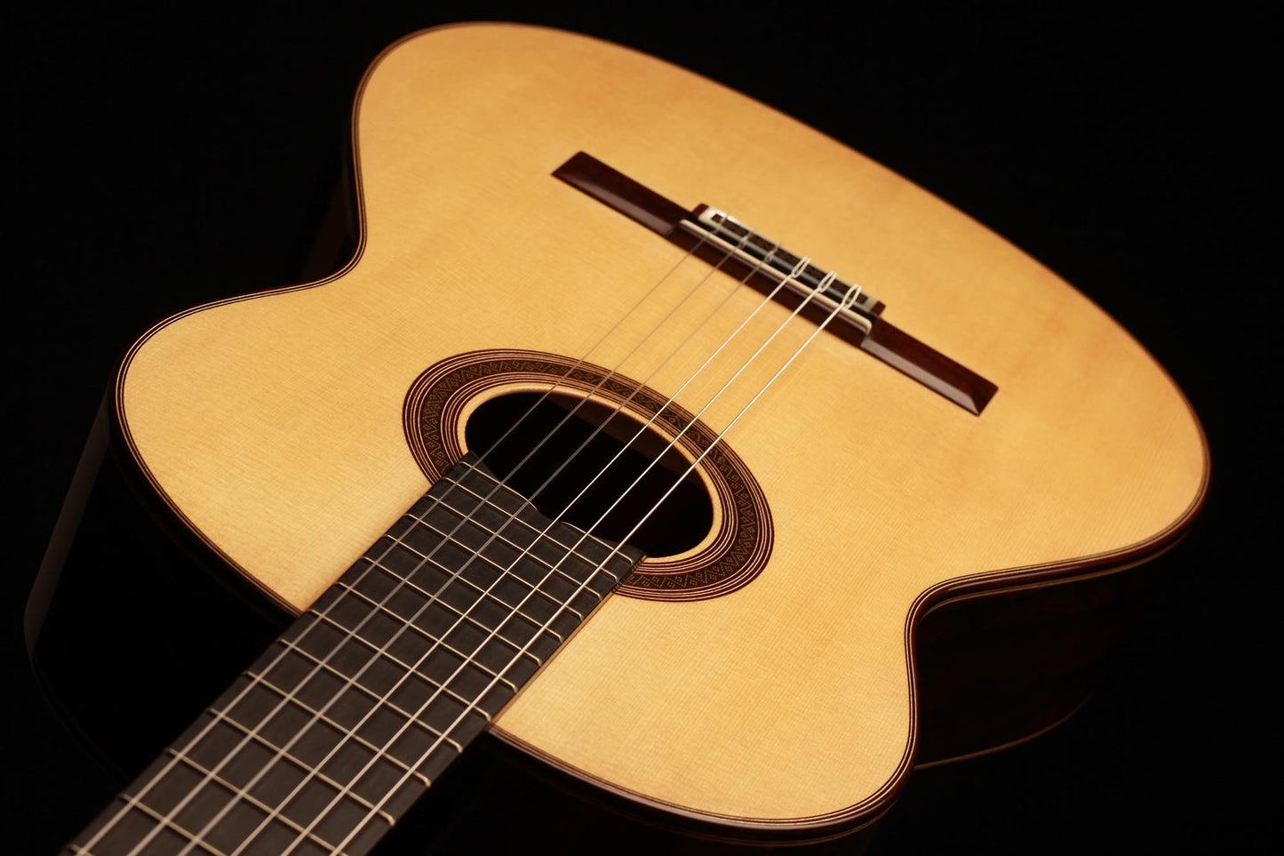 The classical guitar, with its soft nylon strings and characteristic timbre, has become a symbol of chamber music, Spanish tradition, and concert repertoire. Its modern form was shaped by Antonio de Torres in the 19th century, setting the standard for the body, fan bracing, and the 65-centimeter scale length that are still used today. Instruments in this category open up a rich palette from the refined Romantic miniatures of Tárrega to the majestic concertos of Rodrigo. Here you will find guitars that preserve historical continuity and at the same time inspire new interpretations.Look all products of the collection -