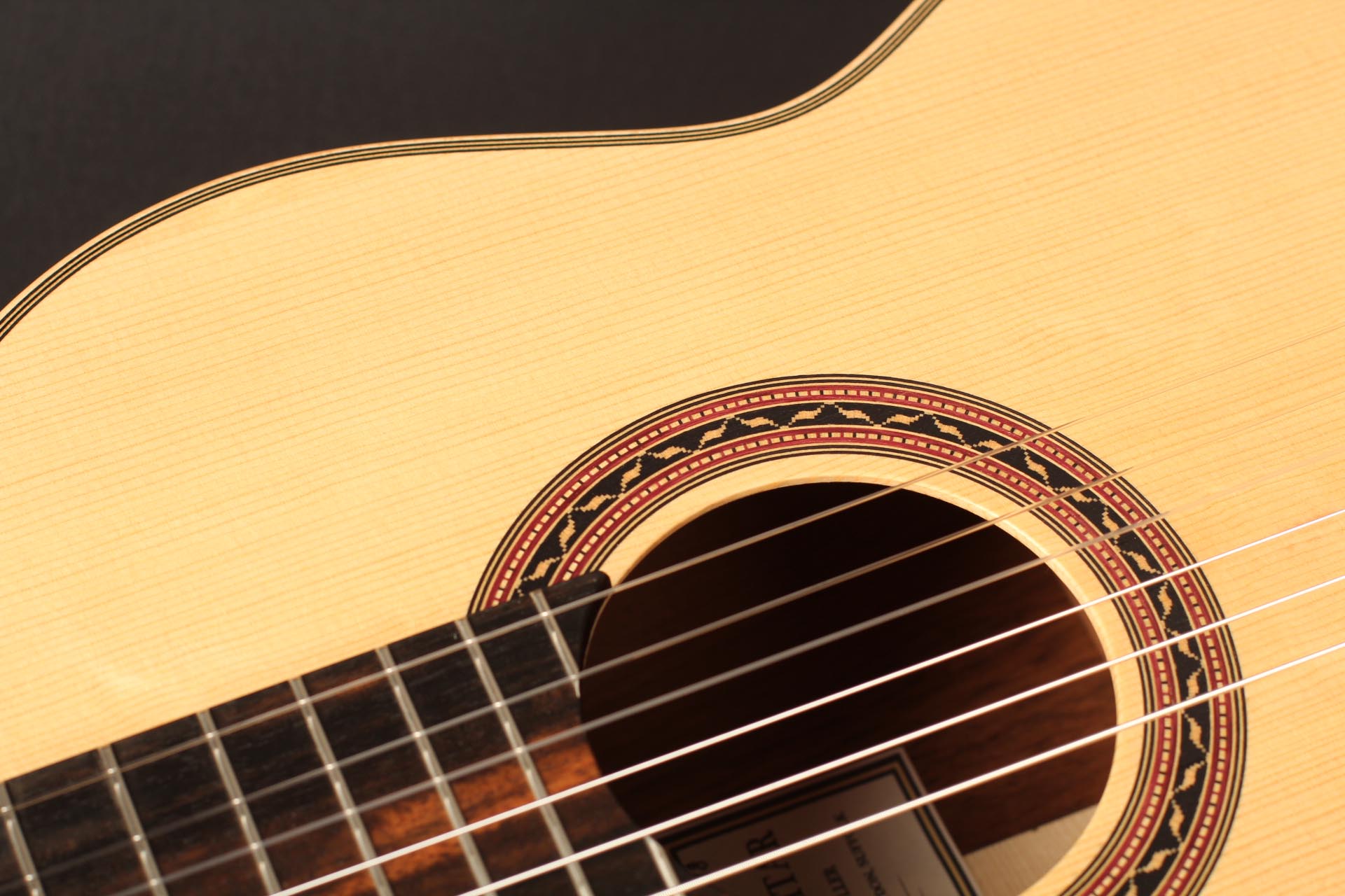 Being the son of a toy maker, Jake Fuller learnt how to work with wood in his father’s workshop. When he started to play the guitar at the age of 16, he soon became fascinated by the idea to combine his two interests in life: guitars and woodworking. After graduating from London Guildhall University where he studied Musical Instrument Technology he set up his own workshop. He especially concentrates on making lightly built Spanish/Torres style guitars.