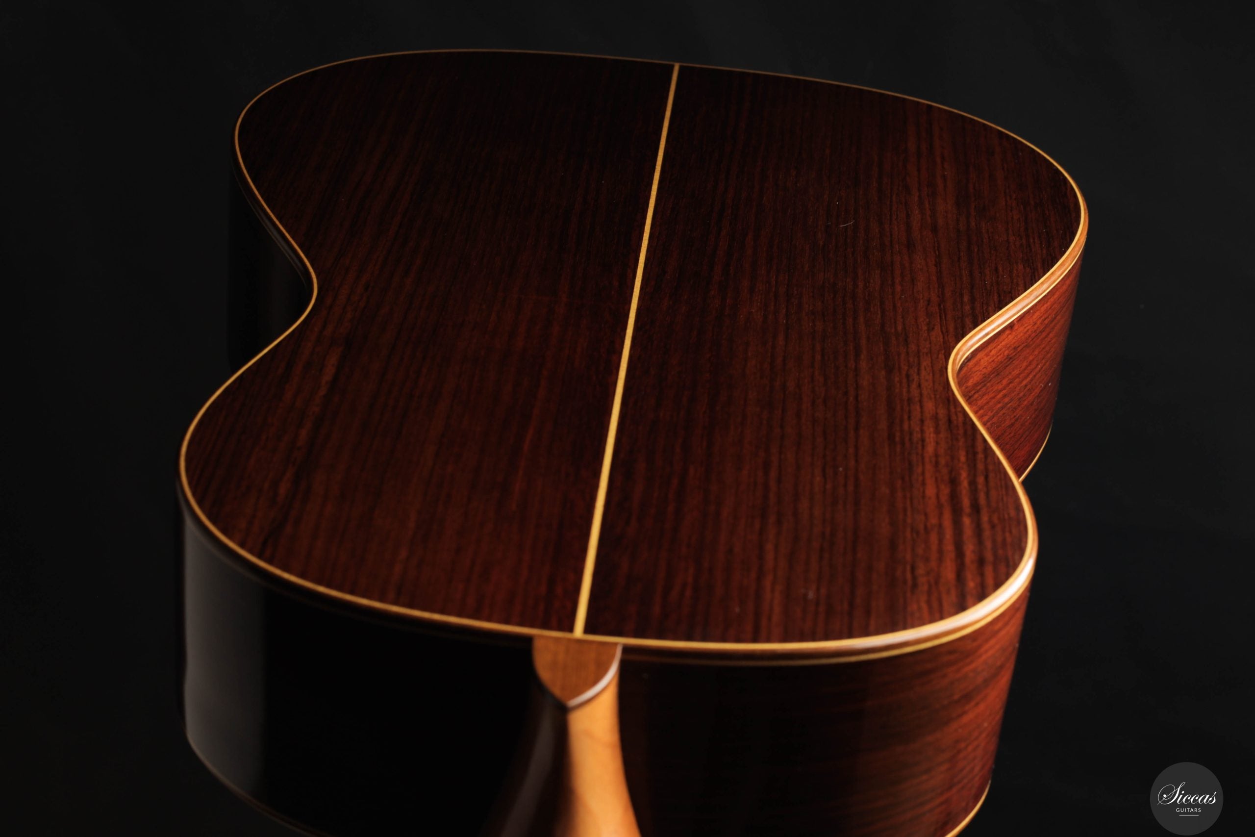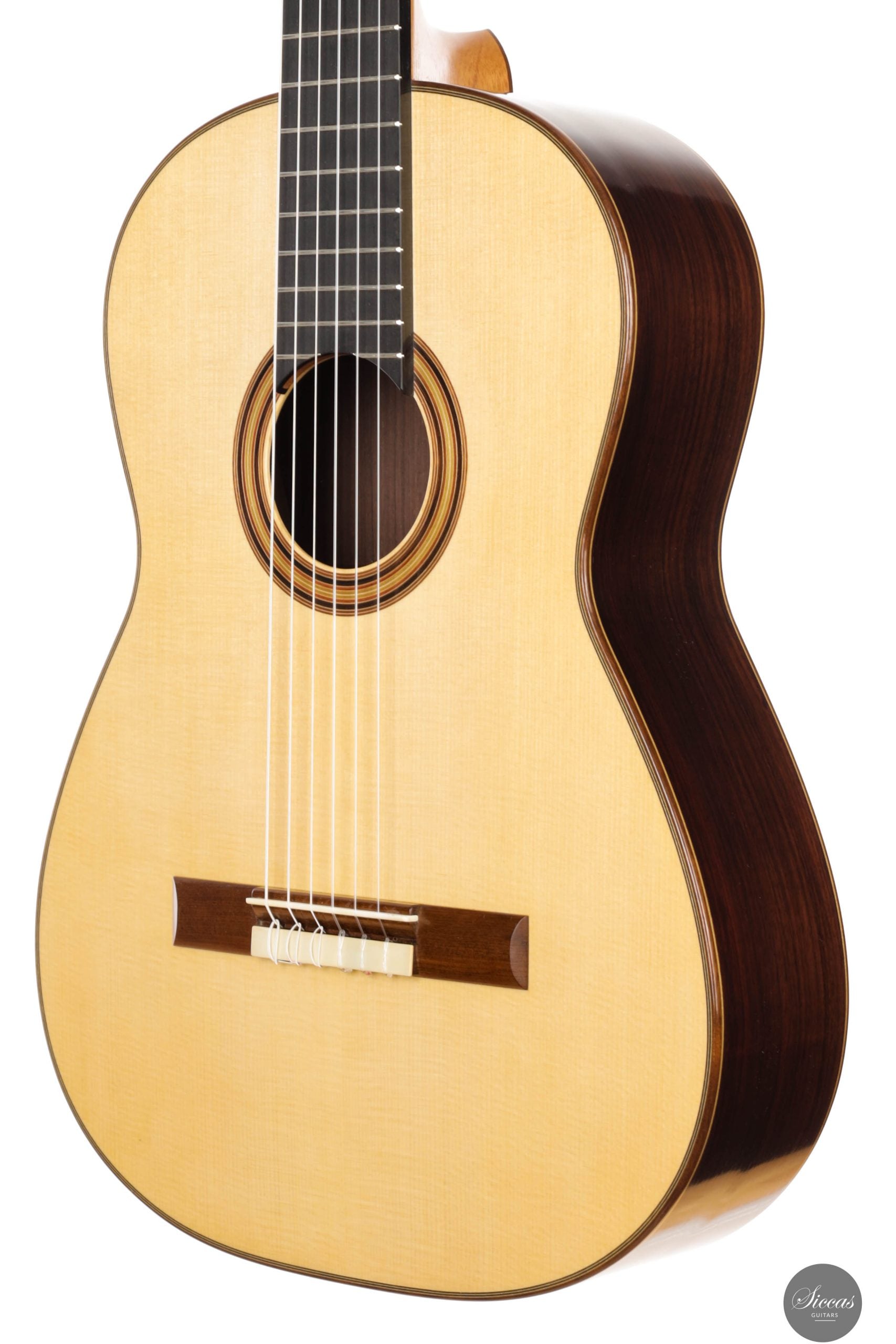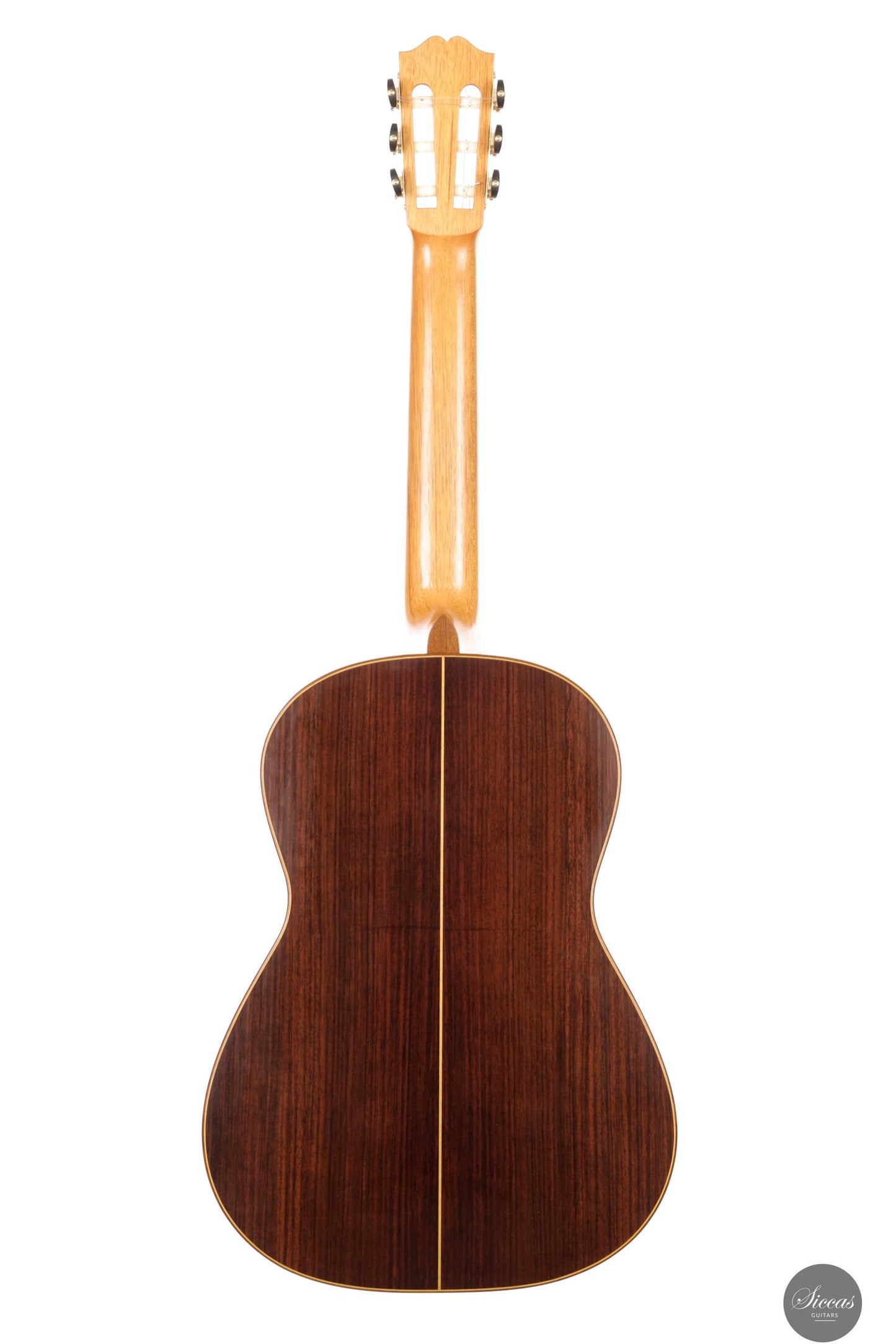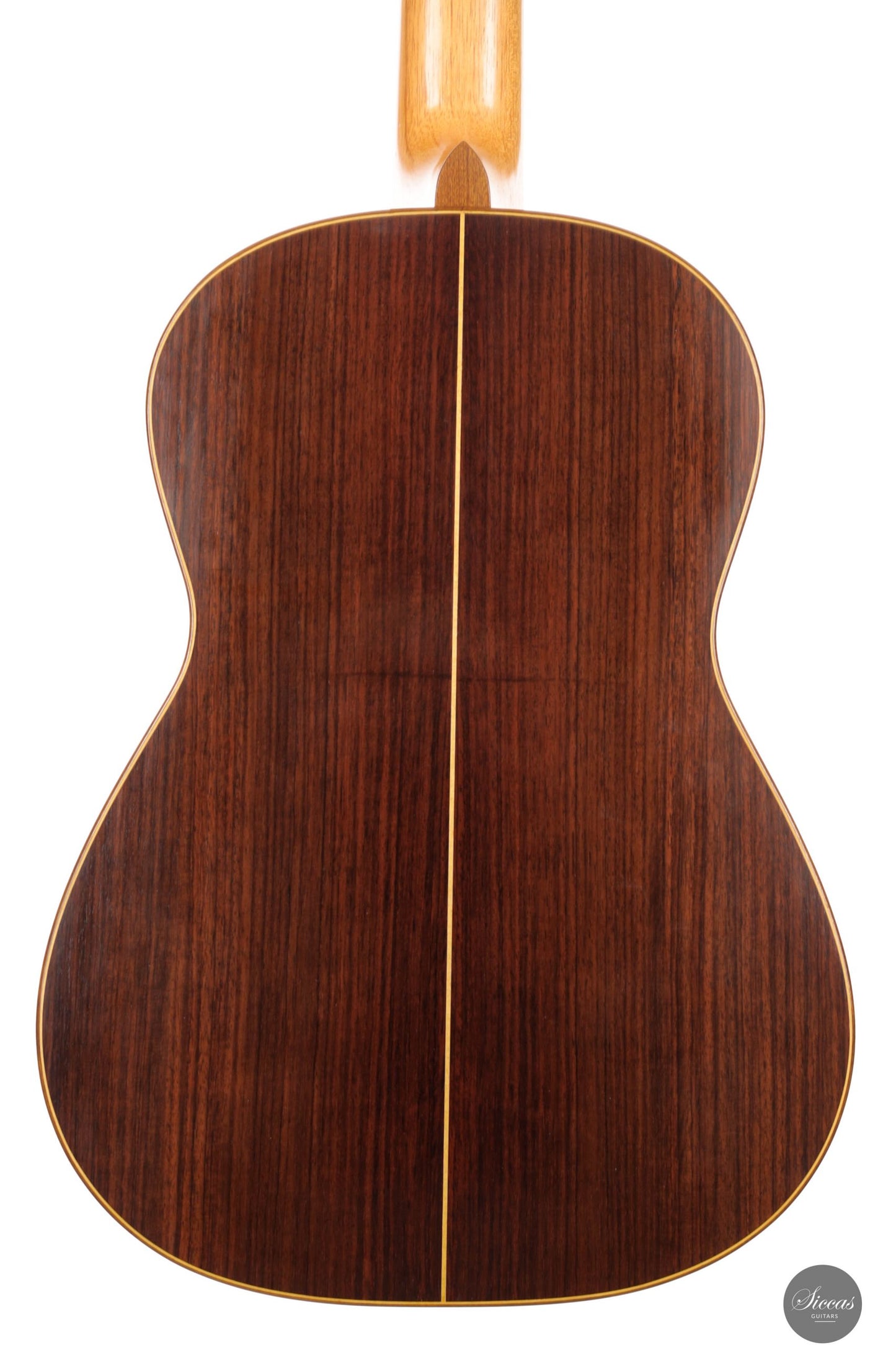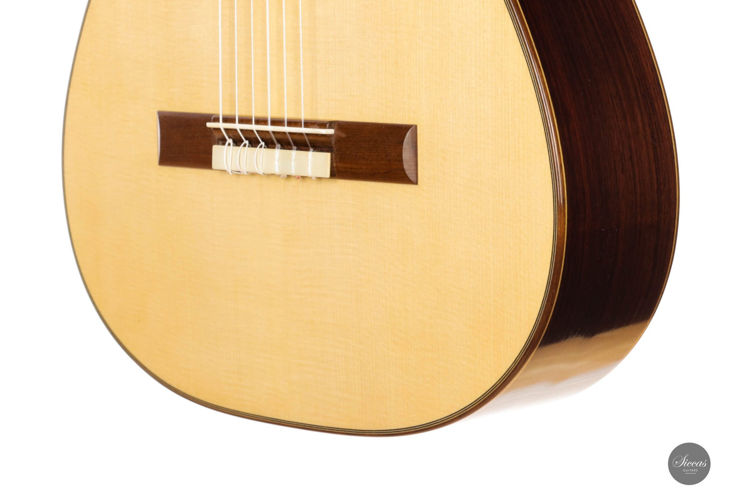 Acoustically, this guitar offers a very focused and clear tone, giving the player excellent articulation and precision. Thanks to its lightweight construction, weighing only about 1,370 grams including the tuning machines, it also provides a remarkable sense of control and responsiveness.