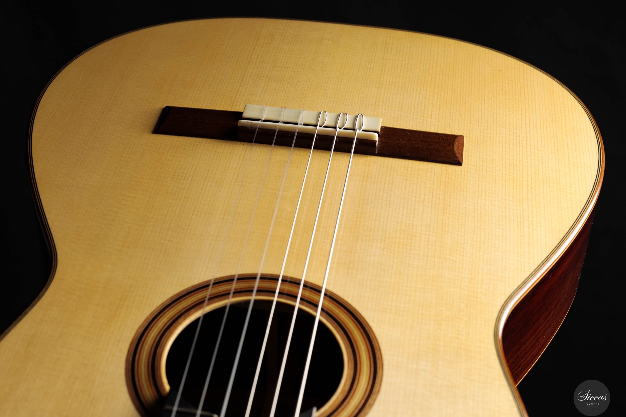 This brand-new instrument by Jake Fuller is a highly unique traditional guitar, distinguished by the presence of a sound post—a concept borrowed from violin construction.