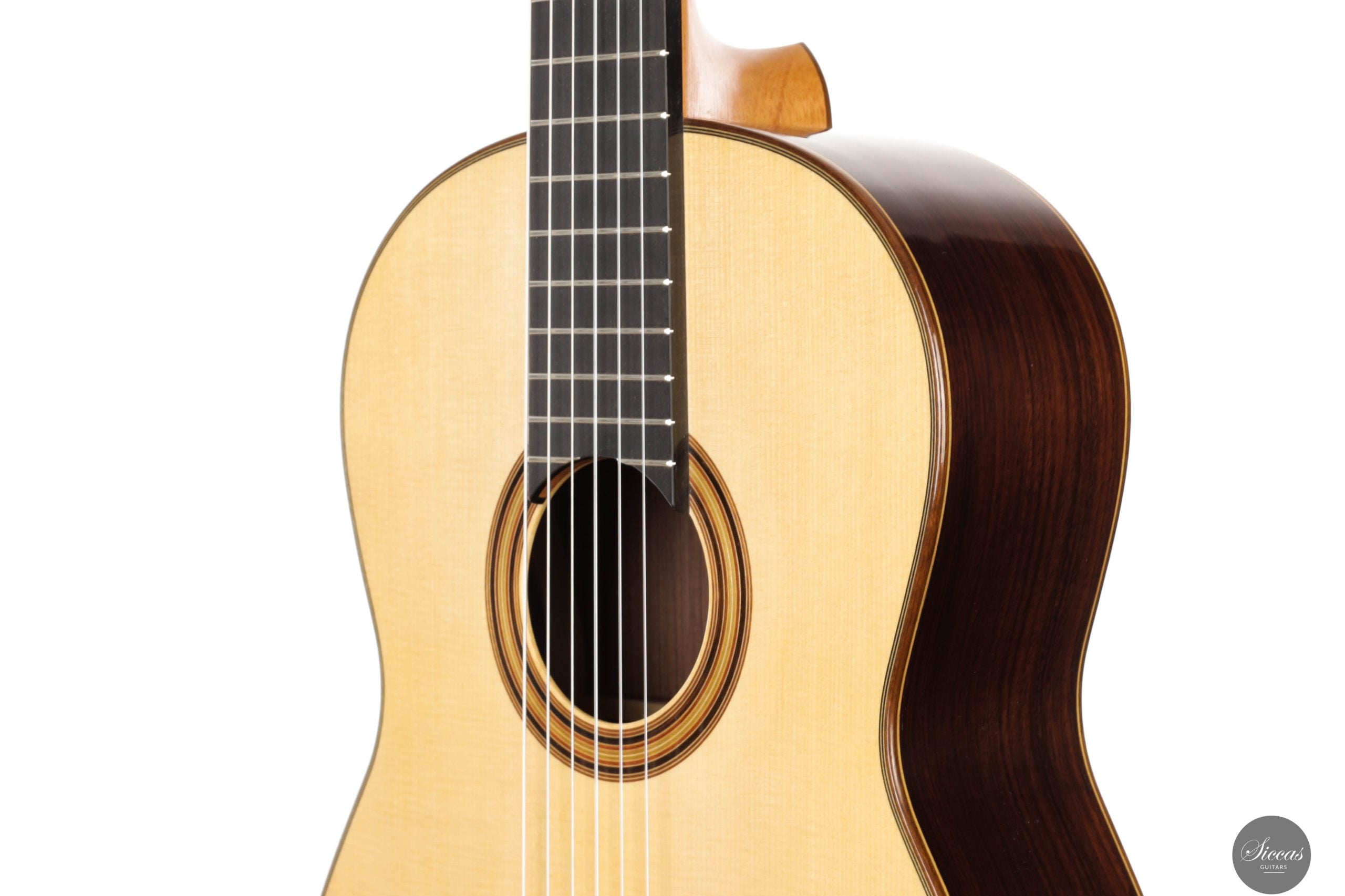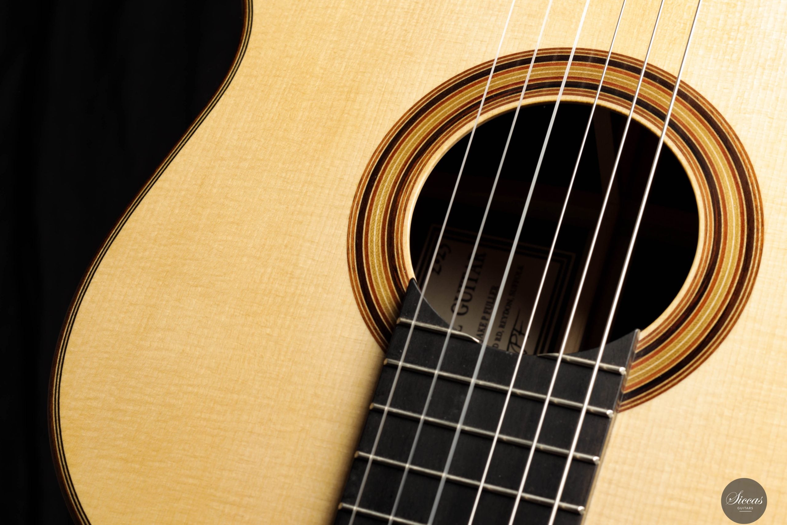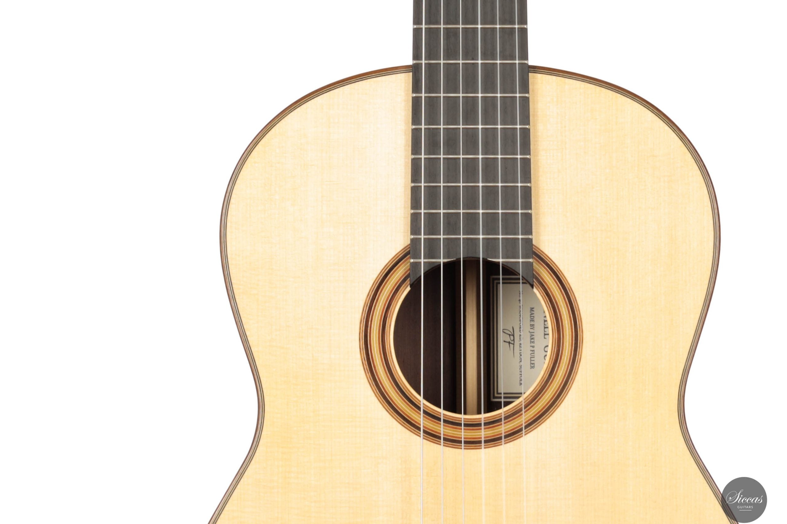 As the son of a toymaker, Jake Fuller learned his craft skills in his father’s workshop. When he started playing classical guitar at the age of 16, he had the idea to combine his two interests, playing the guitar and working with wood. After graduating from London Guildhall University with a degree in musical instrument technology, he opened his own workshop. There he concentrated especially on the production of light Spanish Torres guitars.