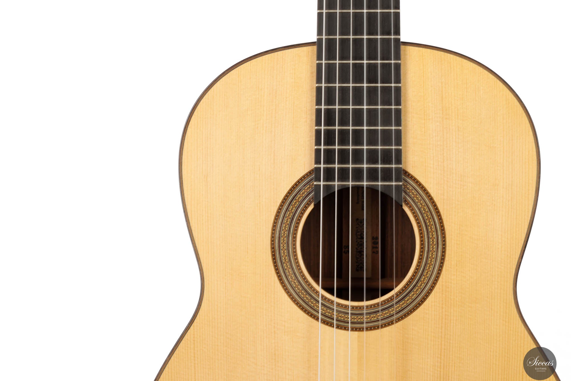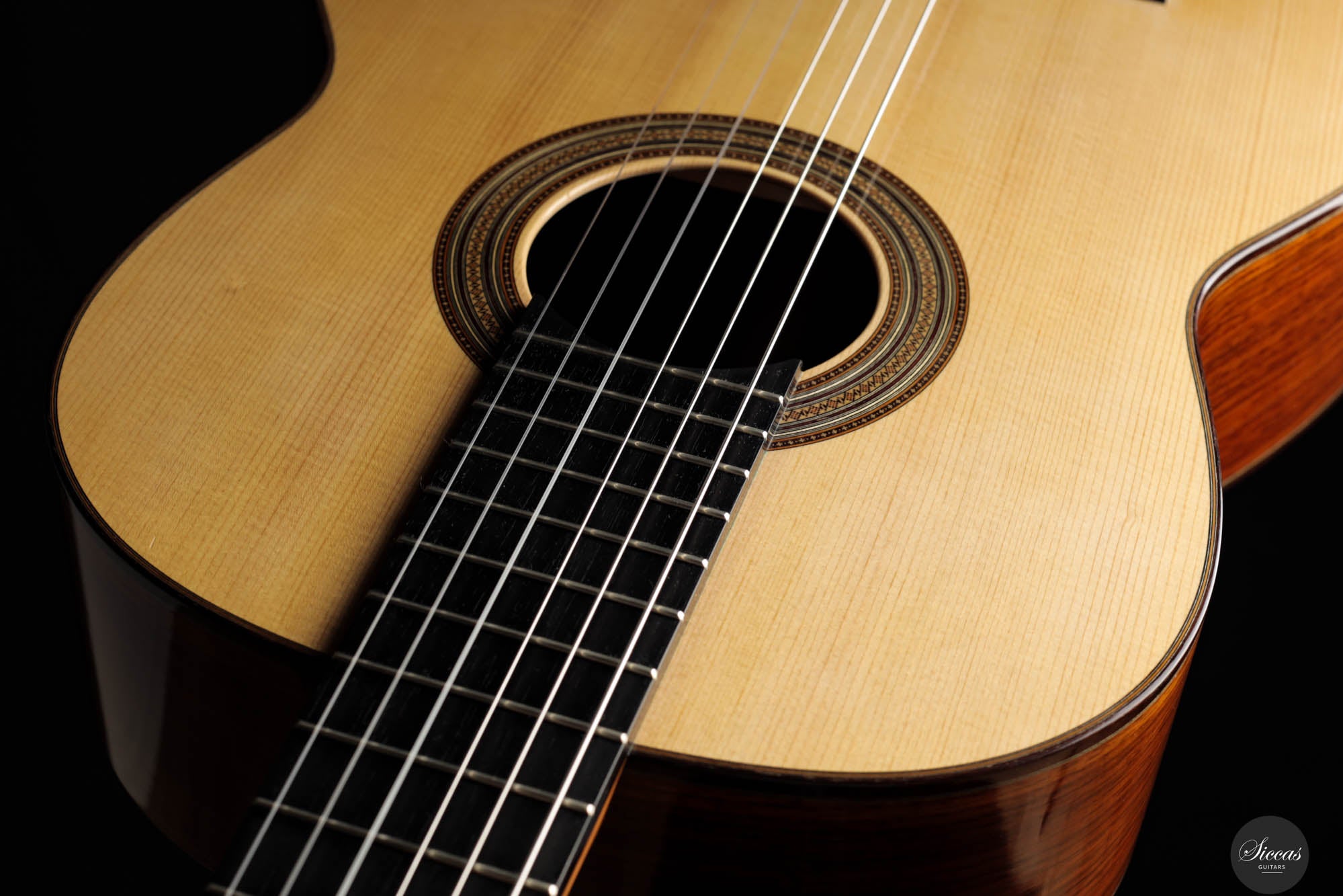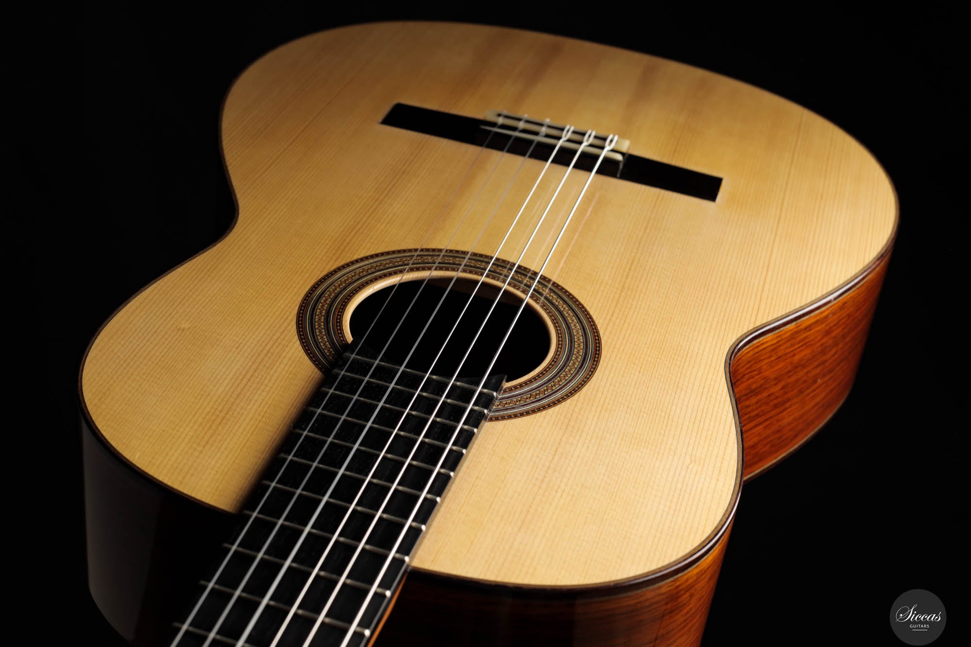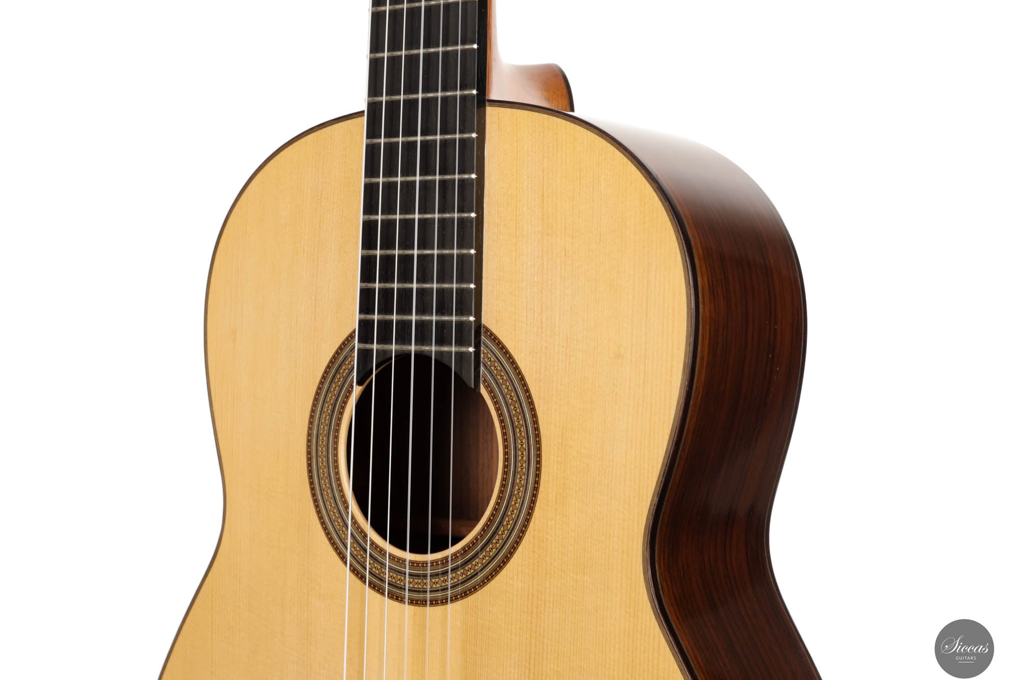 Visually, the guitar is a marvel of craftsmanship, brimming with meticulously executed details that invite admiration. The rosette, with its complex and captivating pattern, is a testament to the luthier's skill and attention to detail, embodying the essence of artistry in guitar construction. Jean-Noël's inspiration for the head shape, drawn from a gothic arch in an ancient building in Strasbourg, infuses the instrument with a timeless elegance that transcends the ages. The hand-engraved Scheller tuners are not only aesthetically pleasing but also exemplify the highest standard of functionality, making every tuning adjustment a pleasure. Despite its status as a pre-loved instrument, it maintains great condition, bearing only minor signs of use—a testament to its enduring beauty and resilience.