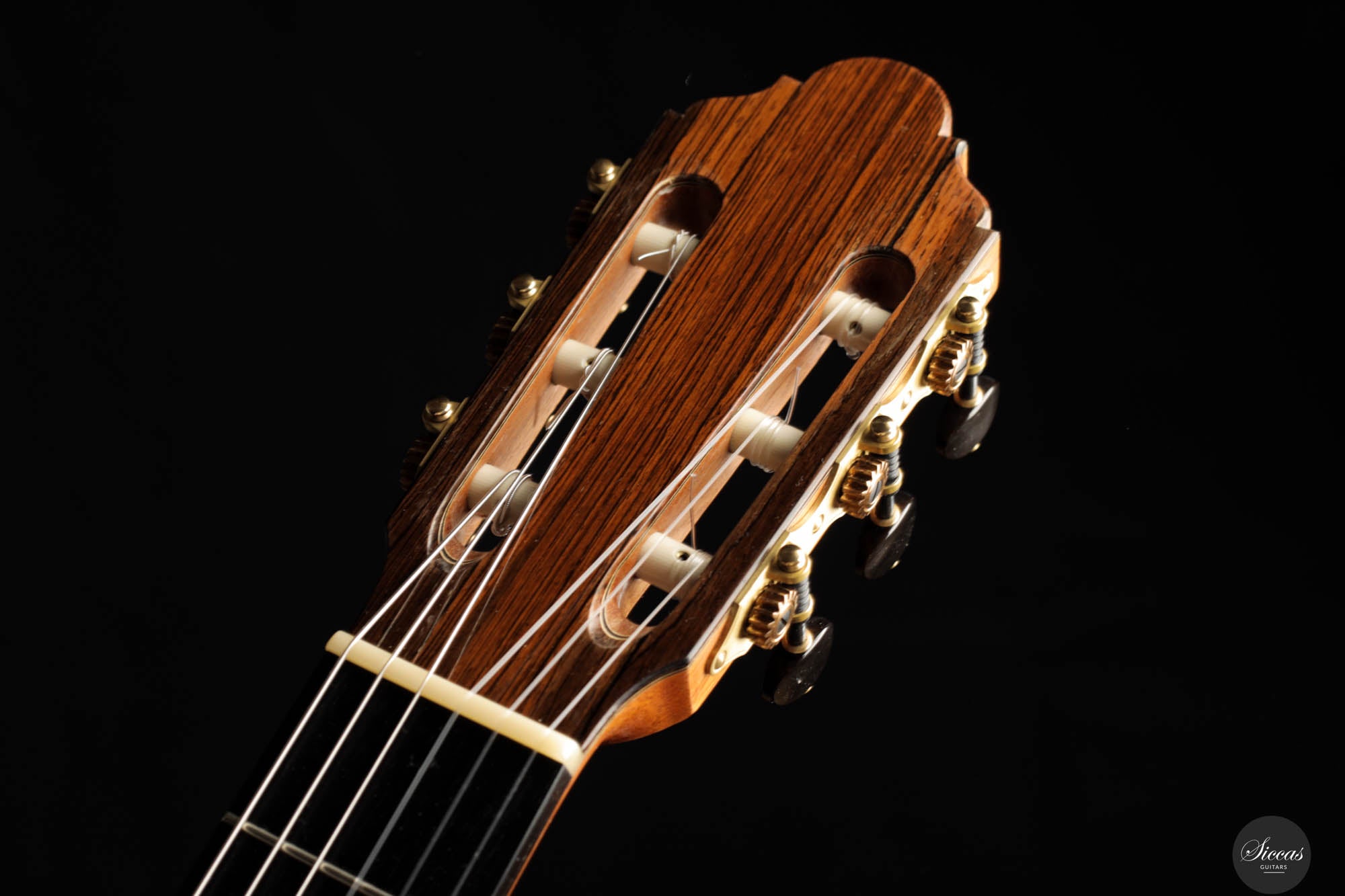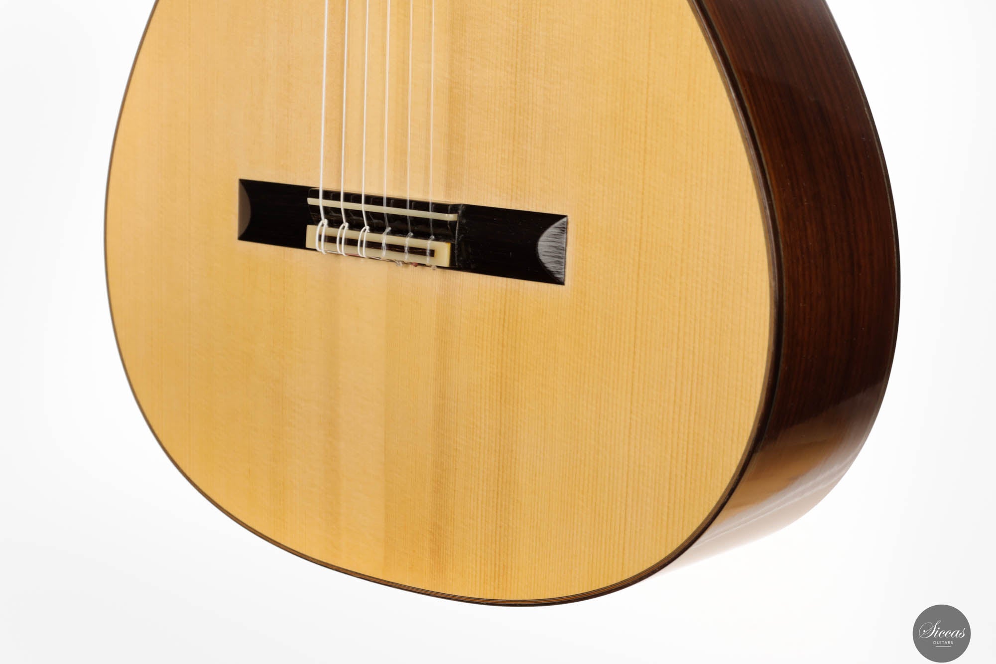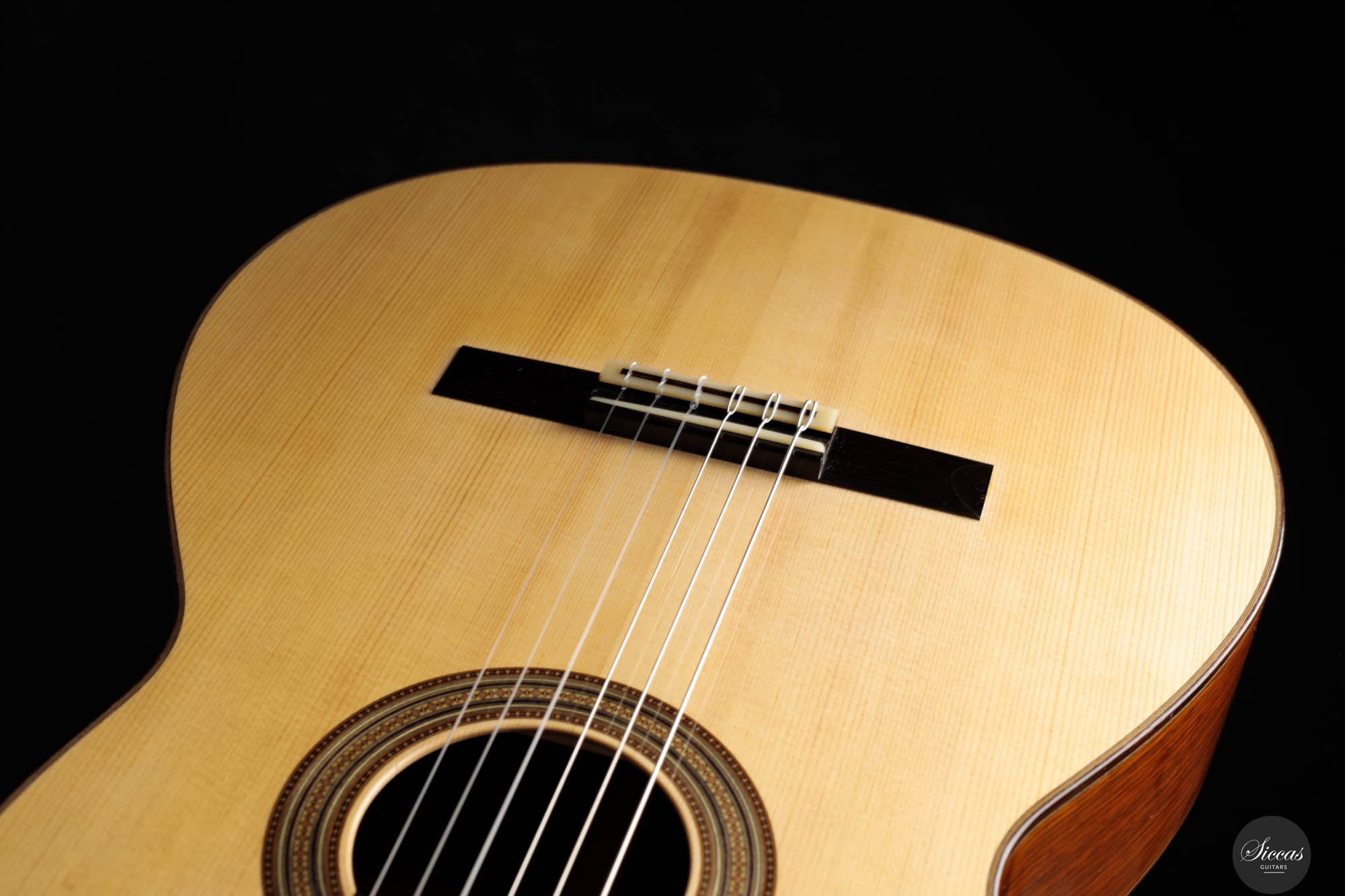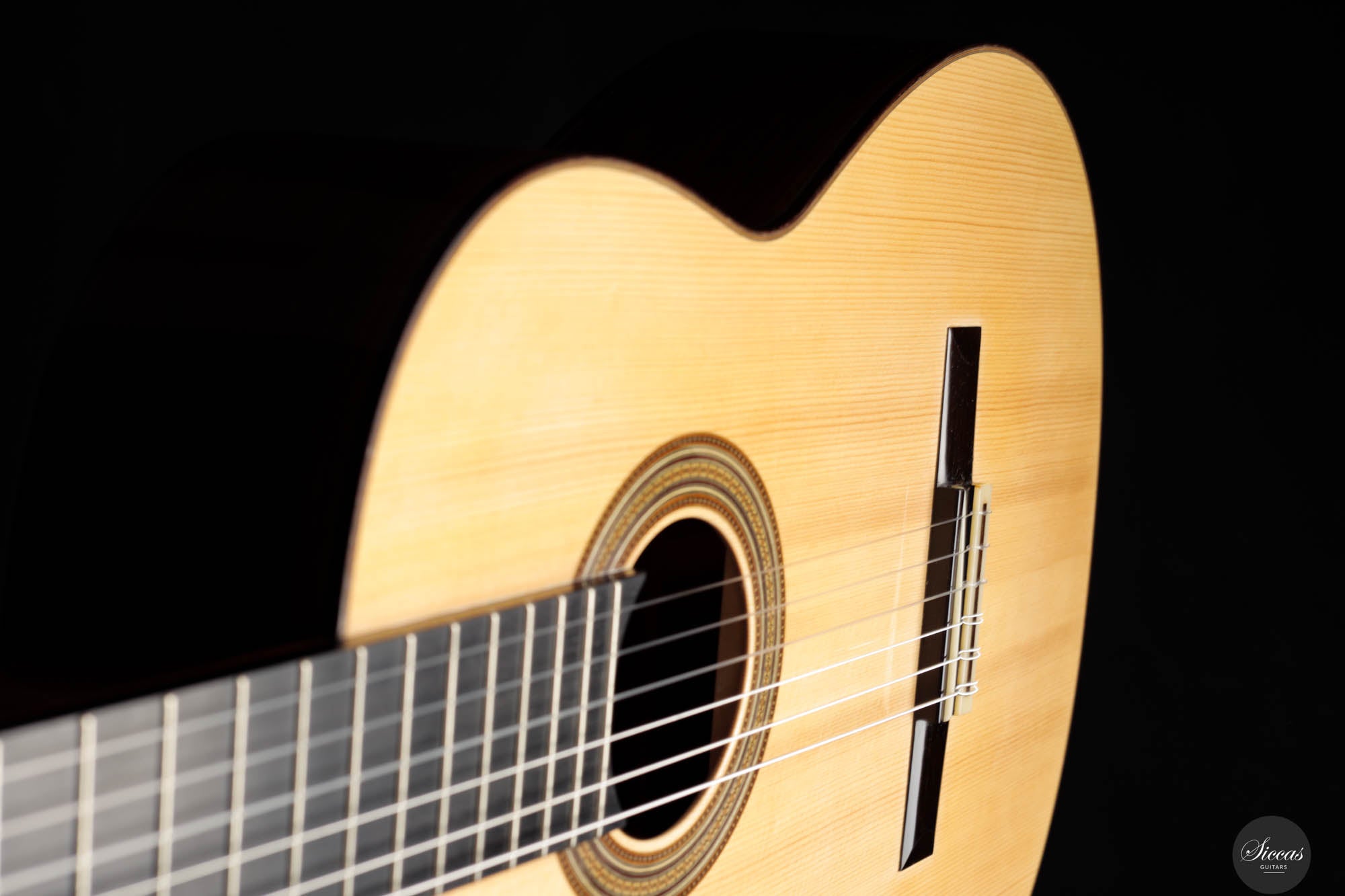 Visually, the guitar is a marvel of craftsmanship, brimming with meticulously executed details that invite admiration. The rosette, with its complex and captivating pattern, is a testament to the luthier's skill and attention to detail, embodying the essence of artistry in guitar construction. Jean-Noël's inspiration for the head shape, drawn from a gothic arch in an ancient building in Strasbourg, infuses the instrument with a timeless elegance that transcends the ages. The hand-engraved Scheller tuners are not only aesthetically pleasing but also exemplify the highest standard of functionality, making every tuning adjustment a pleasure. Despite its status as a pre-loved instrument, it maintains great condition, bearing only minor signs of use—a testament to its enduring beauty and resilience.