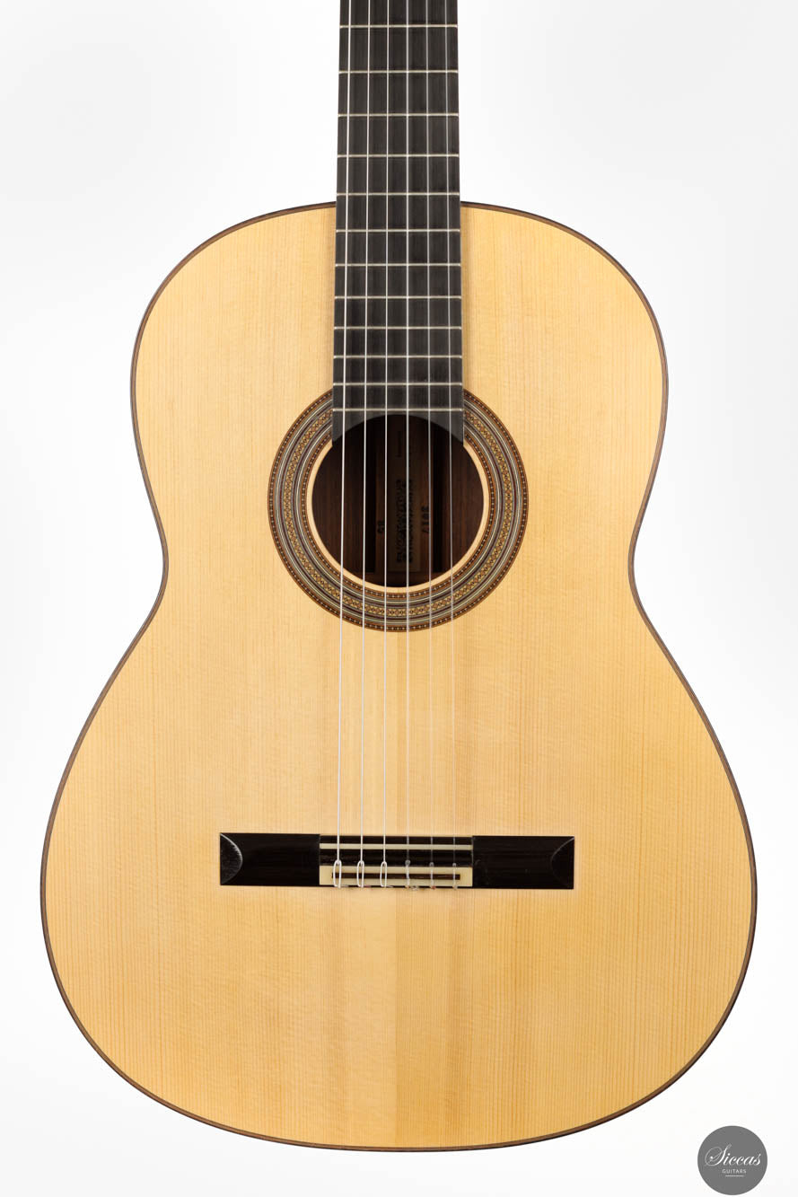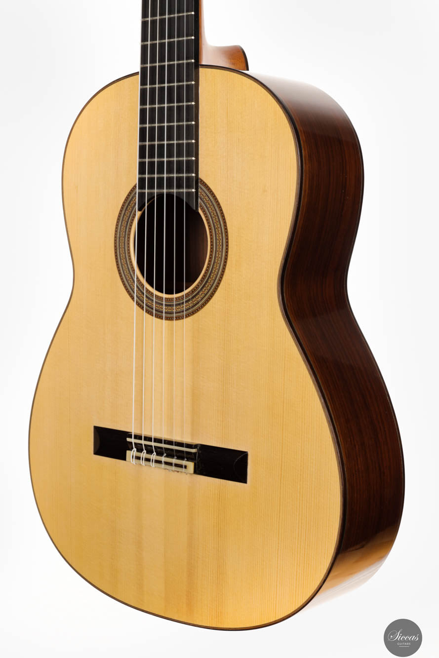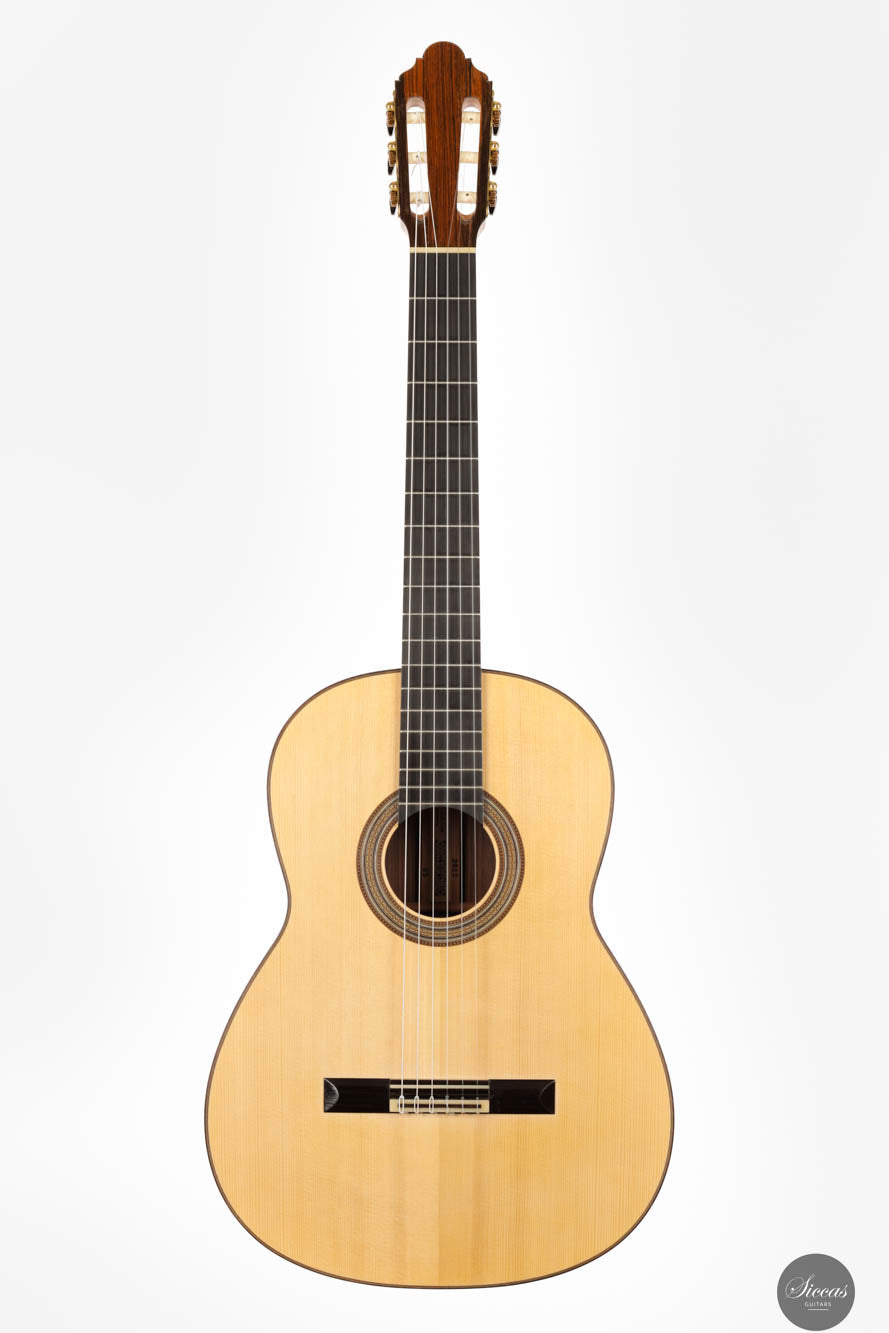 Crafted in 2017, this exquisite instrument by Jean-Noël showcases the luthier's dedication to creating guitars with unparalleled sound quality. Featuring a spruce top complemented by Indian rosewood back and sides, it exemplifies the crystal-clear tone Jean-Noël's guitars are renowned for, allowing players to sculpt the sound with their technique. The guitar achieves a harmonious balance between trebles that sing with long, lyrical sustain and firm, fundamental basses, elevating it to the zenith of concert guitars. This instrument is not merely a tool for music but a canvas for artists, enabling them to express the fullest range of their musical vision with clarity and depth.