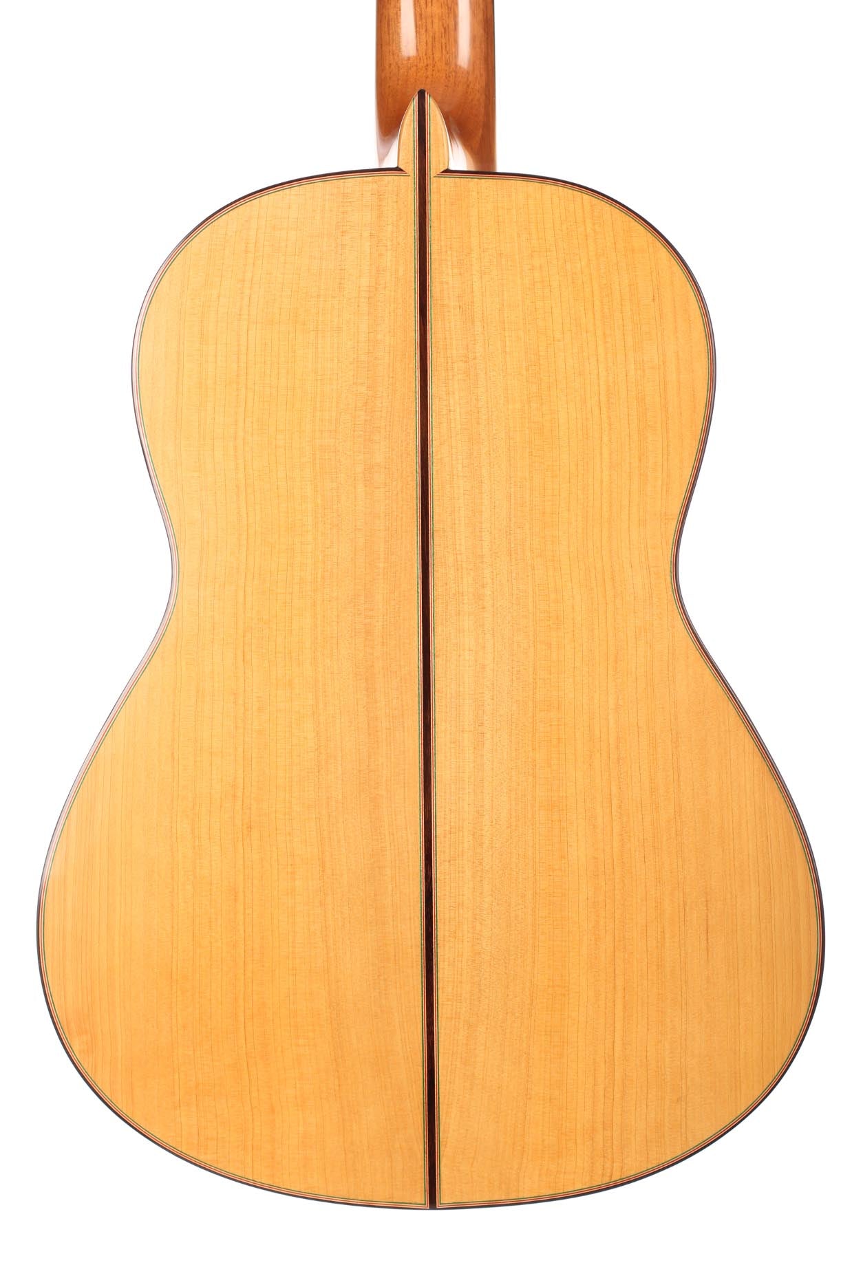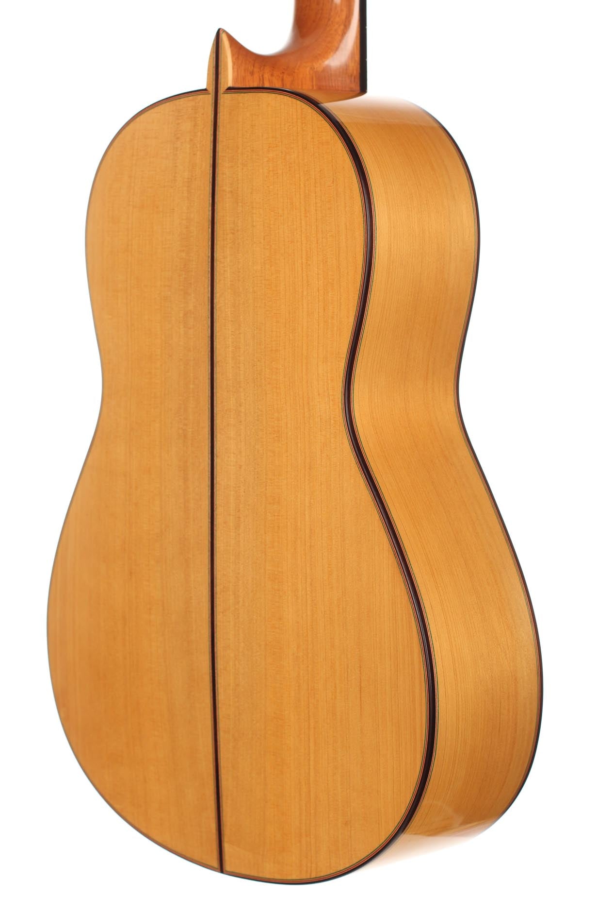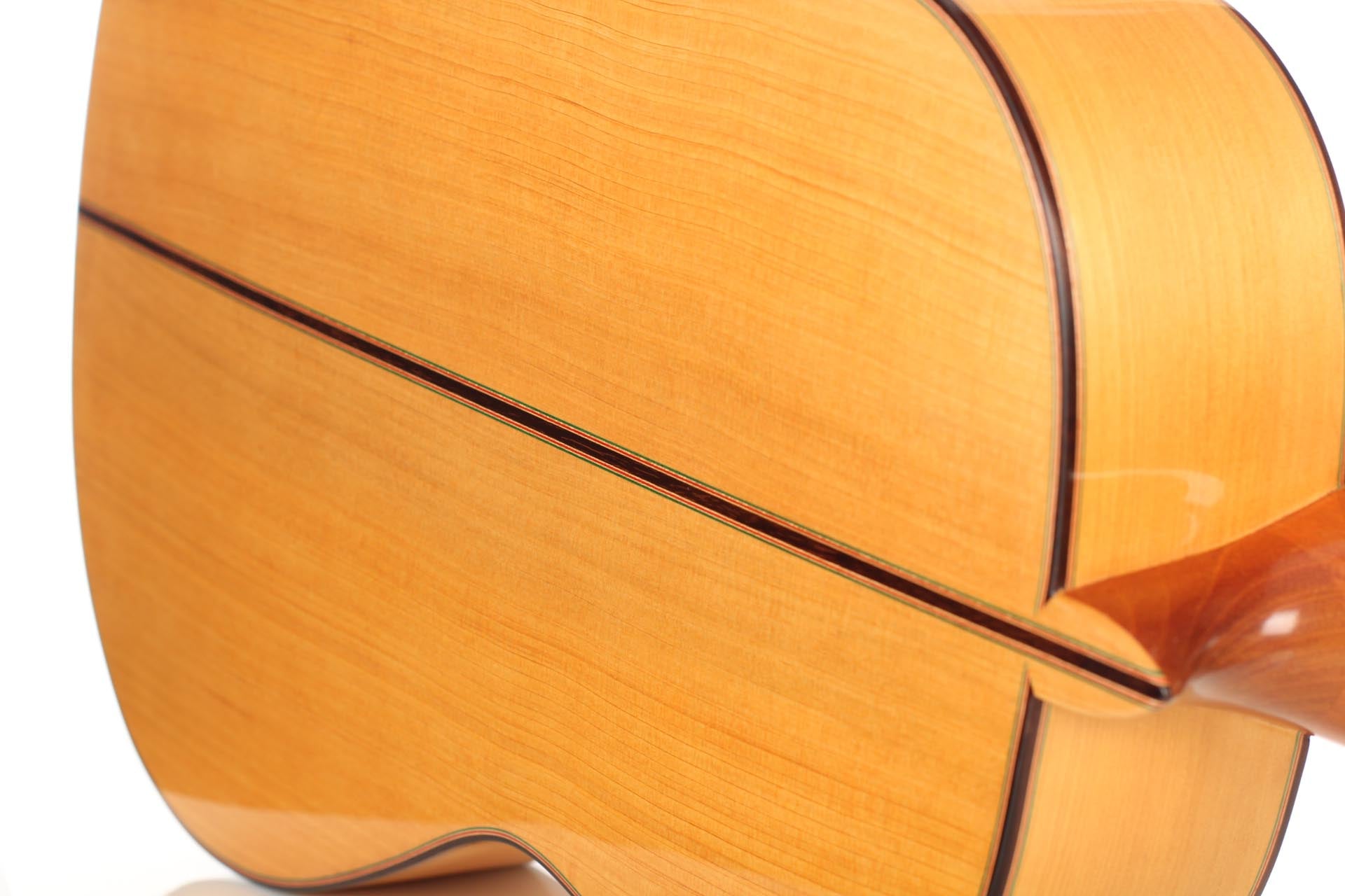 This guitar was built in 2018 and is brand new. It has a spruce top and cypress back and sides. The quality of the woods along with the richness and character of the tone makes it a very fine flamenco guitar. The projection of the tone is spectacular, and the harmonic definition in the chords is splendid. A hard-shell case is included.