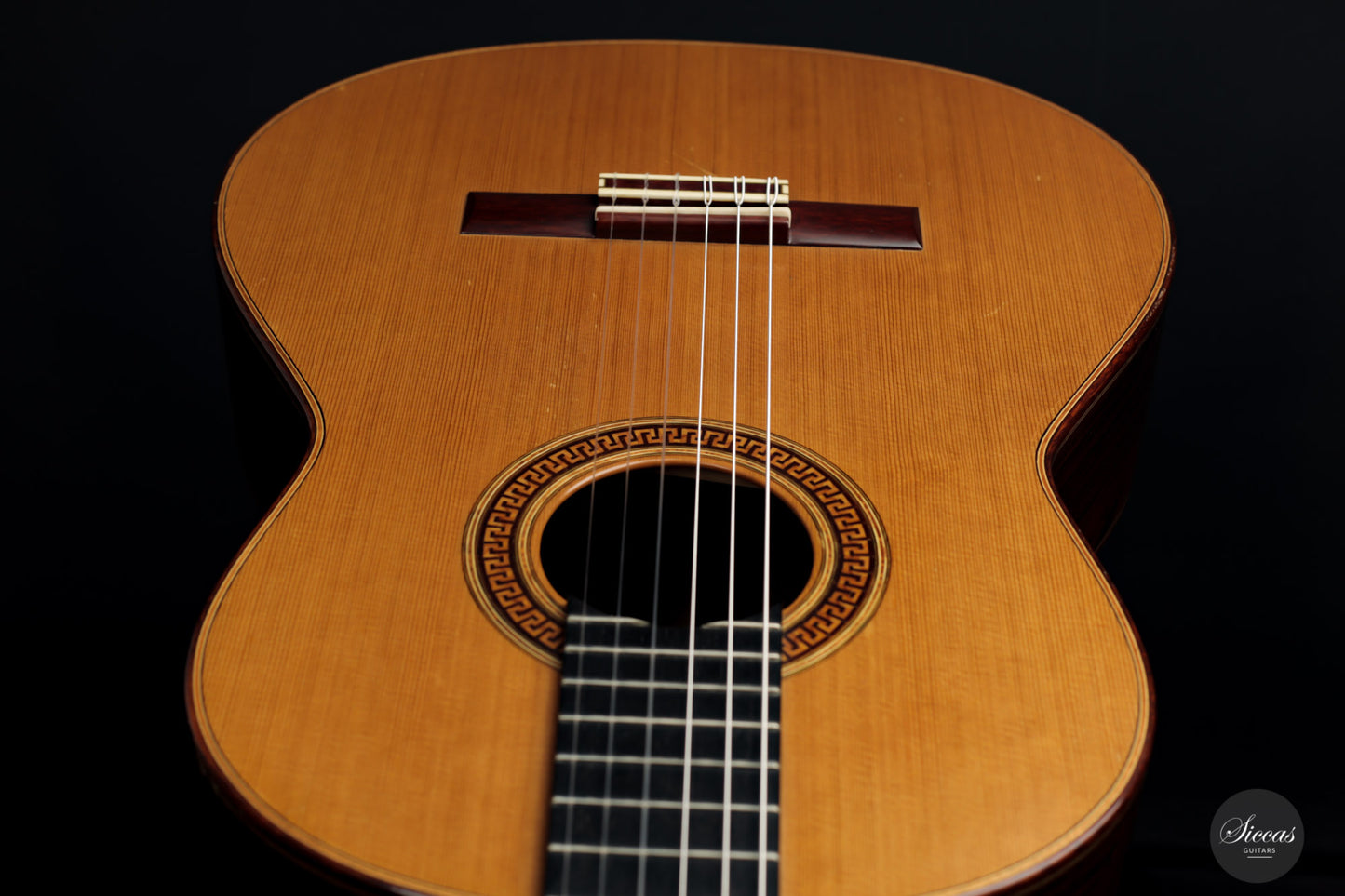 The flowing and long-lasting trebles echoes to deep round bass notes, and the warm variety of colors form an overall sense of balance. This lattice has remarkable responsiveness, a discreet attack, and easy playability. The result is a powerful and legato sound that will gently comfort its player in public performances and inspire him in a recording session. Overall, it is a wonderful, rare, and highly sought-after concert guitar.