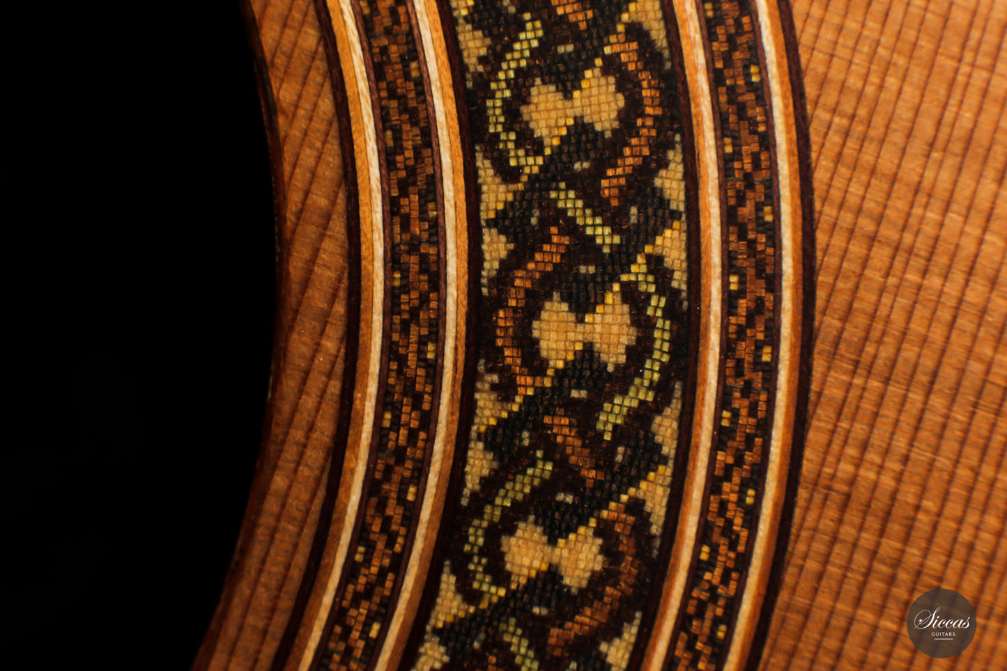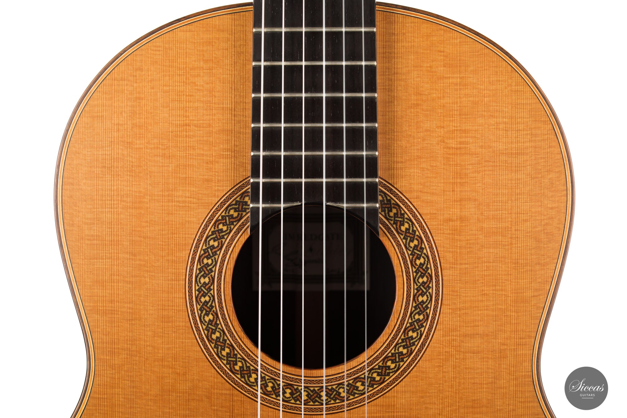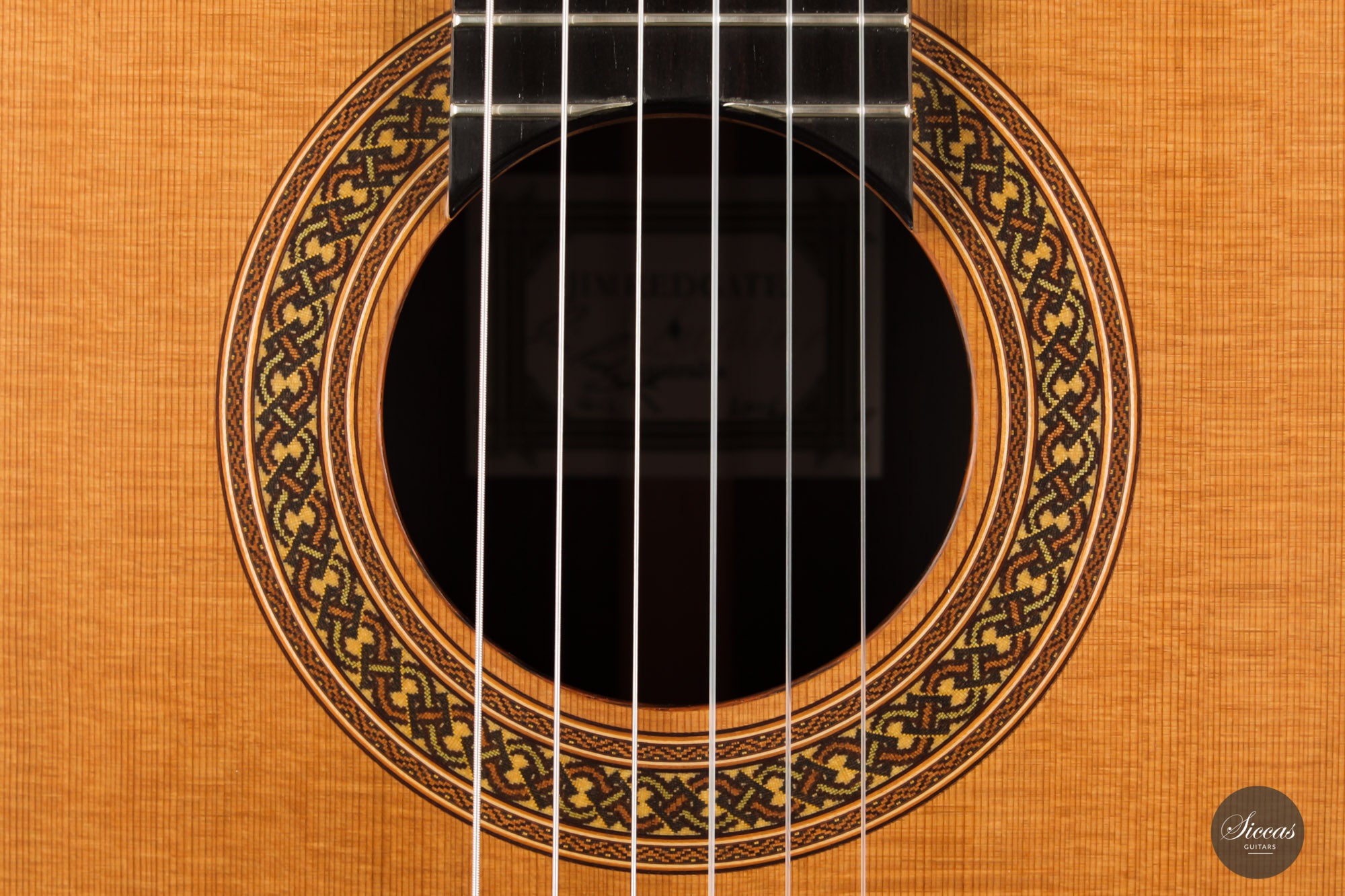 Jim Redgate is a highly sought-after Australian luthier known for the guitars built for artists such as Ana Vidovic, Pepe Roméro and Odair Assad. This model with lattice bracing is an exact copy of the guitar Ana Vidovic plays. Jim Redgate's instruments have a very unique character in sound and feel. The impressive sound volume combined with the rich overtone nuances and impressive clarity of tone are simply unique. The playability is fantastic, and the instruments are relatively light compared to other Australian guitars.