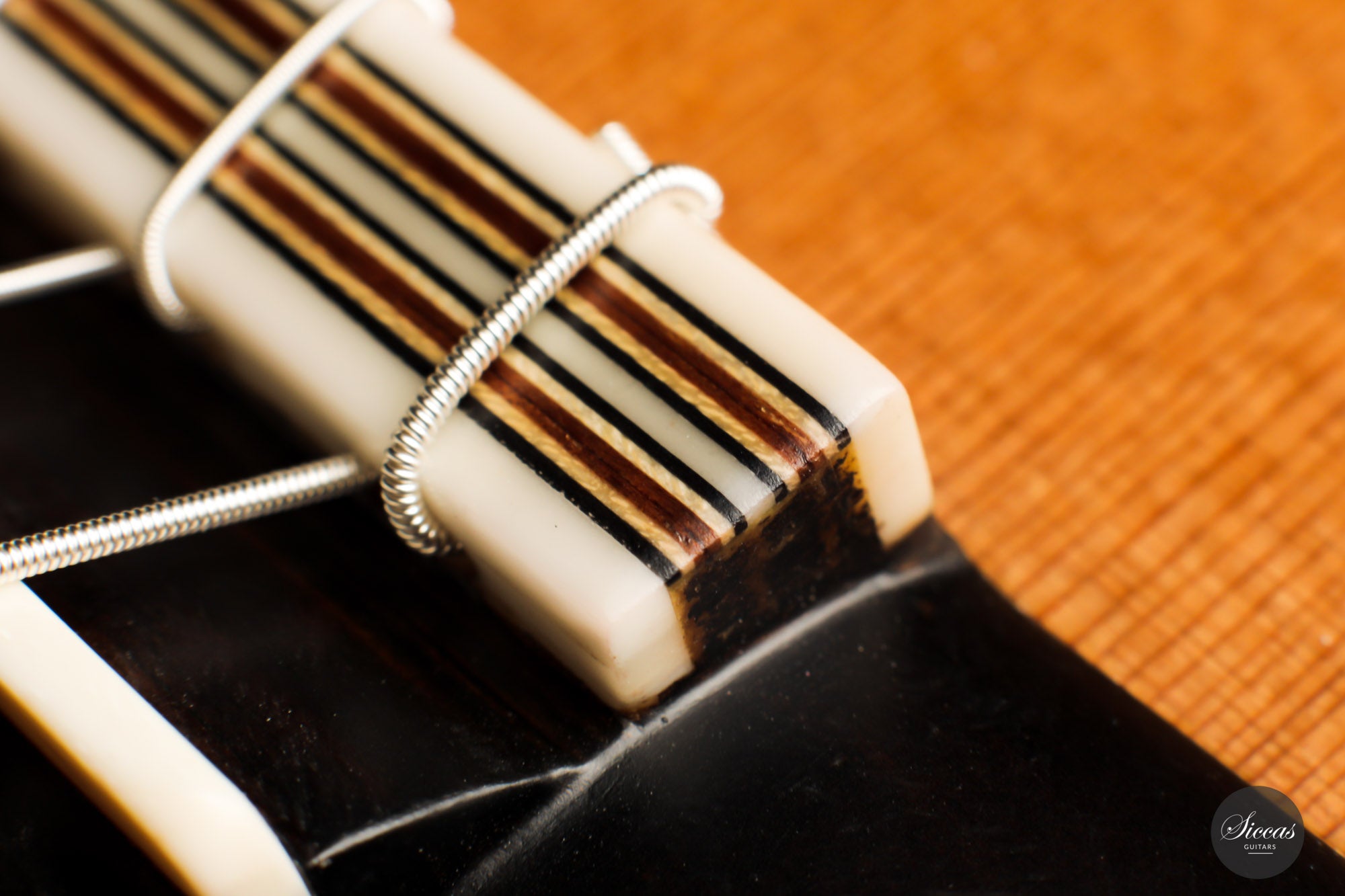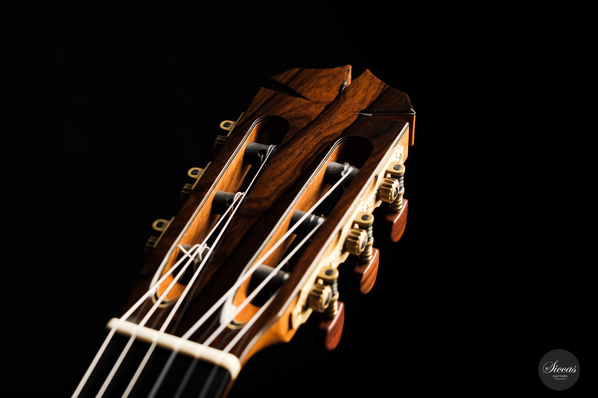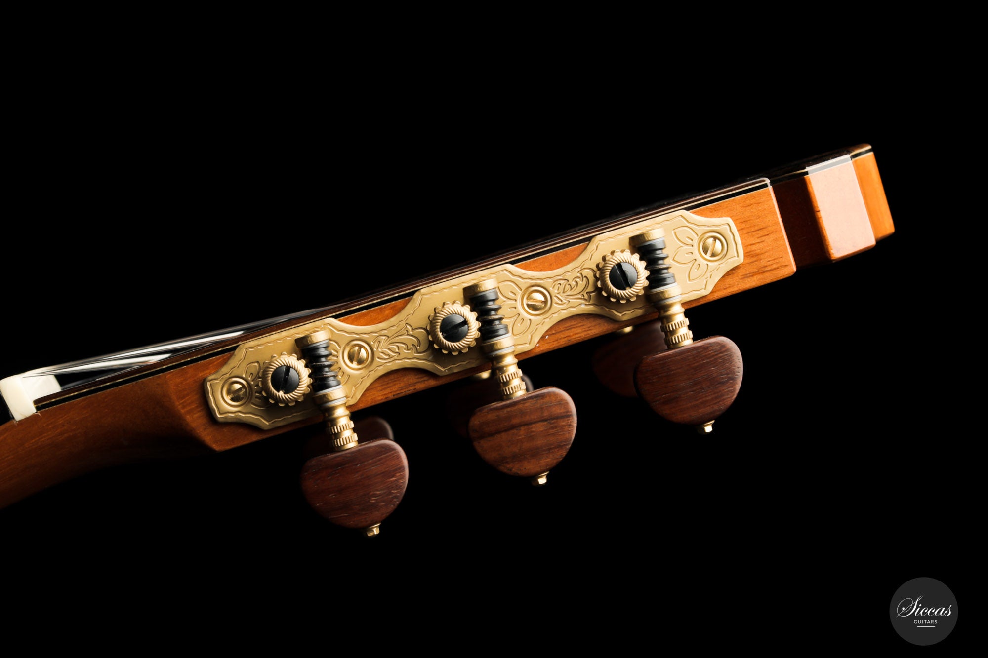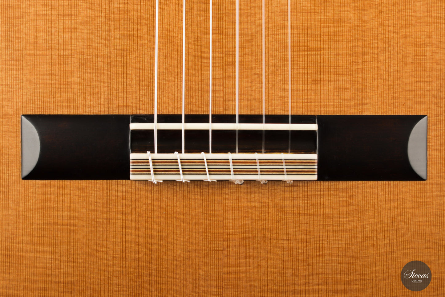 Jim Redgate is a highly sought-after Australian luthier known for the guitars built for artists such as Ana Vidovic, Pepe Roméro and Odair Assad. This model with lattice bracing is an exact copy of the guitar Ana Vidovic plays. Jim Redgate's instruments have a very unique character in sound and feel. The impressive sound volume combined with the rich overtone nuances and impressive clarity of tone are simply unique. The playability is fantastic, and the instruments are relatively light compared to other Australian guitars.