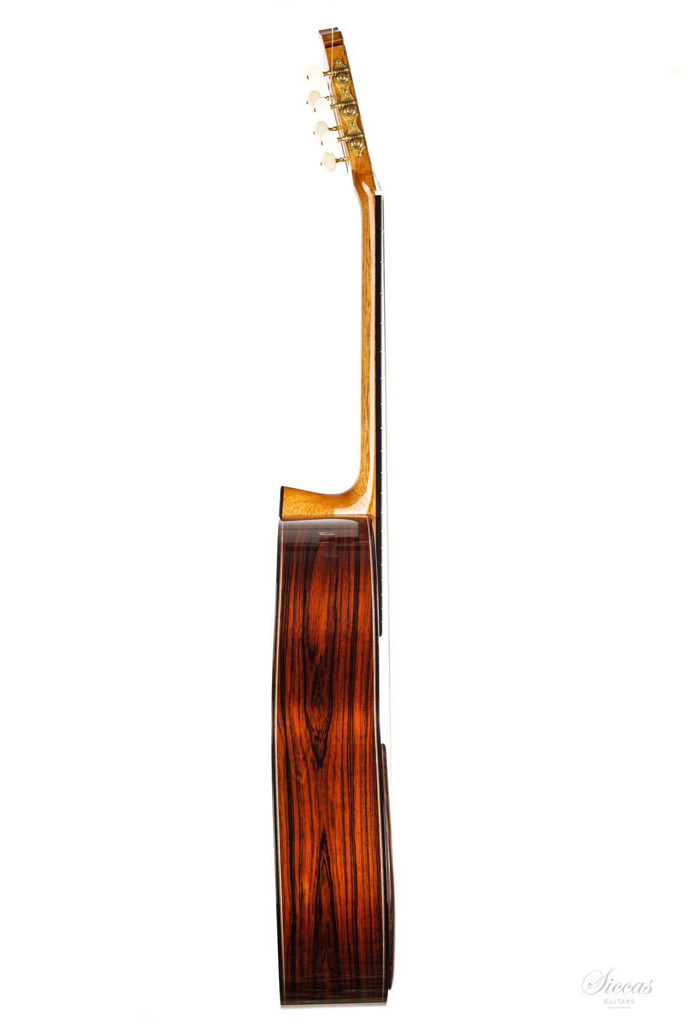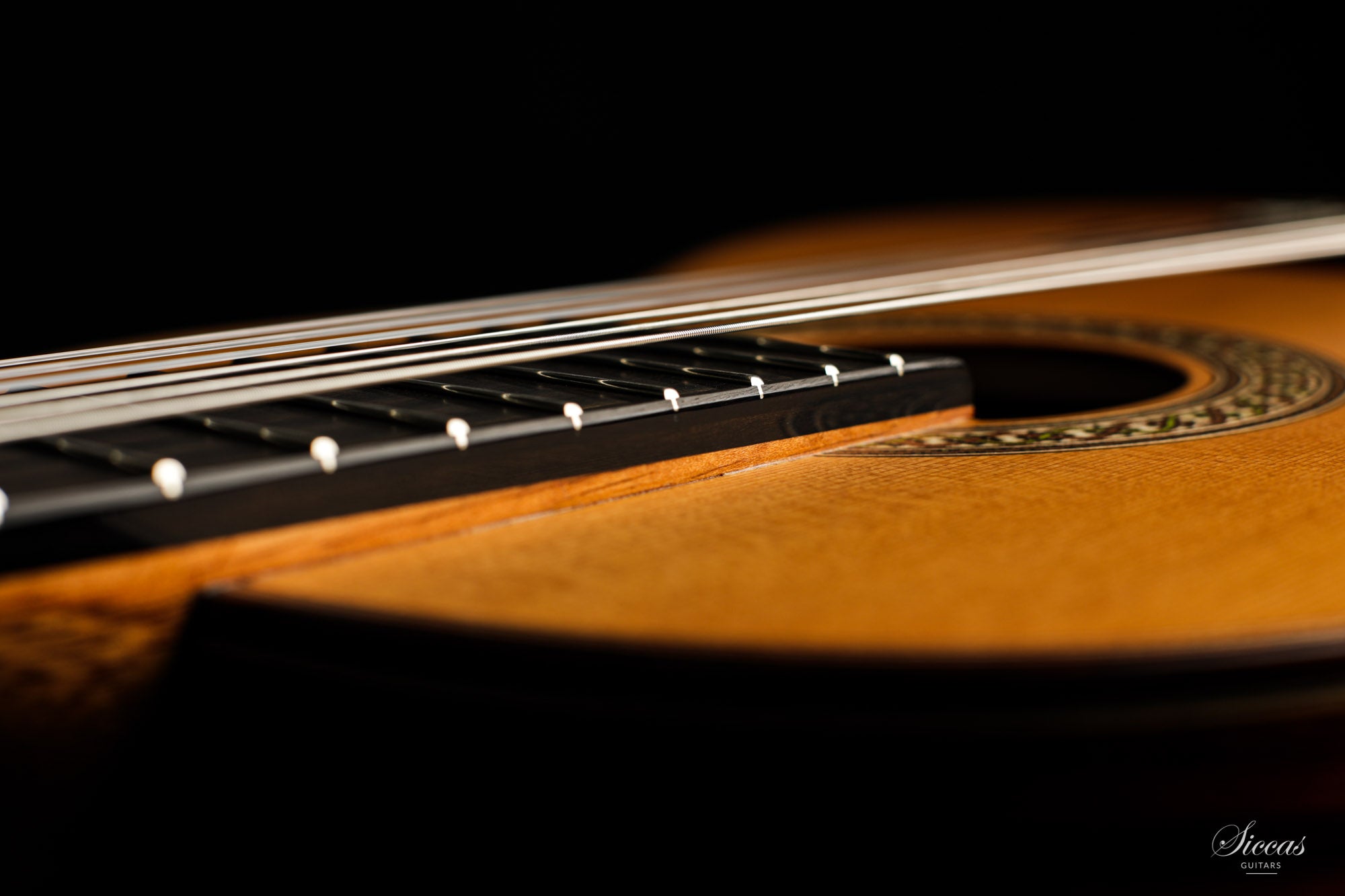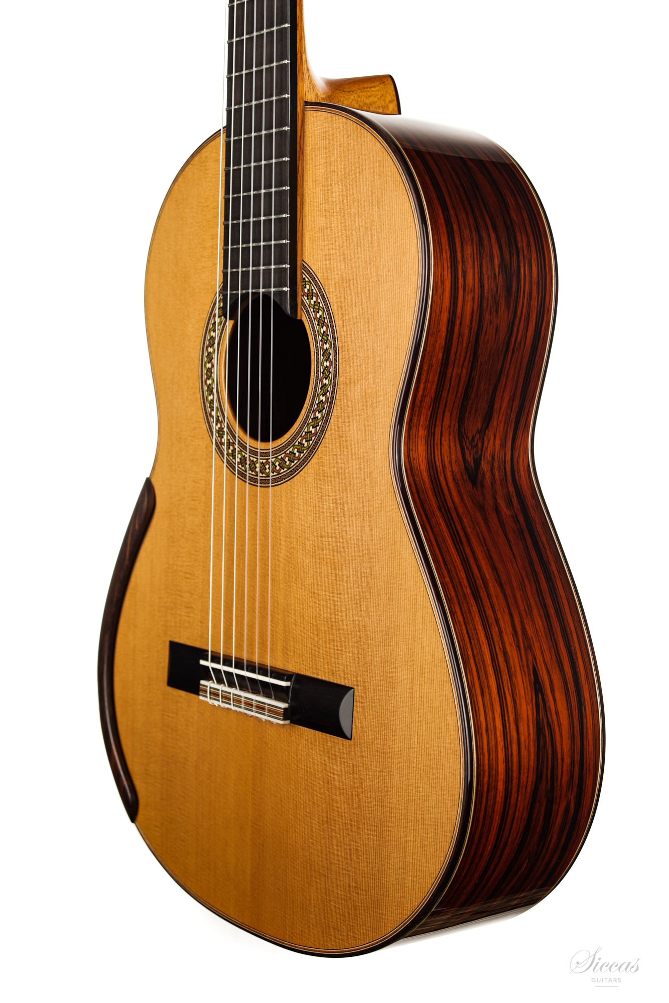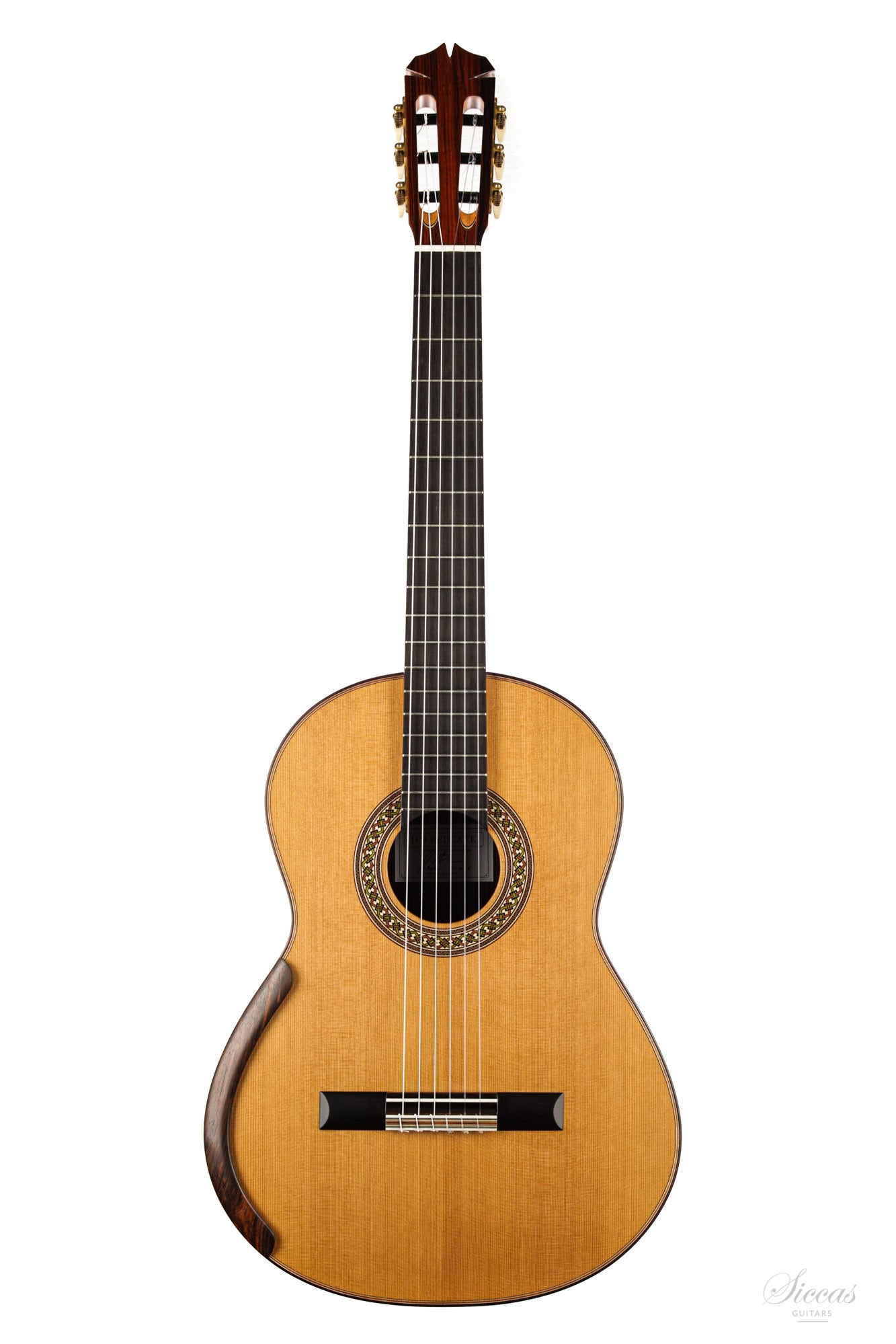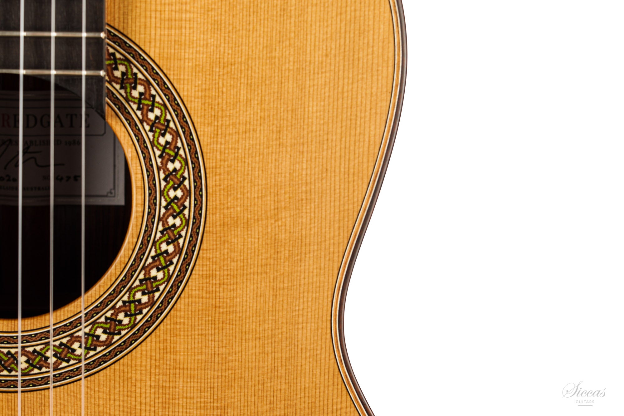 Jim Redgate is a highly sought-after Australian luthier, known for his guitars built for artists such as Ana Vidovic, Pepe Roméro and Odair Assad. This lattice-braced model is an exact copy of the guitar that Ana Vidovic plays. Jim Redgate’s instruments have their own sound and touch. The breath-taking volume combined with rich harmonics and impressive clarity of sound are quite unique. The playability is fantastic, and the guitars are relatively light in weight compared to the Australian standard.