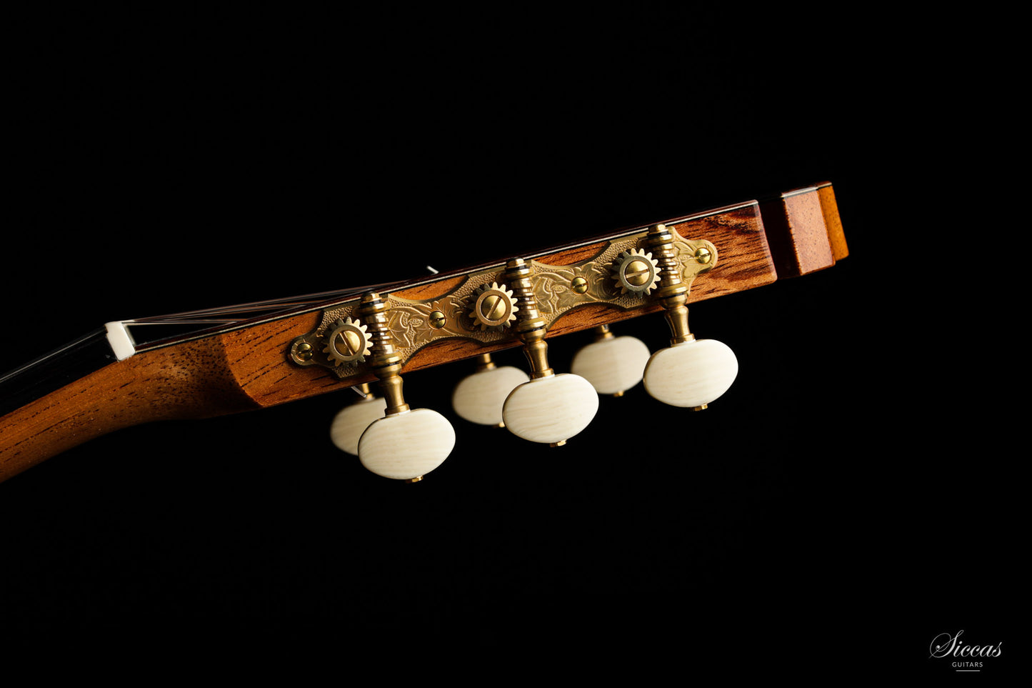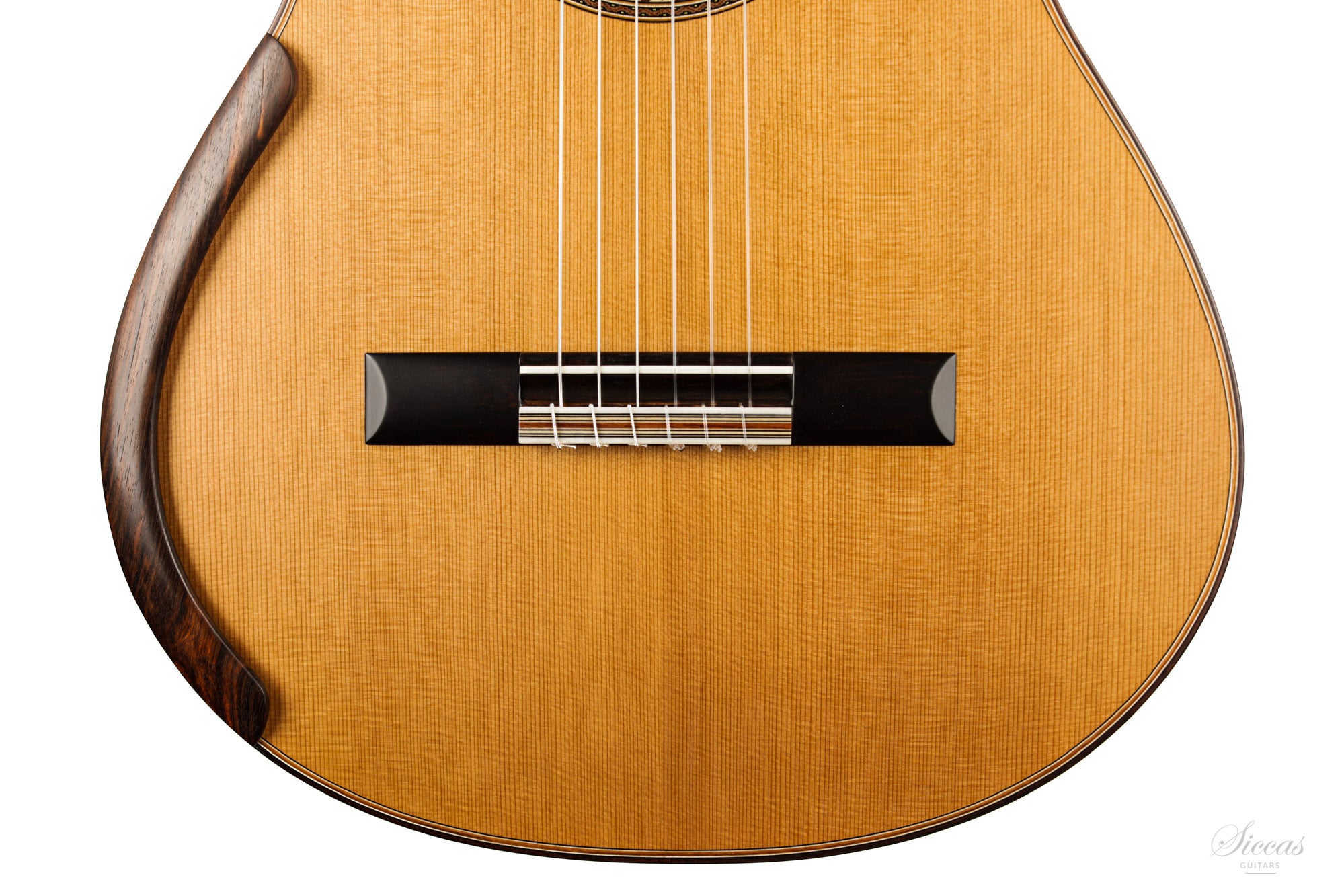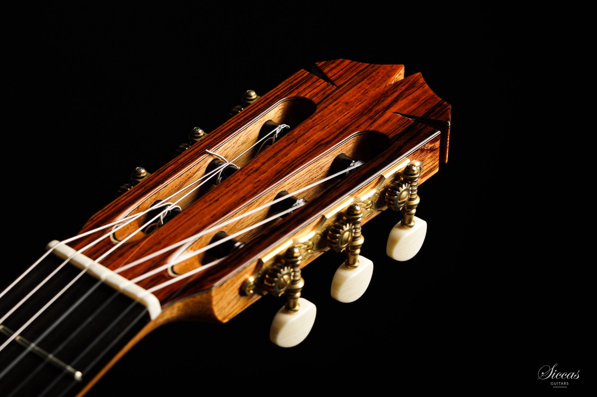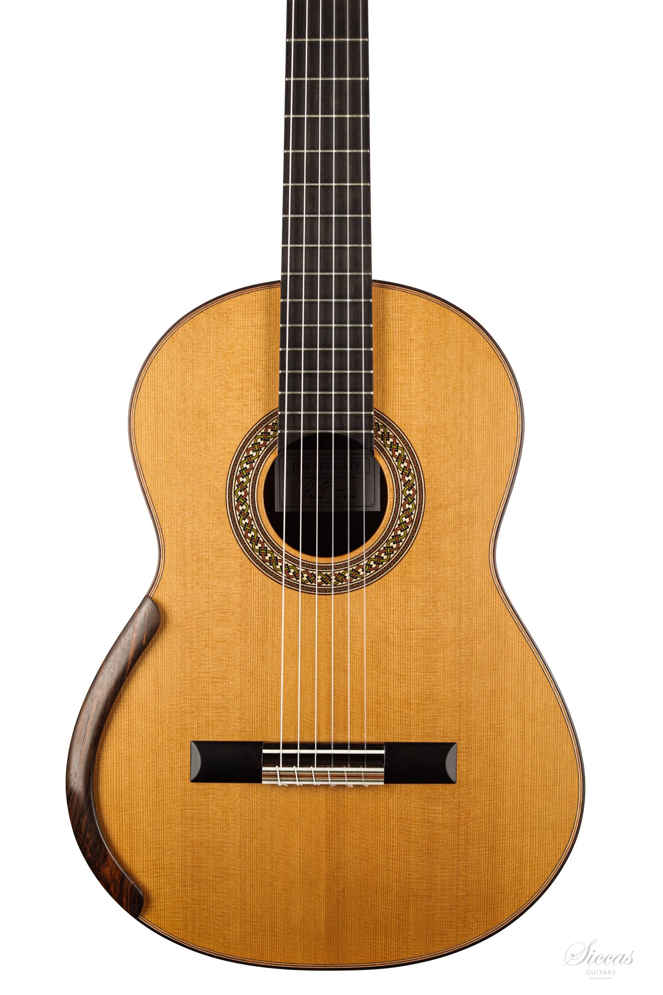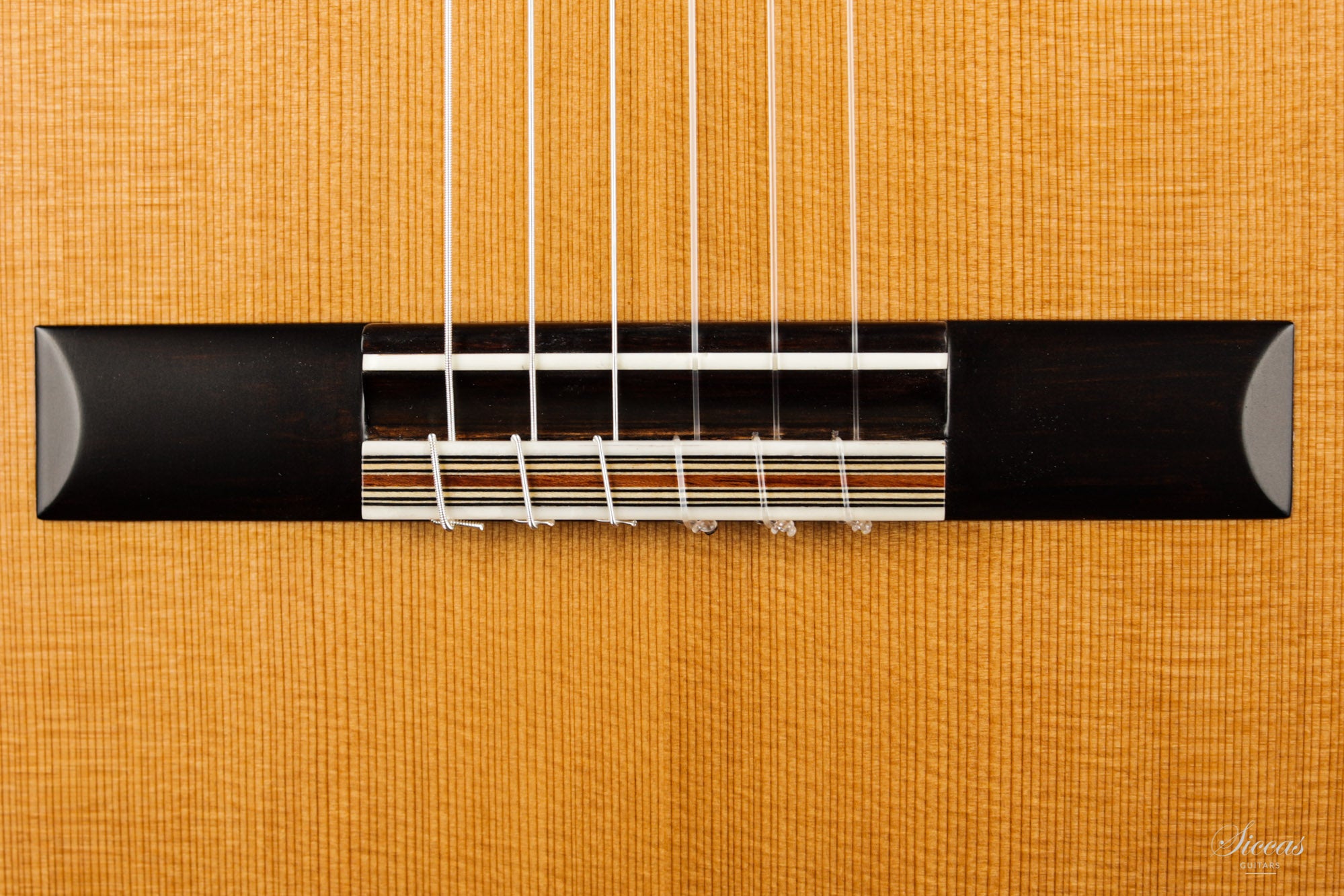 Jim Redgate is a highly sought-after Australian luthier, known for his guitars built for artists such as Ana Vidovic, Pepe Roméro and Odair Assad. This lattice-braced model is an exact copy of the guitar that Ana Vidovic plays. Jim Redgate’s instruments have their own sound and touch. The breath-taking volume combined with rich harmonics and impressive clarity of sound are quite unique. The playability is fantastic, and the guitars are relatively light in weight compared to the Australian standard.