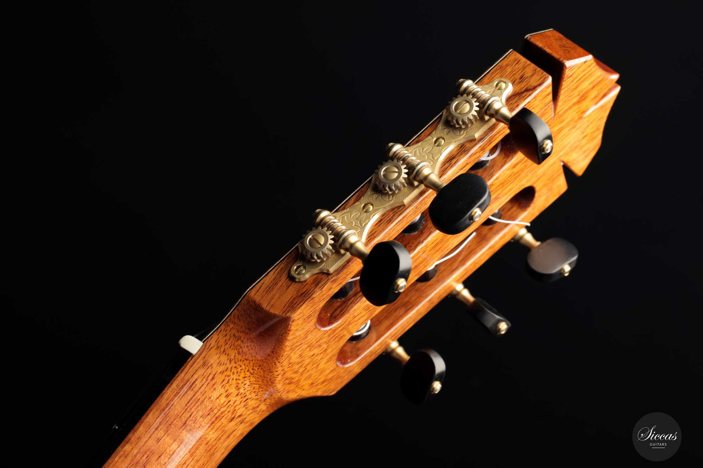 Jim Redgate is a highly sought-after Australian luthier, known for his guitars built for artists such as Ana Vidovic, Pepe Roméro and Odair Assad. This lattice-braced model is an exact copy of the guitar that Ana Vidovic plays. Jim Redgate’s instruments have their own sound and touch. The breath-taking volume combined with rich harmonics and impressive clarity of sound are quite unique. The playability is fantastic, and the guitars are relatively light in weight compared to the Australian standard.