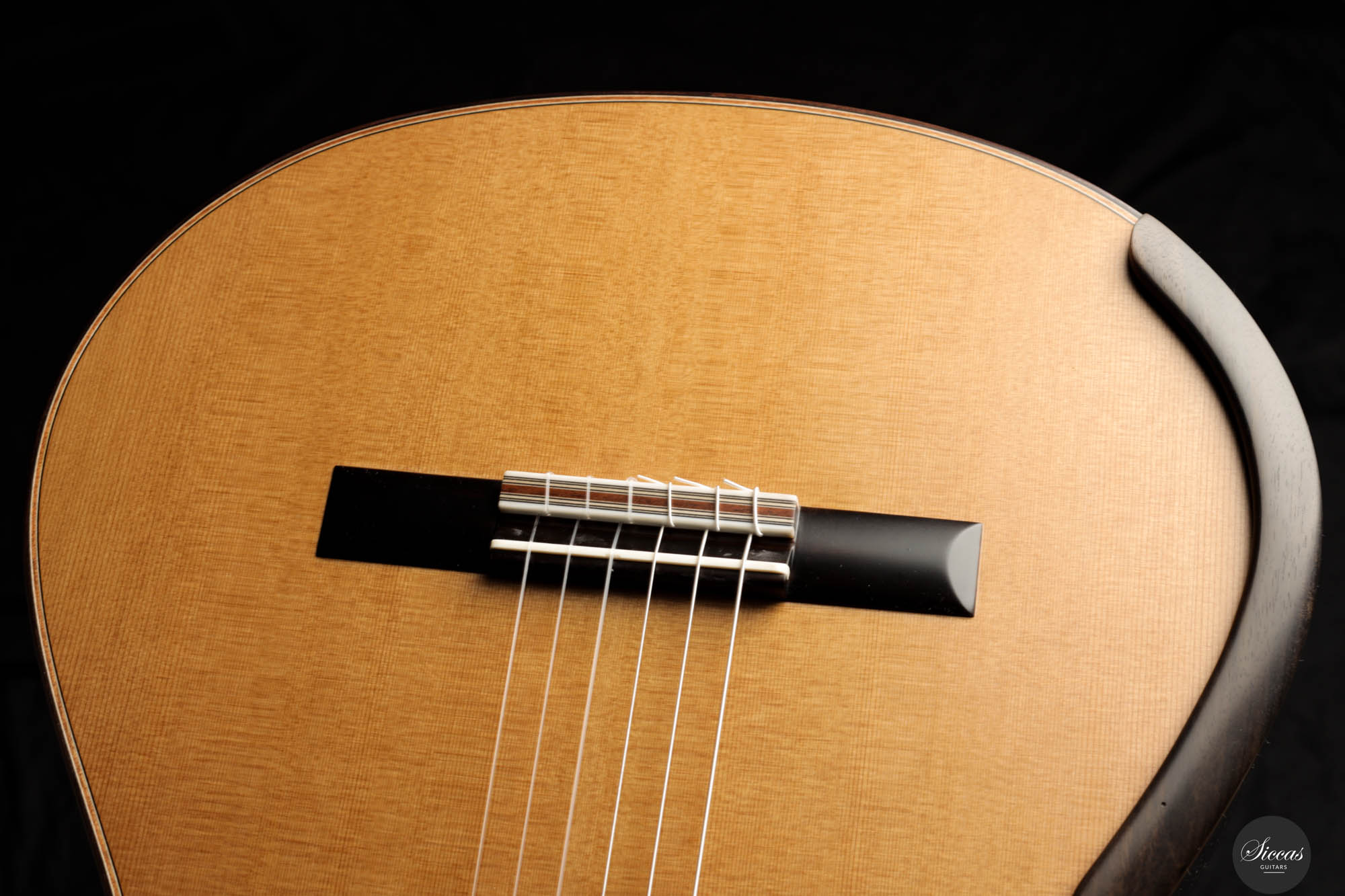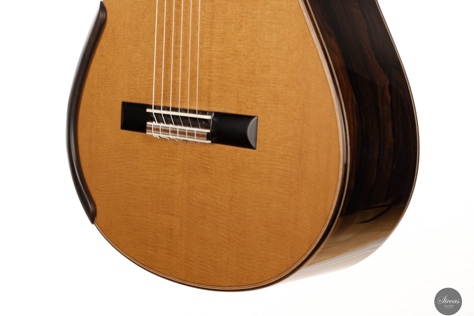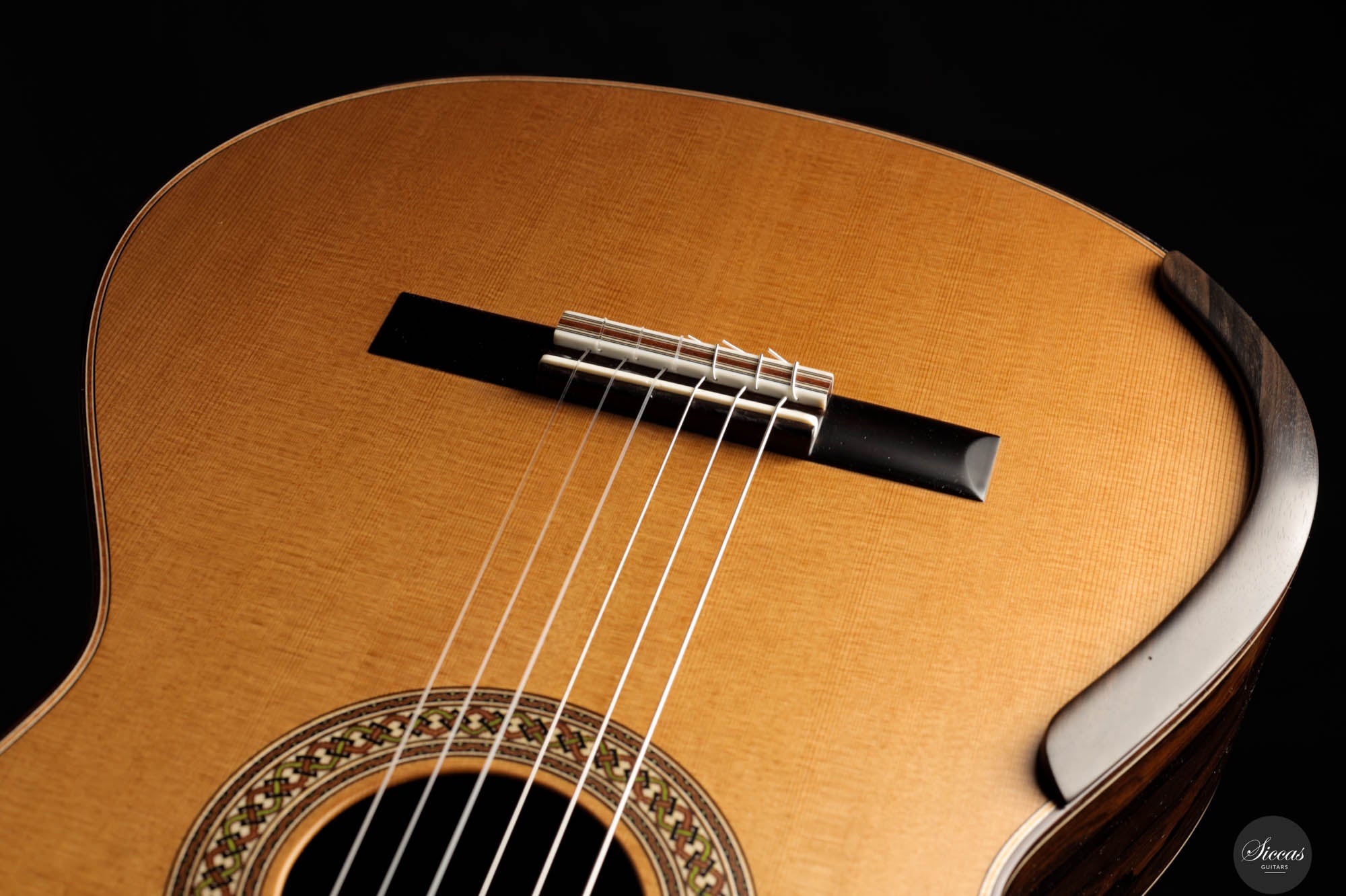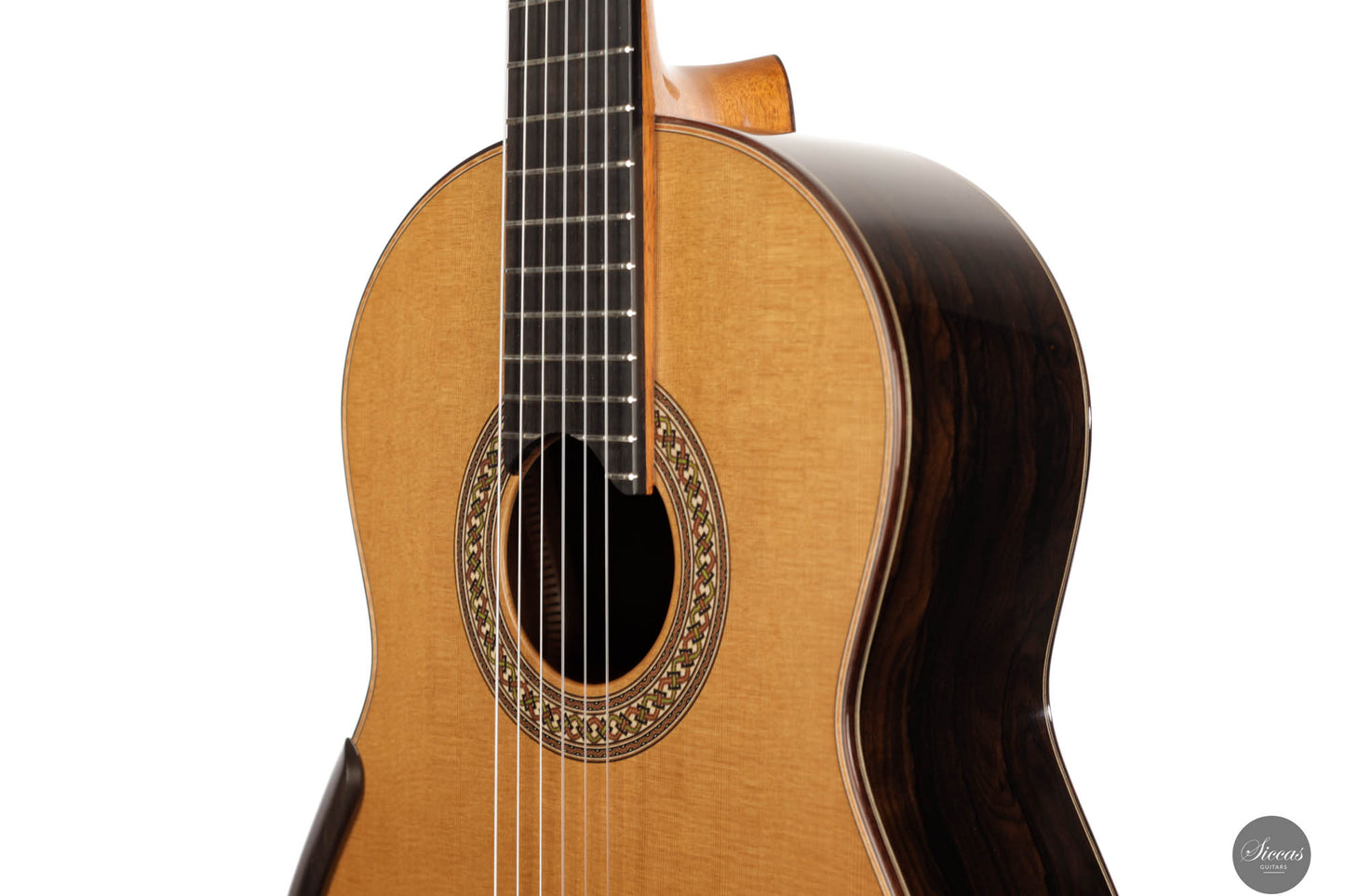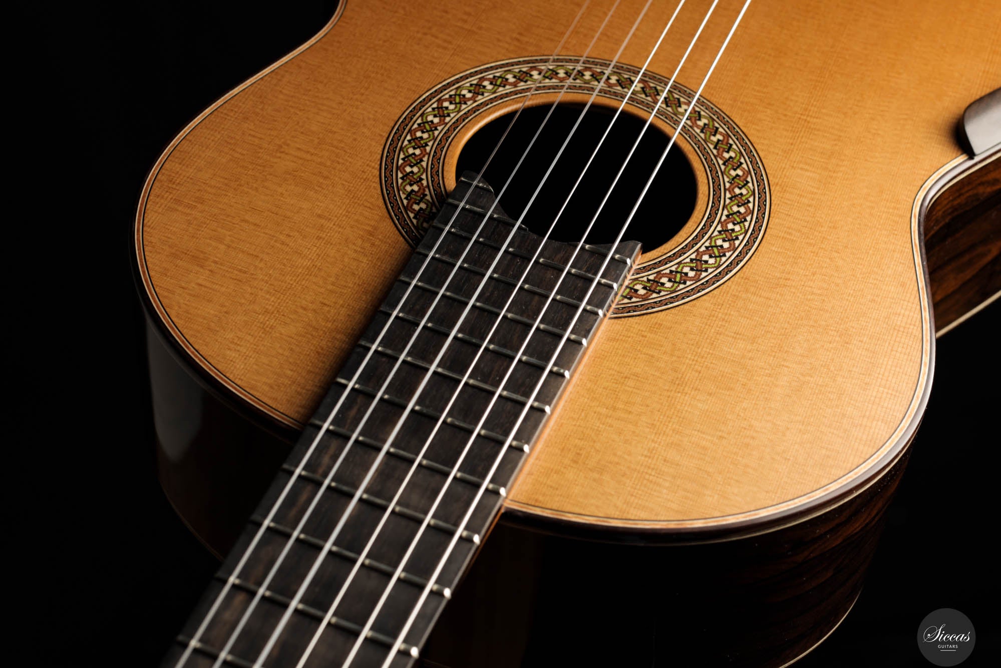 The 2023 Jim Redgate guitar emerges as a magnificent achievement in the world of high-end luthiery, satisfying the highest standards of musicians across the globe. This new model is a symphony of aesthetics and acoustics, featuring a beautifully delicate cedar top paired with the dark, rich tones of Ziricote for the back and sides. The result is a guitar that radiates elegance and sophistication. The attention to detail is evident in the intricate purfling, bindings, and rosette – each element showcasing the extraordinary craftsmanship synonymous with Jim Redgate's work.