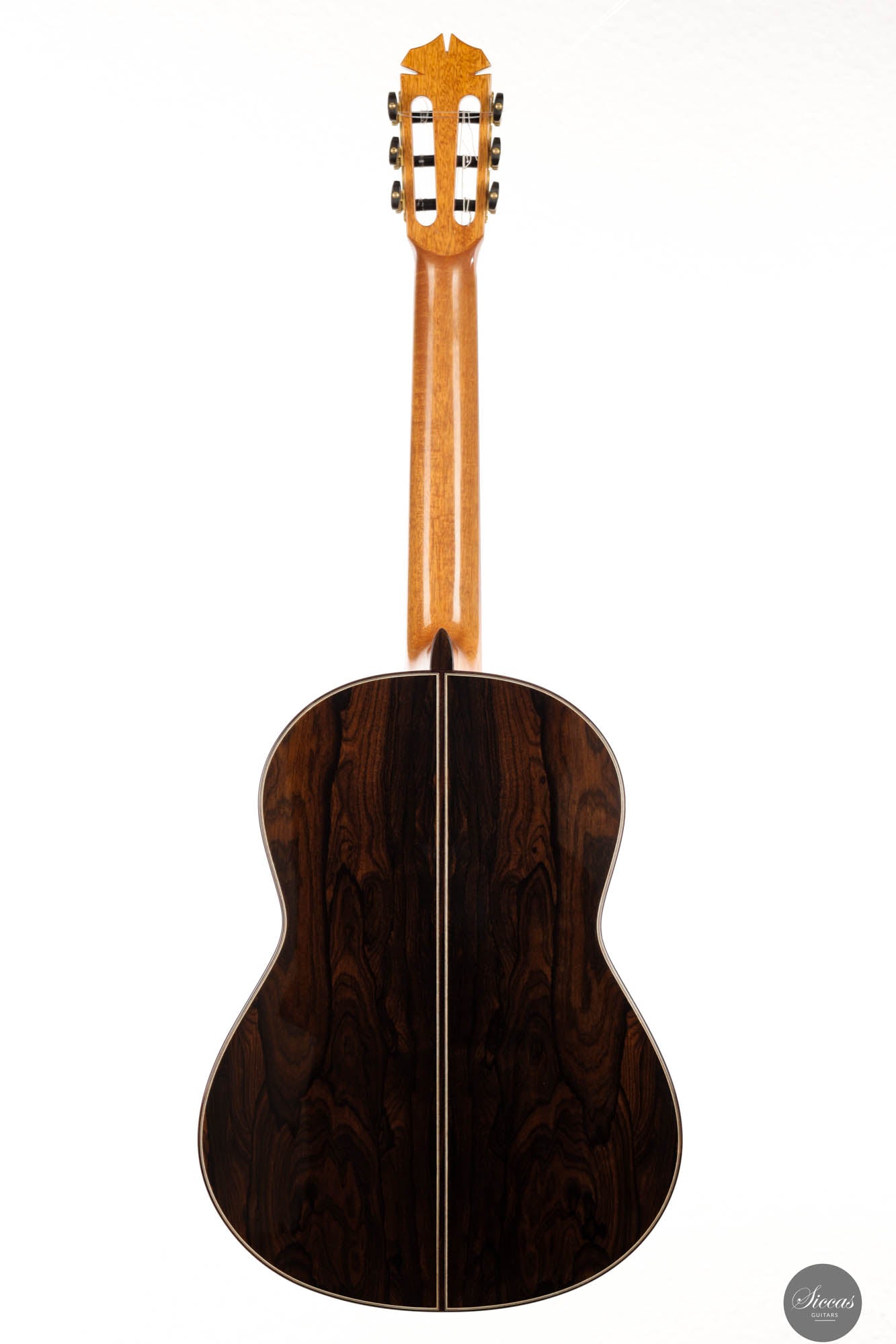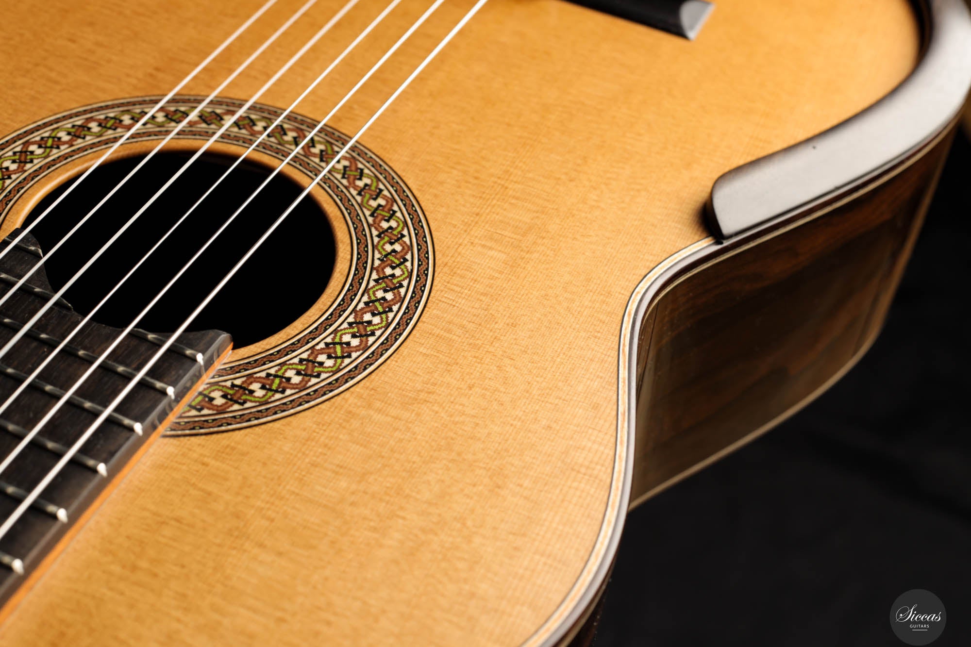 Jim Redgate is a highly sought-after Australian luthier known for his guitars built for artists such as Ana Vidovic, Pepe Roméro, and Odair Assad. This lattice-braced model is an exact copy of the guitar that Ana Vidovic plays. Jim Redgate’s instruments have their sound and touch. The breathtaking volume combined with rich harmonics and impressive sound clarity is unique. The playability is fantastic, and the guitars are relatively light in weight compared to the Australian standard.