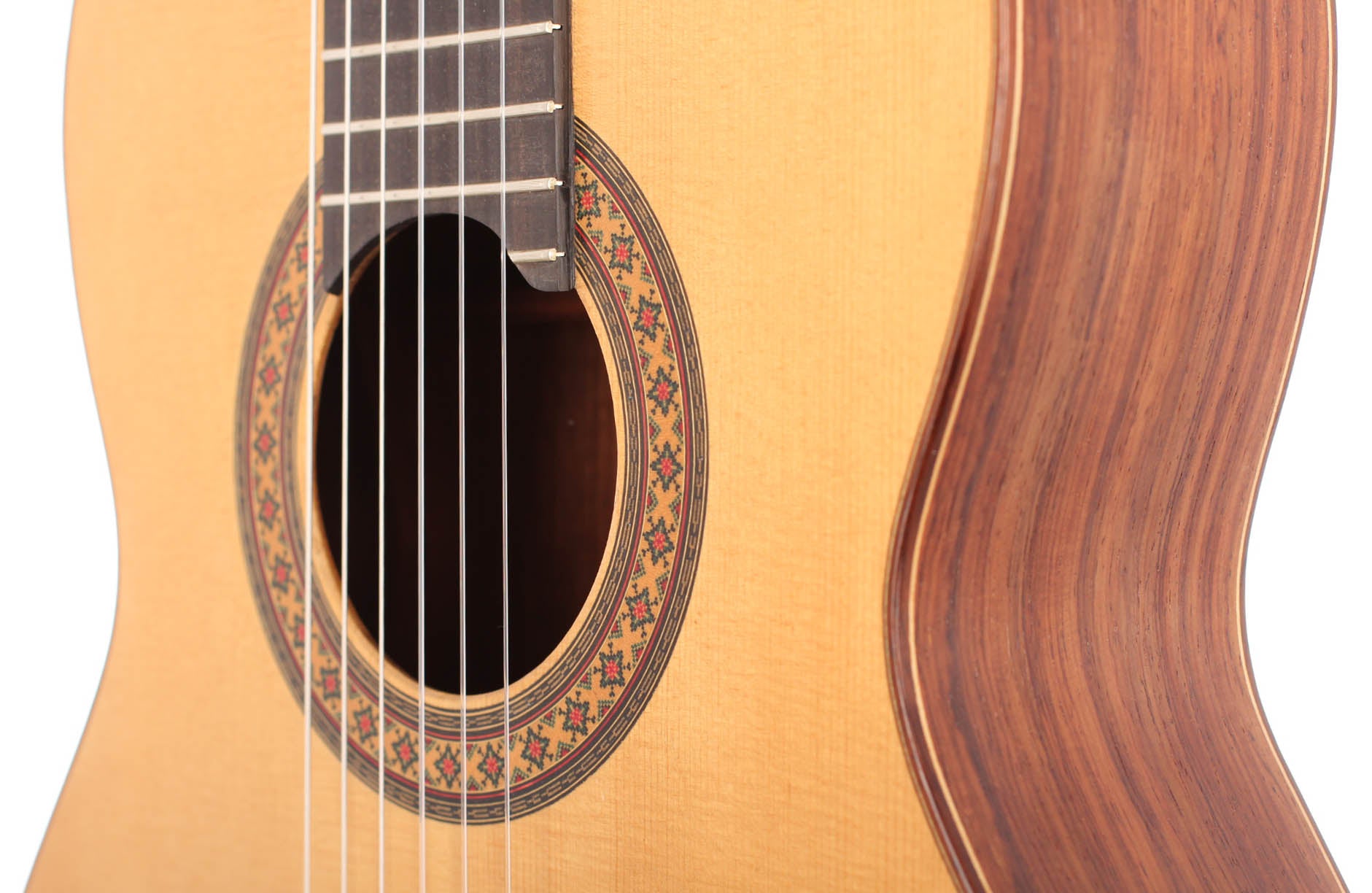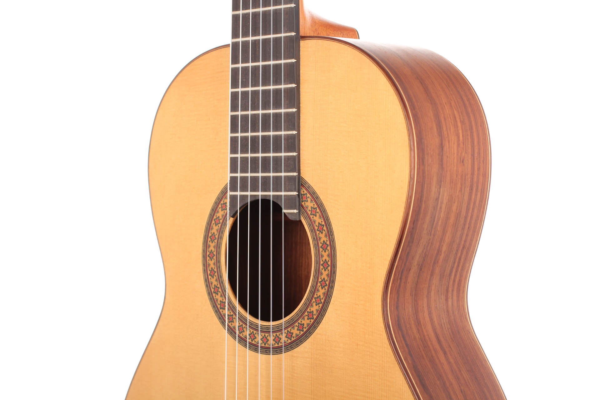 The classical guitar, with its soft nylon strings and characteristic timbre, has become a symbol of chamber music, Spanish tradition, and concert repertoire. Its modern form was shaped by Antonio de Torres in the 19th century, setting the standard for the body, fan bracing, and the 65-centimeter scale length that are still used today. Instruments in this category open up a rich palette from the refined Romantic miniatures of Tárrega to the majestic concertos of Rodrigo. Here you will find guitars that preserve historical continuity and at the same time inspire new interpretations.Look all products of the collection -