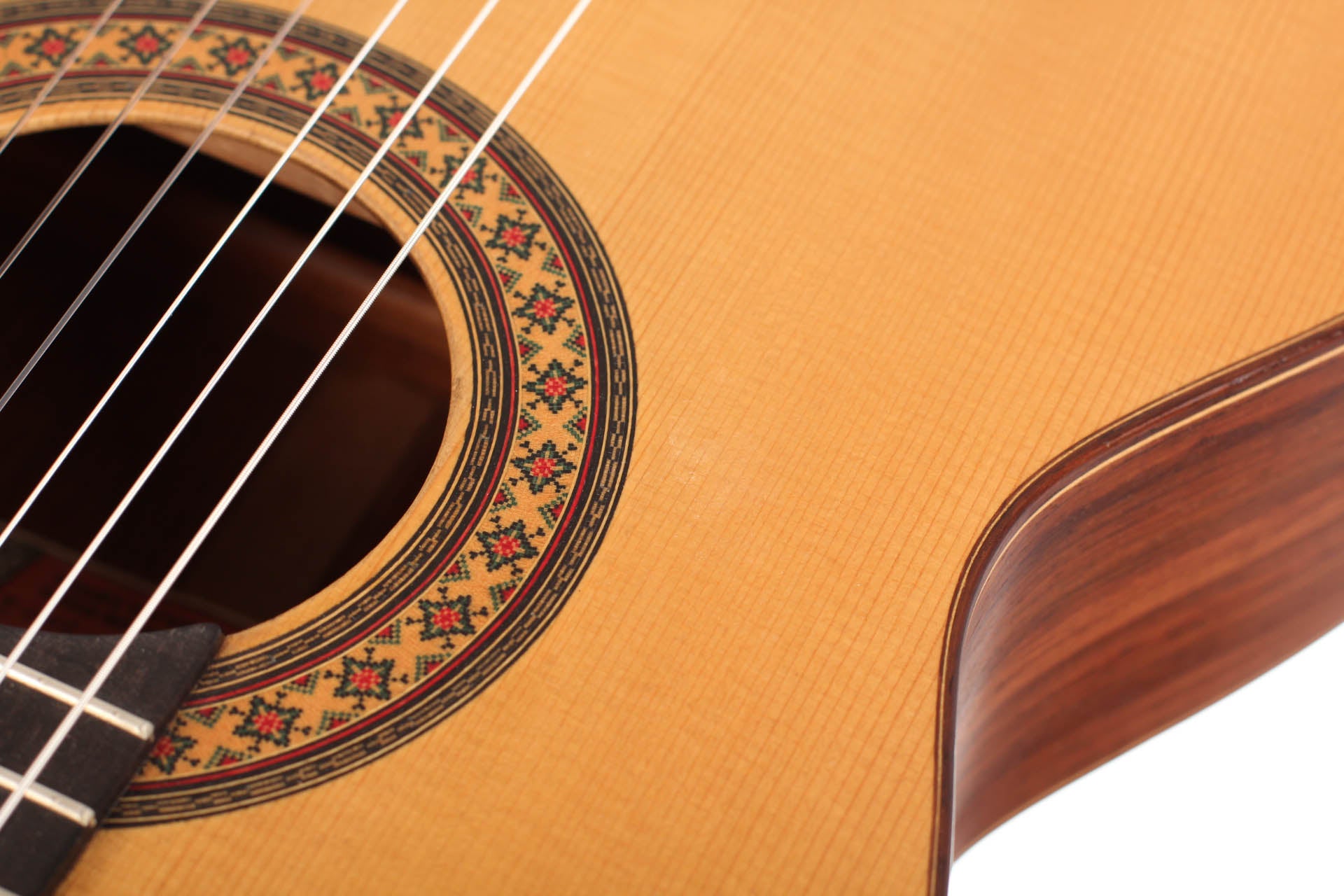Luthier: Andrea TacchiConstruction Year: 1994Construction Type: TraditionalTop: CedarBack and Sides: Indian rosewoodSoundboard Finish: NitrocelluloseBody Finish: NitrocelluloseAir Body Frequency: F sharp / GWeight (g): 1630Tuner: FusteroCondition: Excellent