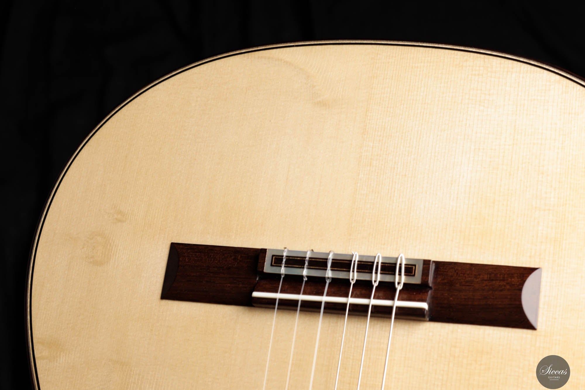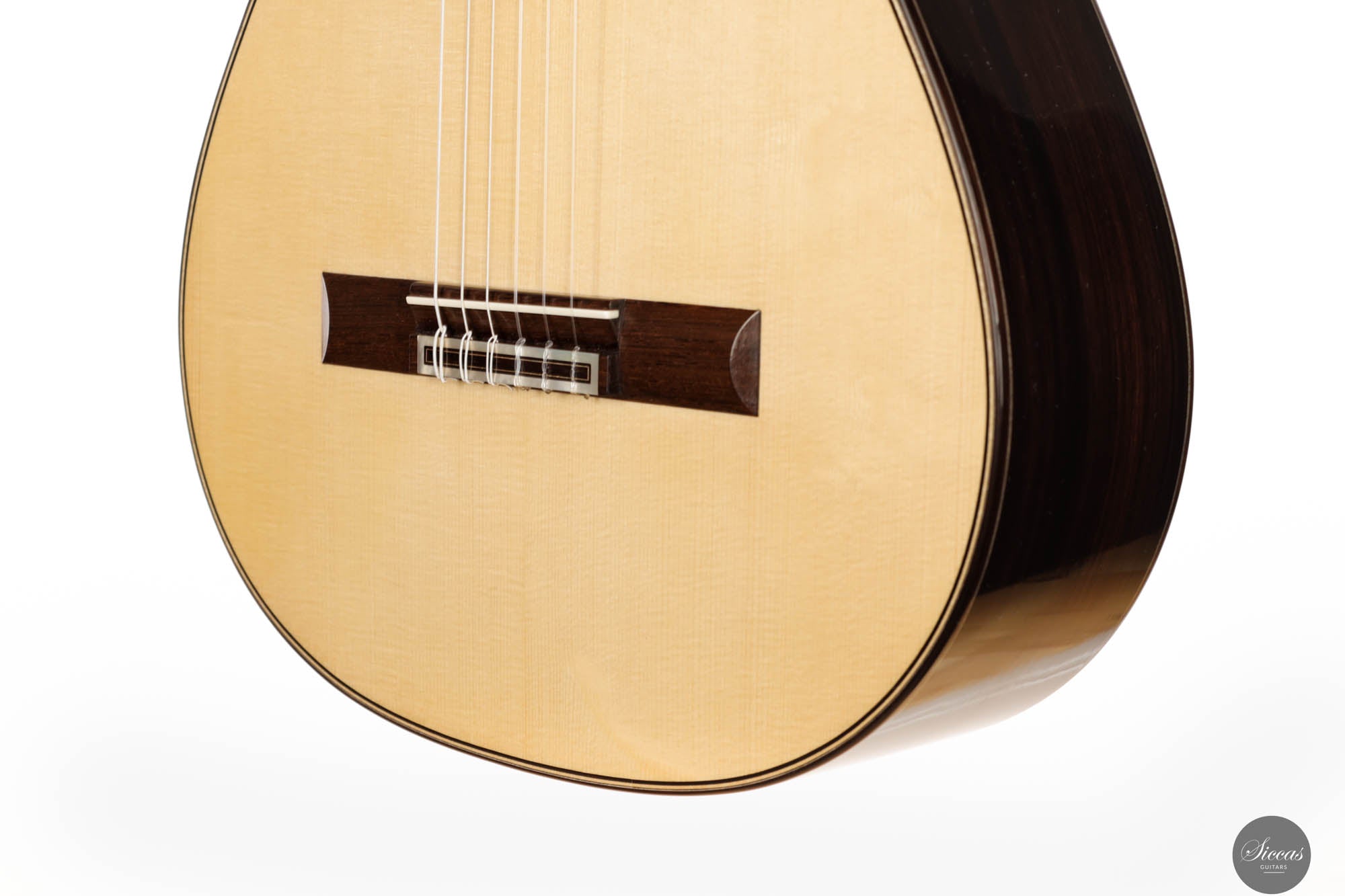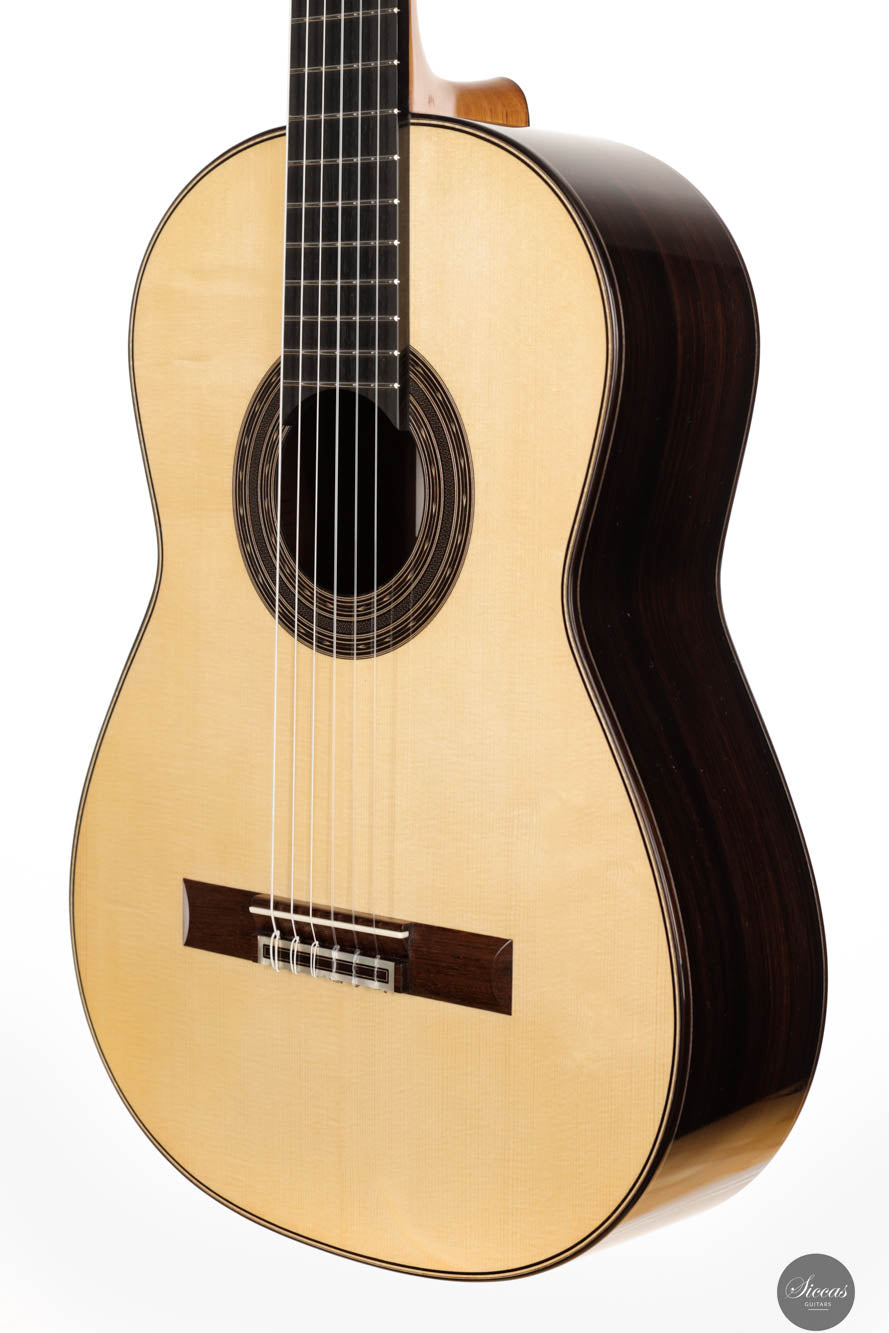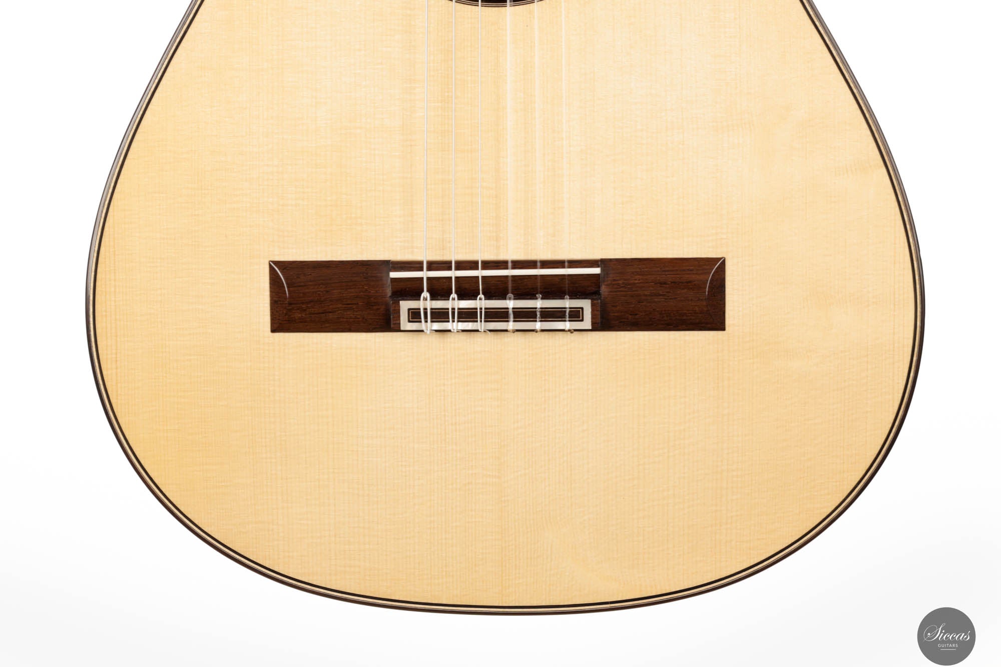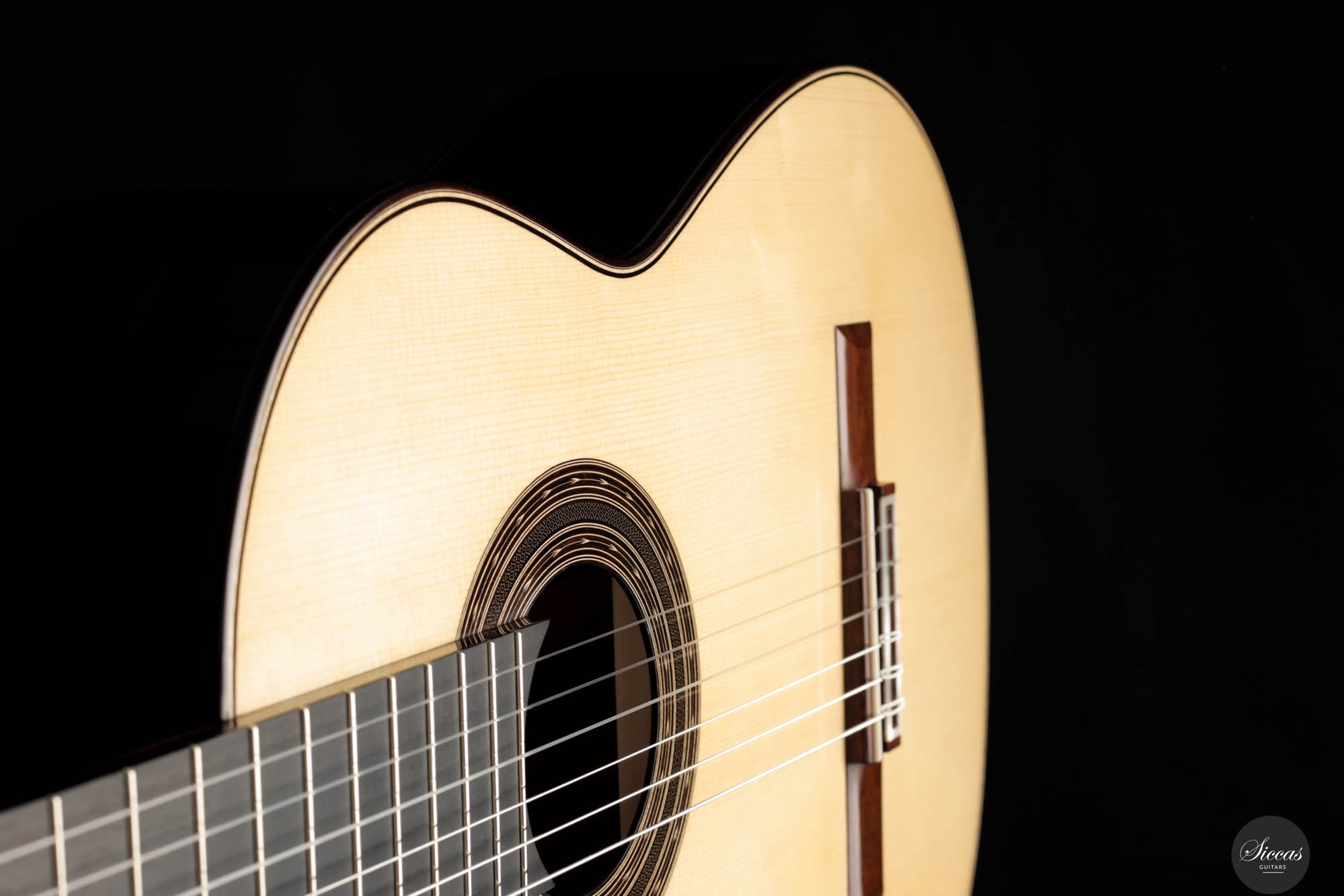 This exquisite guitar is a faithful replica of the 1917 Enrique Garcia instrument, numbered 187 and currently residing within a prestigious collection in Paris. It embodies the quintessential Barcelona style, renowned for its warm, clear, and ringing sound that captures the essence of early 20th-century Spanish guitar craftsmanship. The guitar boasts an impressive bass response, a strong and defined middle range, and trebles that shine with real clarity and long sustain. Its responsiveness to vibrato and a wide variety of tone colors makes it a versatile instrument, capable of expressing the subtlest nuances of emotion and technique, appealing to both classical guitar aficionados and players who cherish historical accuracy along with superb musicality.