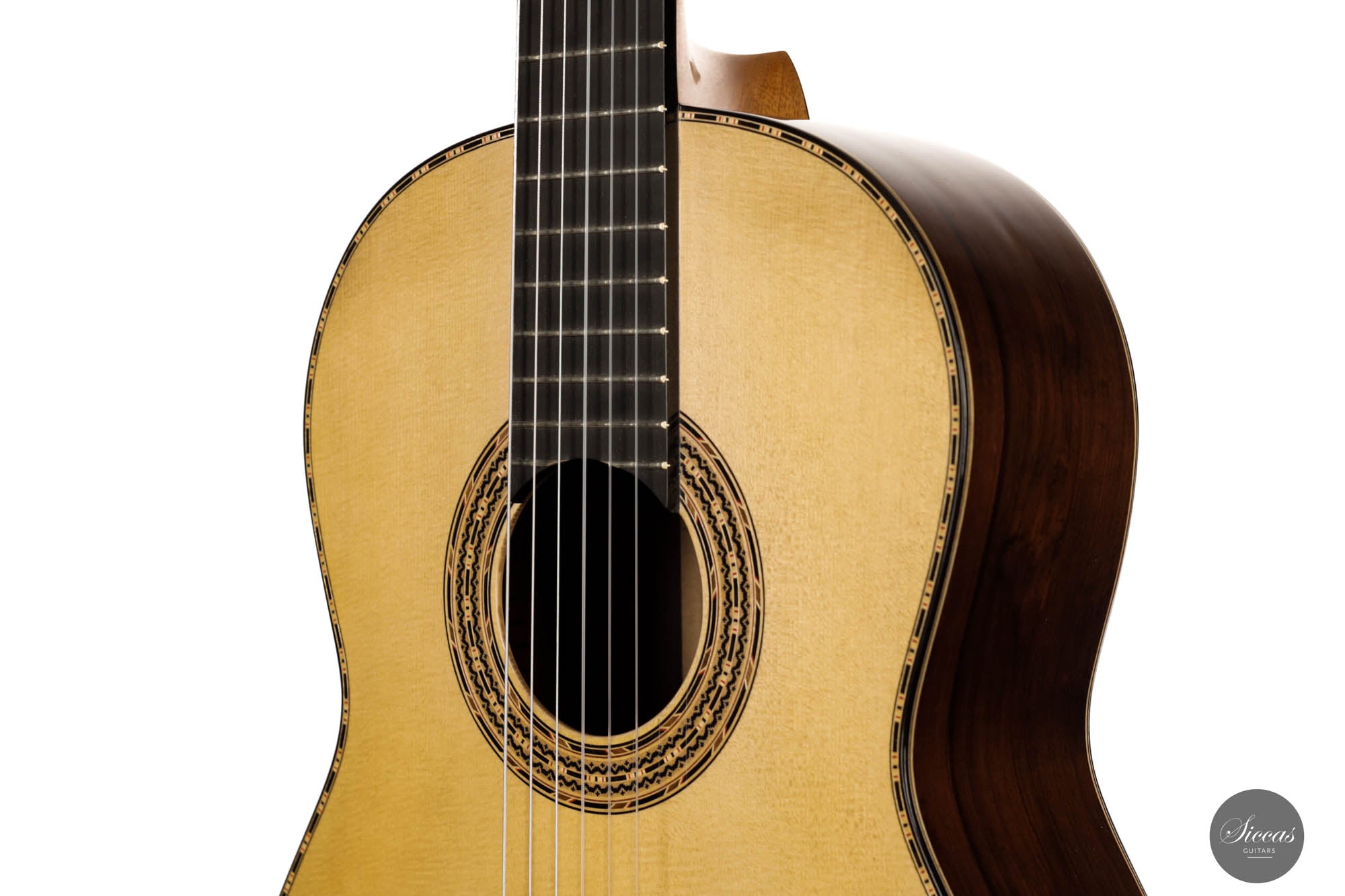 Johannes T’Kindt was born near Ghent, Flanders, and studied luthiery at the International Lutherie School Antwerp (ILSA). During his studies at ILSA, he worked as an intern apprentice with Stephen Hill, where he got familiar with the Granada style of guitar making. He moved to Spain in 2017 and established his workshop in Nigüelas, a small village in the Sierra Nevada close to Granada. His flamenco and classical models are built in the traditional style but show a quite modern look. The woods are very carefully selected, and the craftsmanship is brought to a high level.