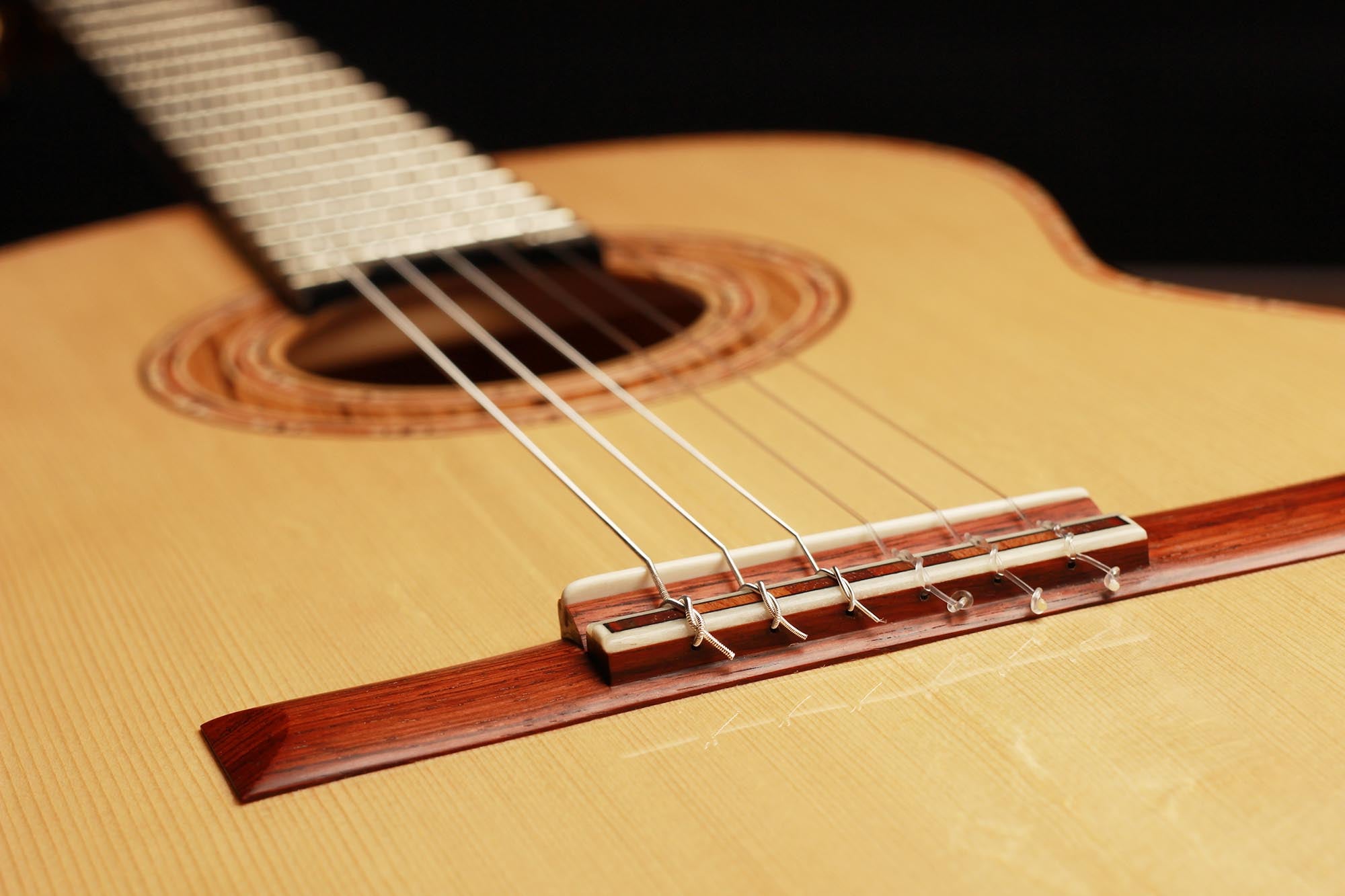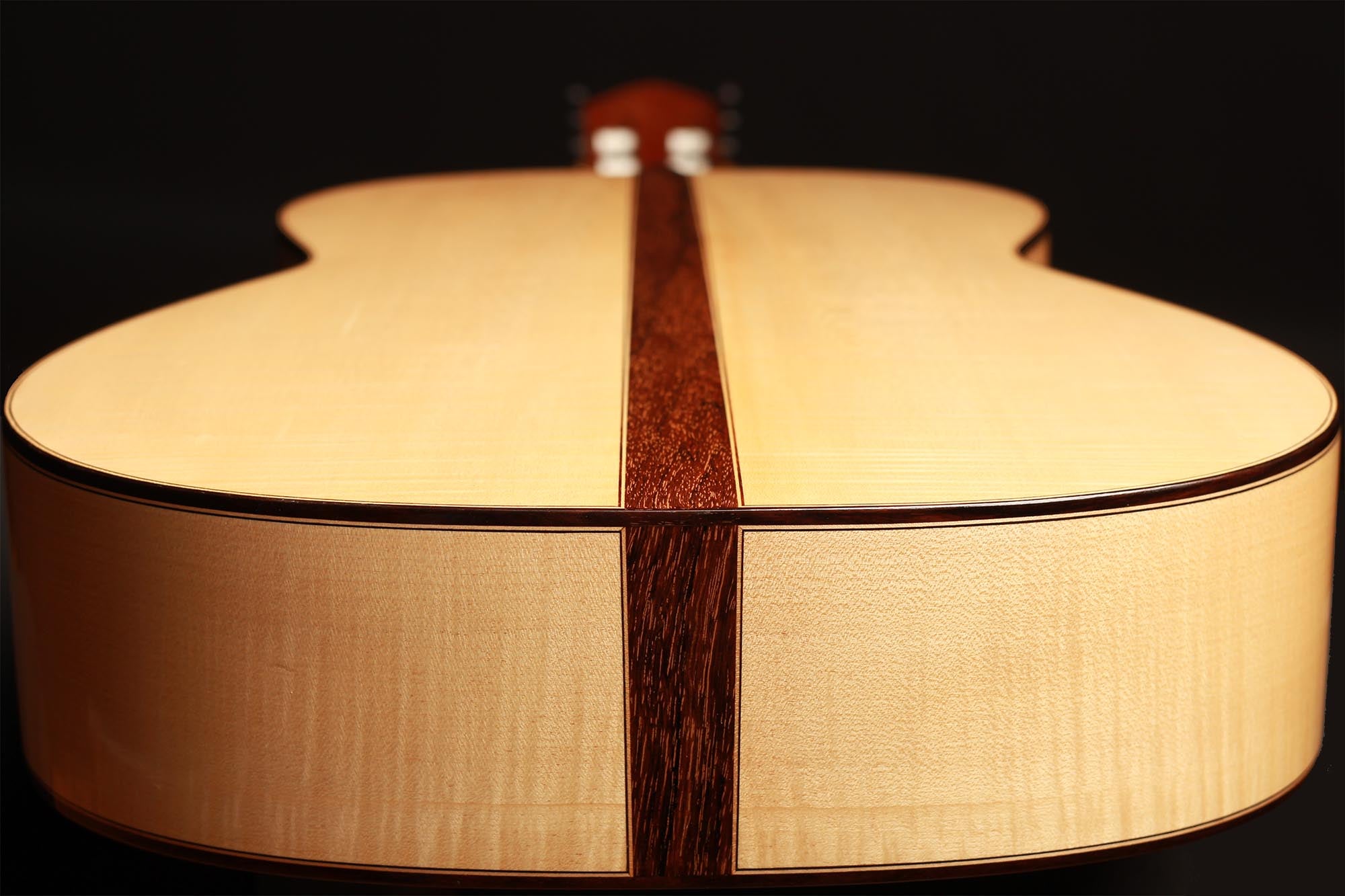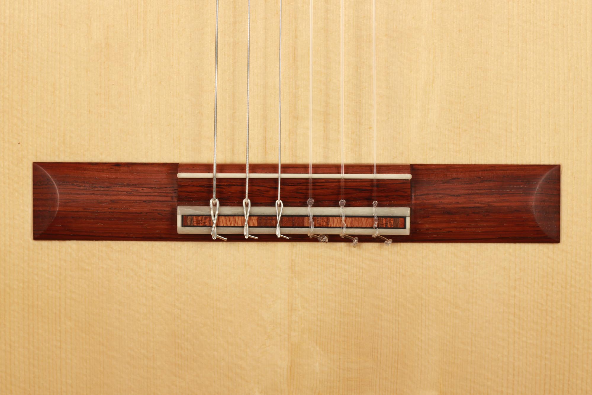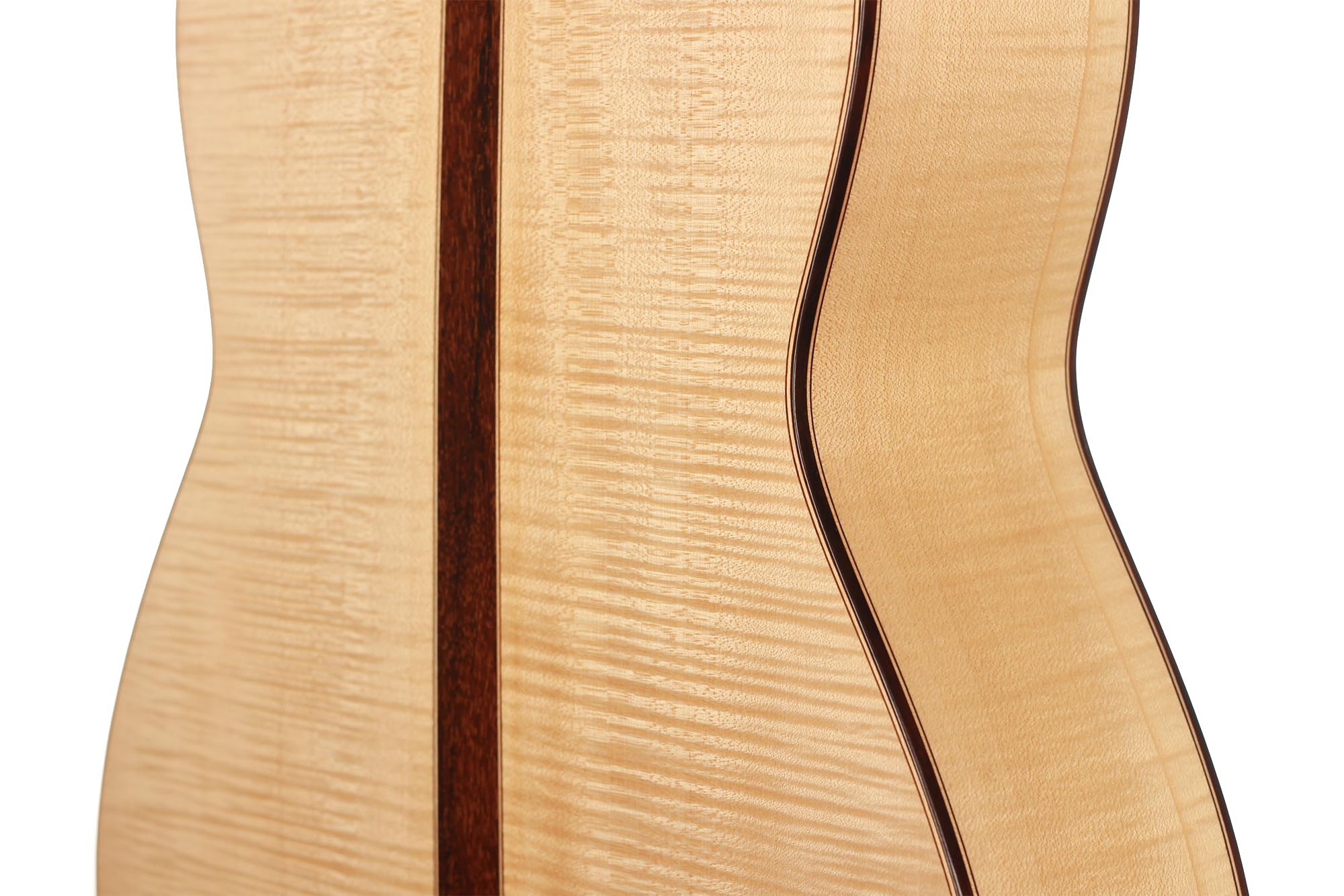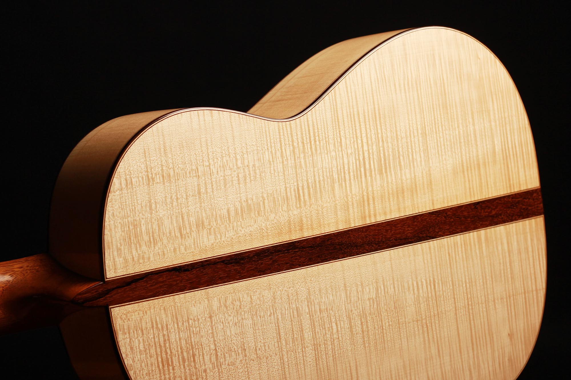 This José Luis Romanillos inspired guitar is just beautiful. It is built very light and sounds thus very airy and open. Due to its easy response and the pleasant neck profile it is also very easy to play. In addition, the instrument offers a rich and colourful tone, with great delicacy and present harmonics. The rosette has a beautiful massive Zebrano inlay, and the inlays are a combination of beech, maple and Indian rosewood. This instrument is really attractive. Not only because of the convincing and wonderfully singing sound character, but also because of the excellent value for money.