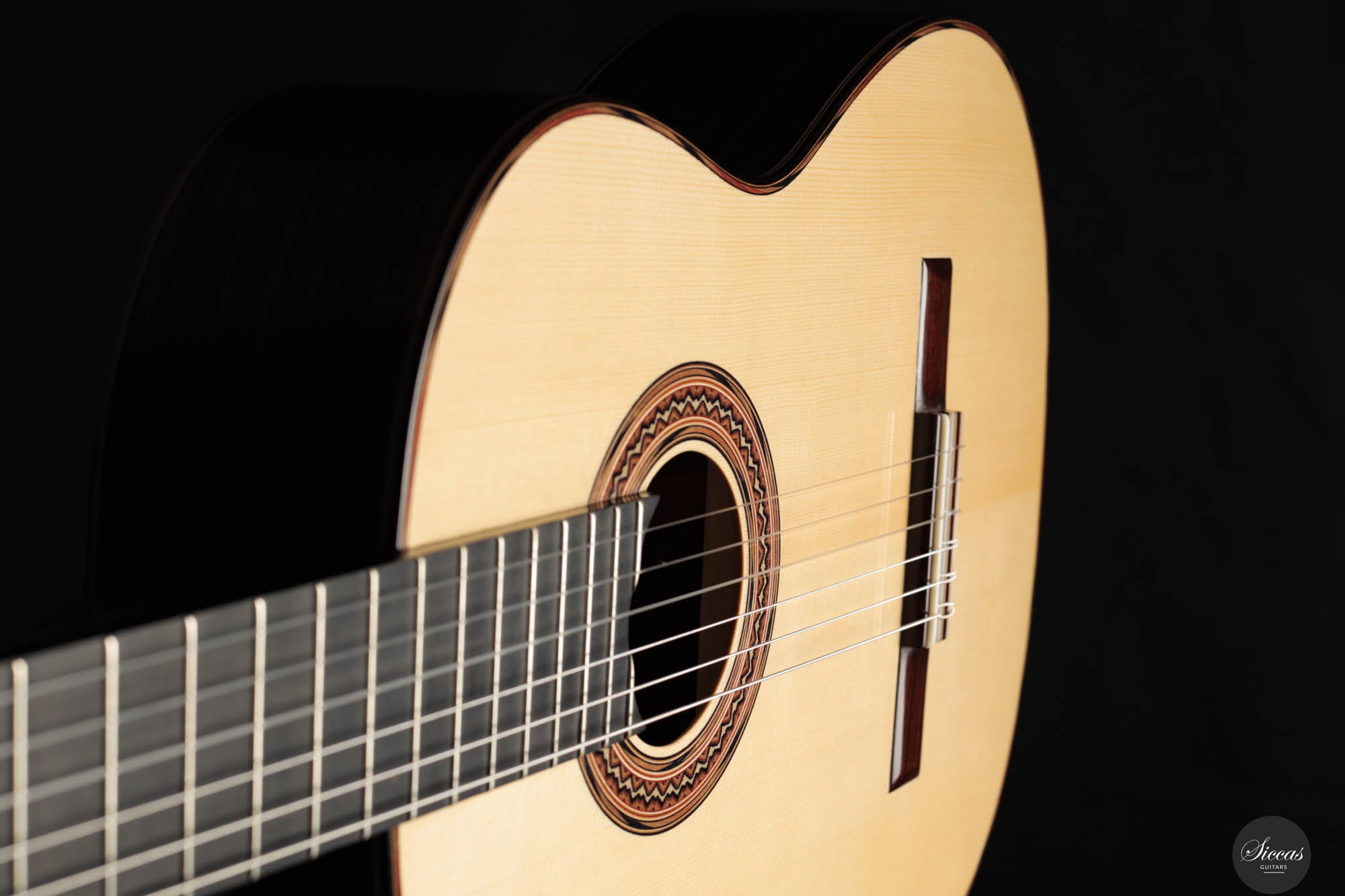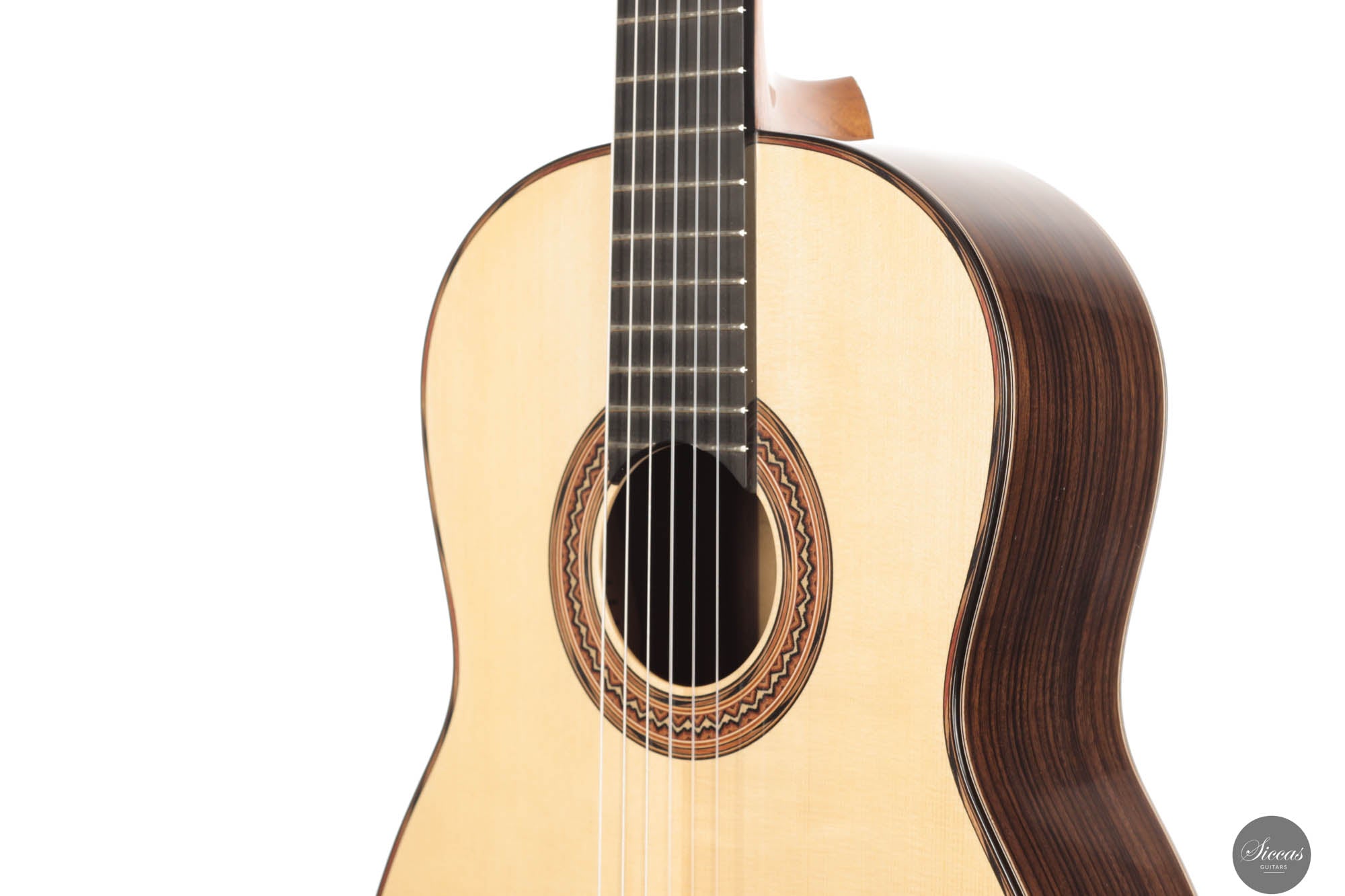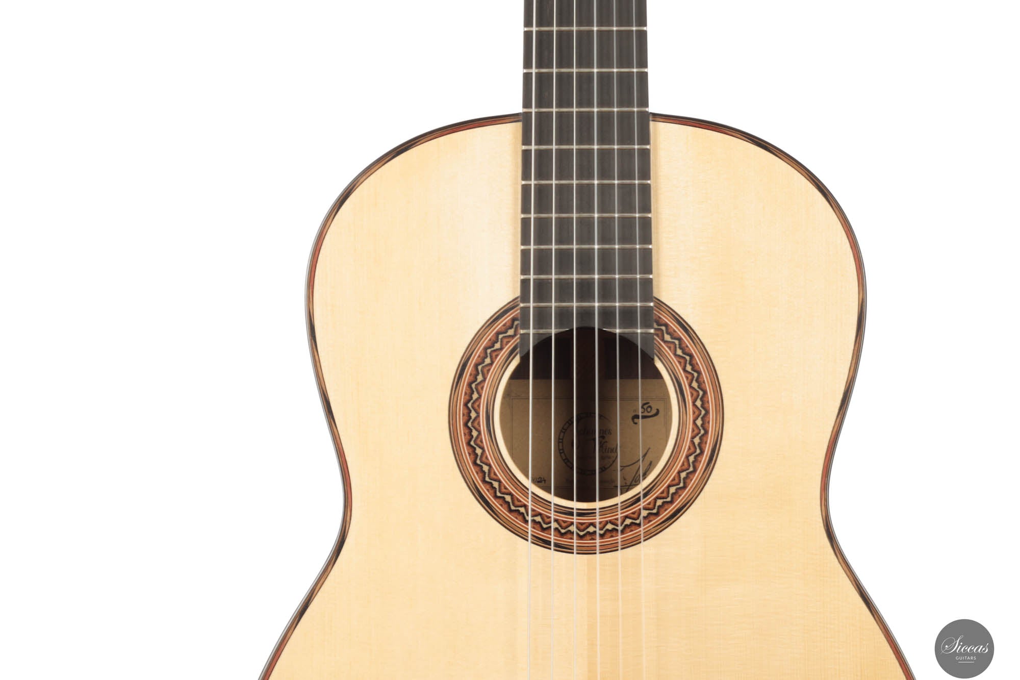 Like many esteemed guitar makers, his construction method is deeply rooted in the traditions of Antonio de Torres. With great respect for Spanish lutherie, he builds handcrafted guitars that embrace both tradition and modern refinements. Each instrument is unique in sound and aesthetics.