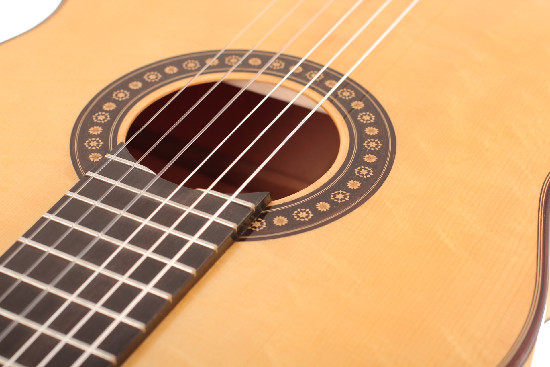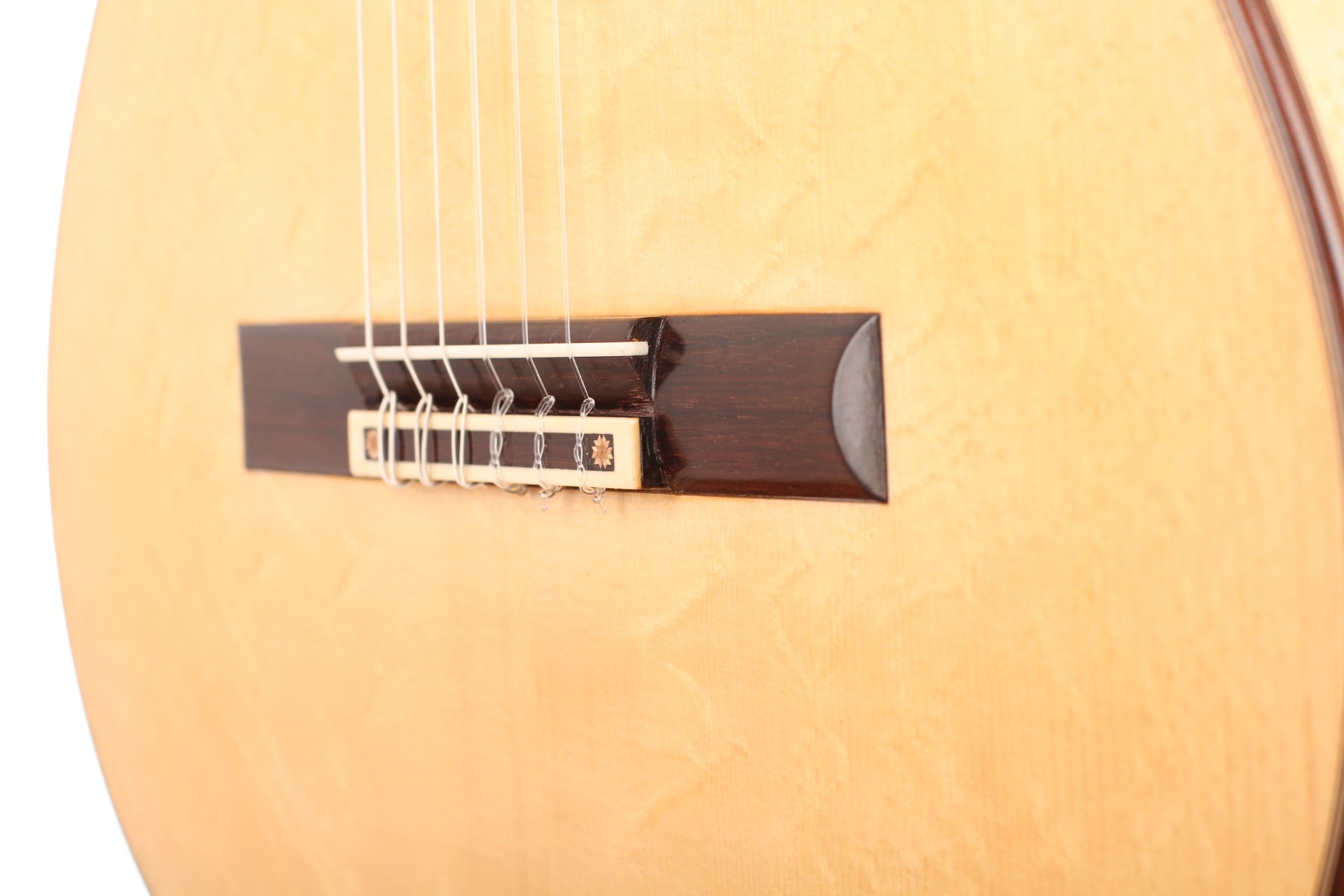 The classical guitar, with its soft nylon strings and characteristic timbre, has become a symbol of chamber music, Spanish tradition, and concert repertoire. Its modern form was shaped by Antonio de Torres in the 19th century, setting the standard for the body, fan bracing, and the 65-centimeter scale length that are still used today. Instruments in this category open up a rich palette from the refined Romantic miniatures of Tárrega to the majestic concertos of Rodrigo. Here you will find guitars that preserve historical continuity and at the same time inspire new interpretations.Look all products of the collection -