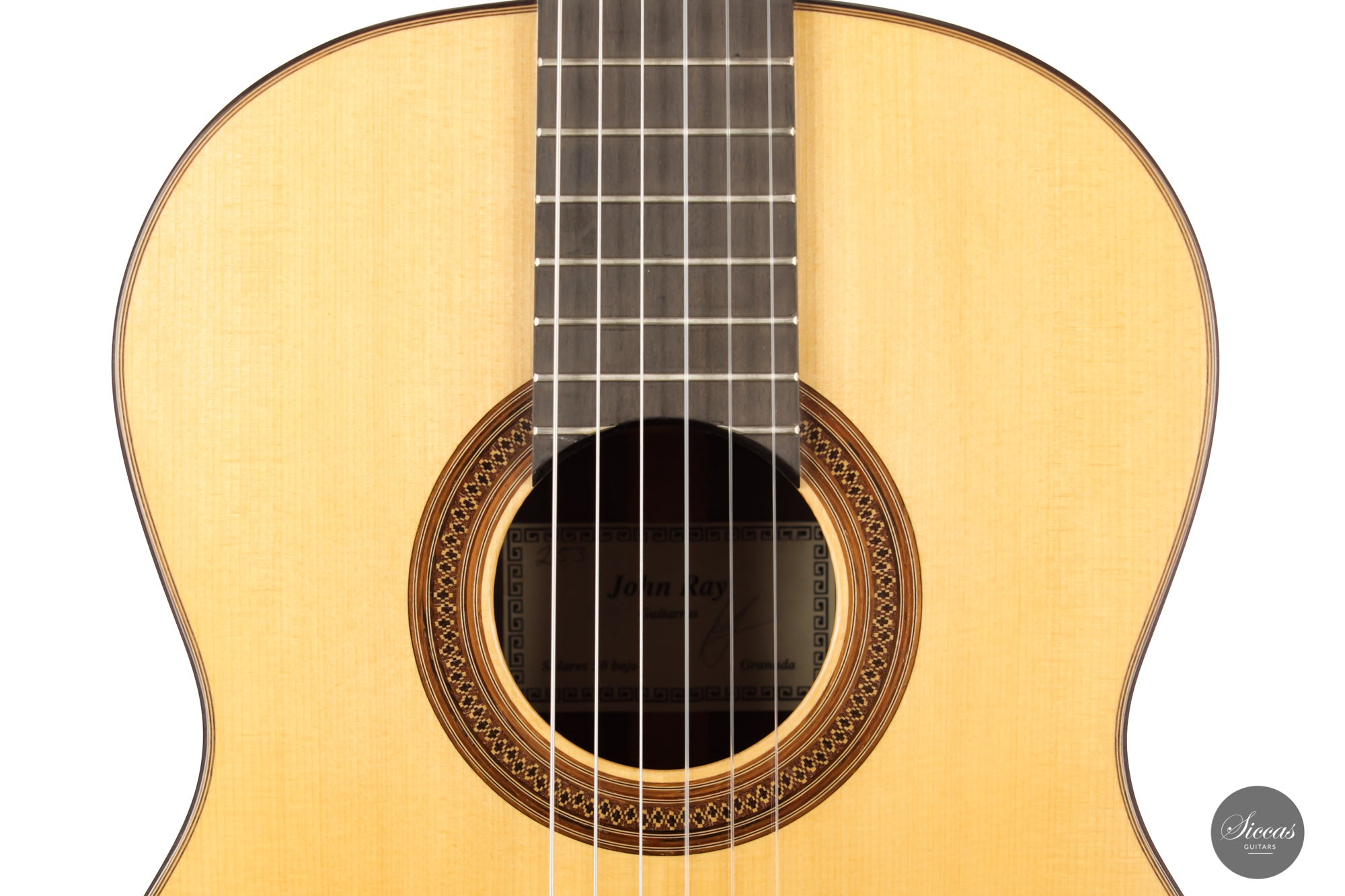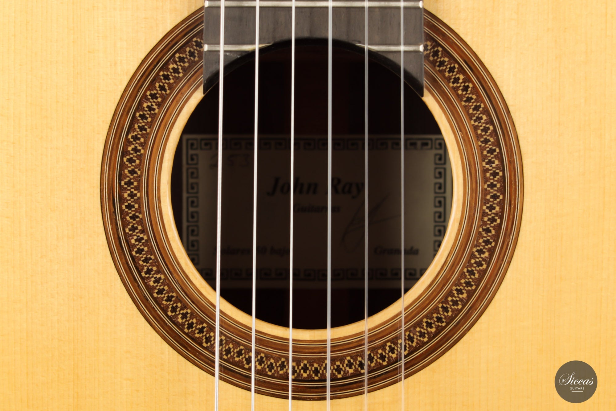 Originating from Canada, John Ray came to Granada in 1989 to learn the profession of a guitar maker. He was able to learn a lot from the local luthiers, especially from the German guitar builder Rolf Eichinger, who had emigrated to Granada as well, to commit himself to guitar making. Furthermore, John restored a lot of guitars made by great masters, as for example Miguel Rodriguez, Vicente Arias, Manuel Ramirez and Salvador Ibañez. Today his guitars are well known among professional guitar players.