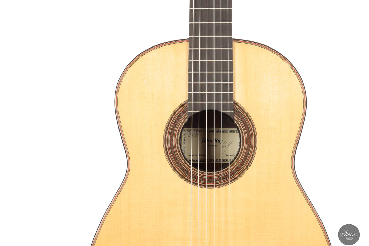 Native of Canada, John Ray came to Granada in 1989 to immerse himself in the art of guitar making. There, he was fortunate to learn extensively from local luthiers, especially from German guitar builder Rolf Eichinger, who had also emigrated to Granada to dedicate himself to guitar making. Over the years, John went on to restore numerous masterpieces by legendary luthiers such as Miguel Rodriguez, Vicente Arias, Manuel Ramirez, Salvador Ibañez, and others. Today, his guitars are highly regarded among professional musicians around the world.