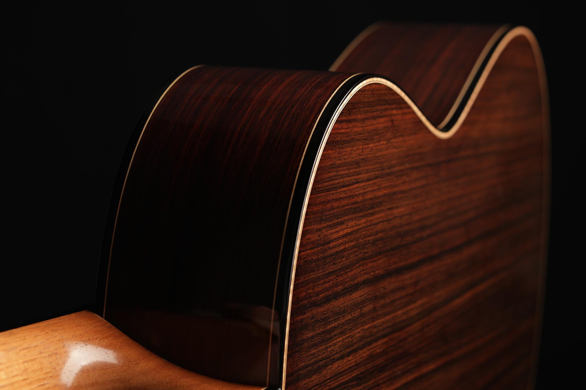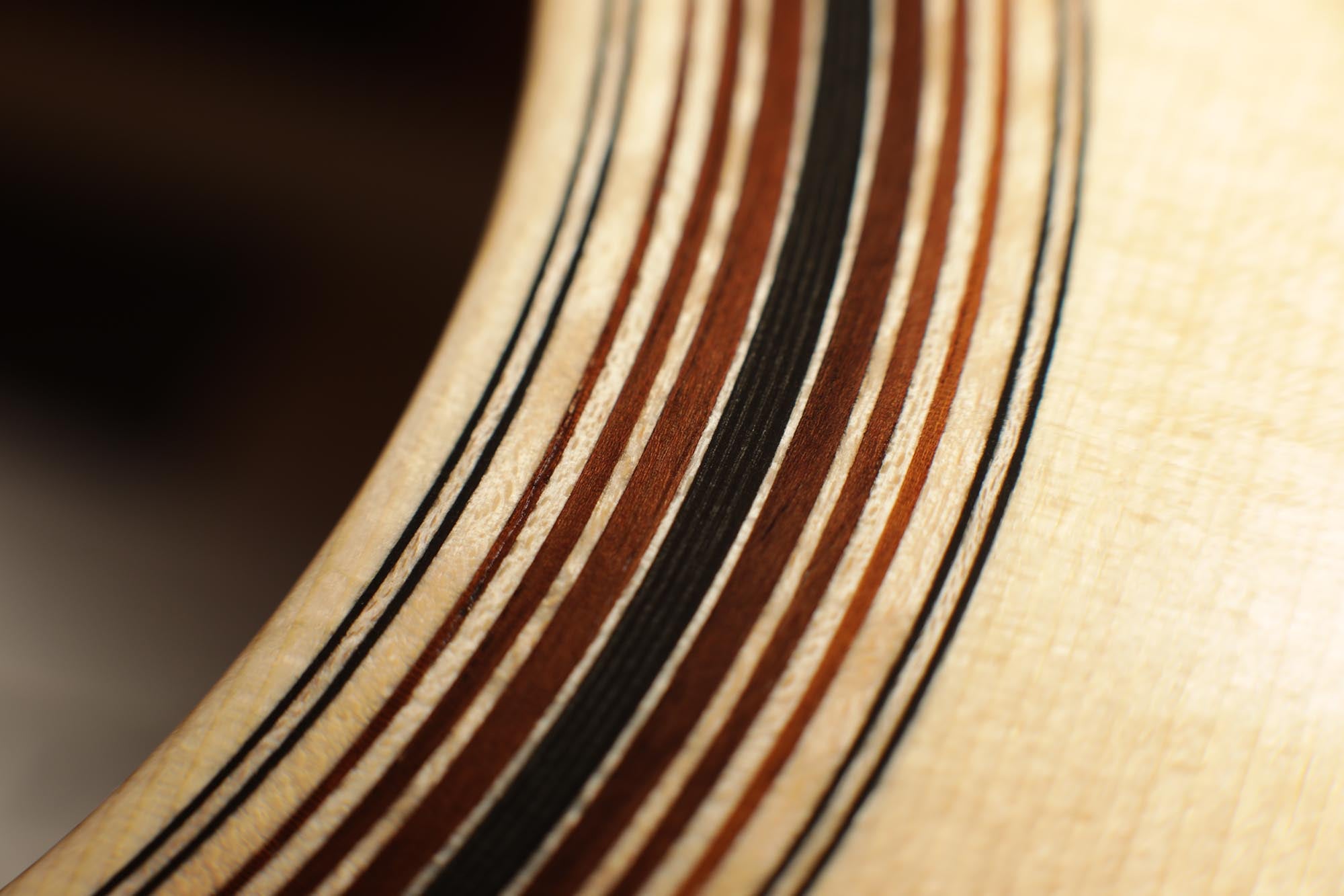 As a passionate guitarist, he discovered his interest in guitar building in his youth. After an apprenticeship as a carpenter, he followed his fascination for wood and sound and completed his training as a plucked instrument maker at the technical college in Mittenwald in 2007. From 2013 to 2016 he deepened his knowledge of acoustics, restoration, innovative construction methods, and musical instrument design in the following study program for musical instrument construction at the college of Markneukirchen. As a result of his hard work, he successfully completed the master craftsman's examination in Mittenwald in 2017. During the exam, he presented exactly the same guitar model that we present here.