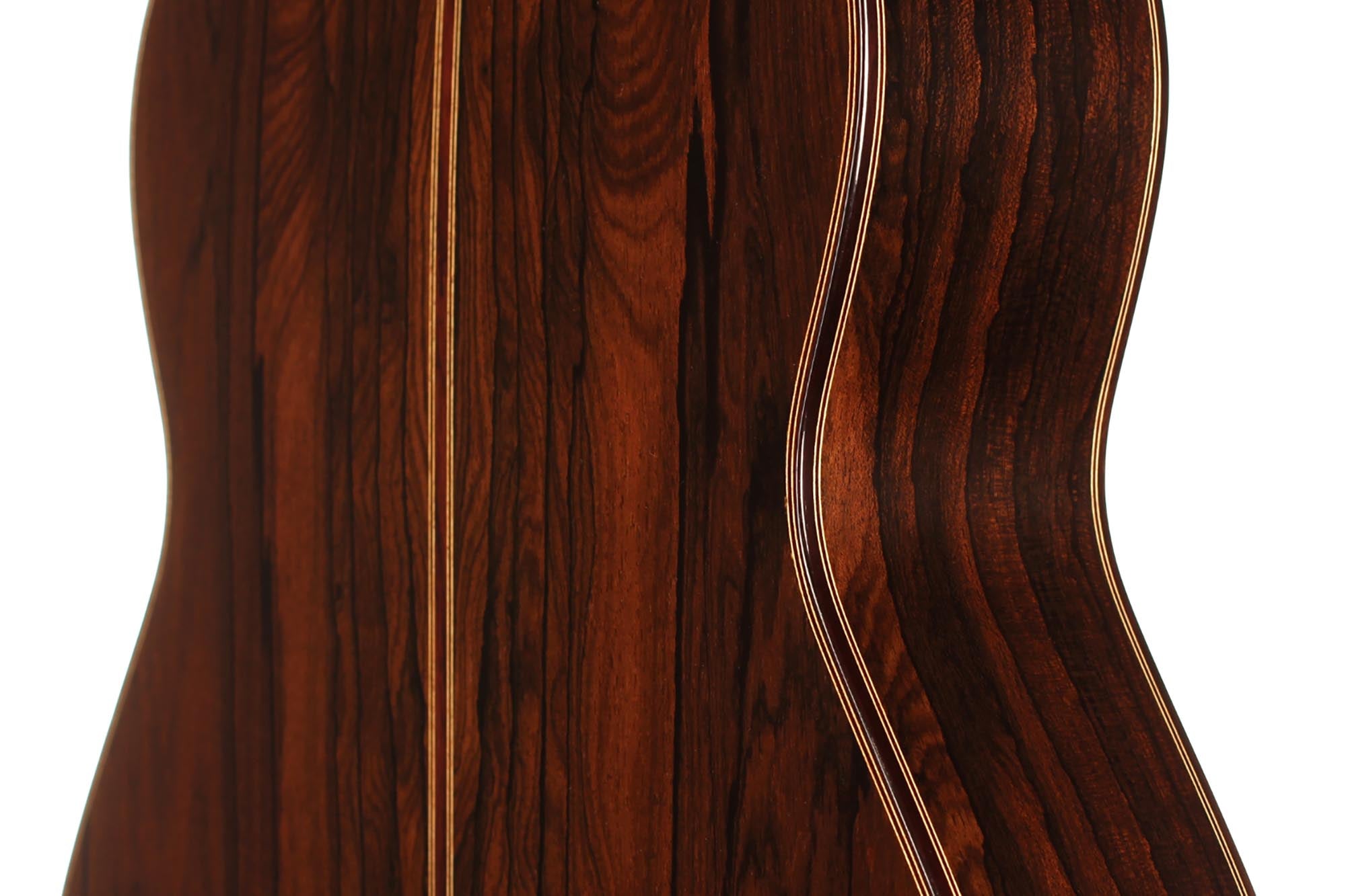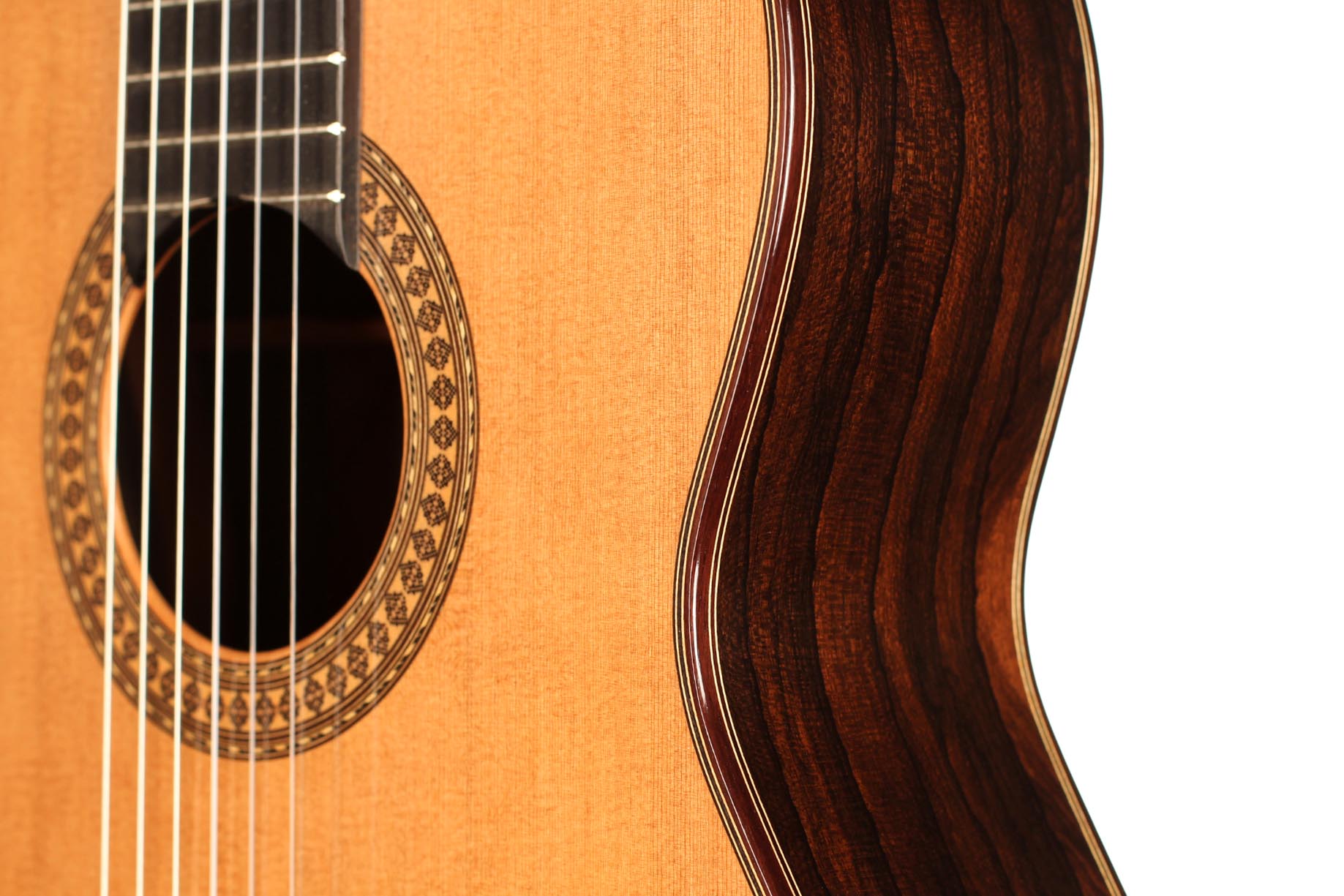 This guitar is Cites-free (CF) and has beautifully figured Ziricote back and sides. It is a first-class Granadinian guitar with full warm sound, responsive sharp basses and an immediate projection. This very sensitive guitar is truly comfortable to play and offers wide possibilities of expression. A hard-shell case is included.