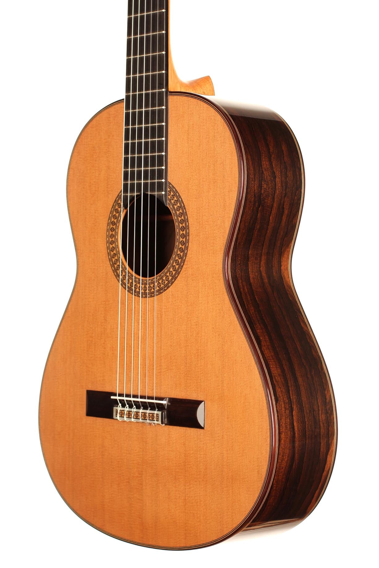 Price: $7,102Sale price $7,102 Price:Unit price / per Tax free (0% BM)$0Save: $-7,102Luthier: Elvis PajaresConstruction Year: 2025Construction Type: Double TopTop: CedarBack and Sides: Indian rosewoodSoundboard Finish: French polishBody Finish: French polishAir Body Frequency: F / F sharpWeight (g): 1415Tuner: Kris BarnettCondition: New -