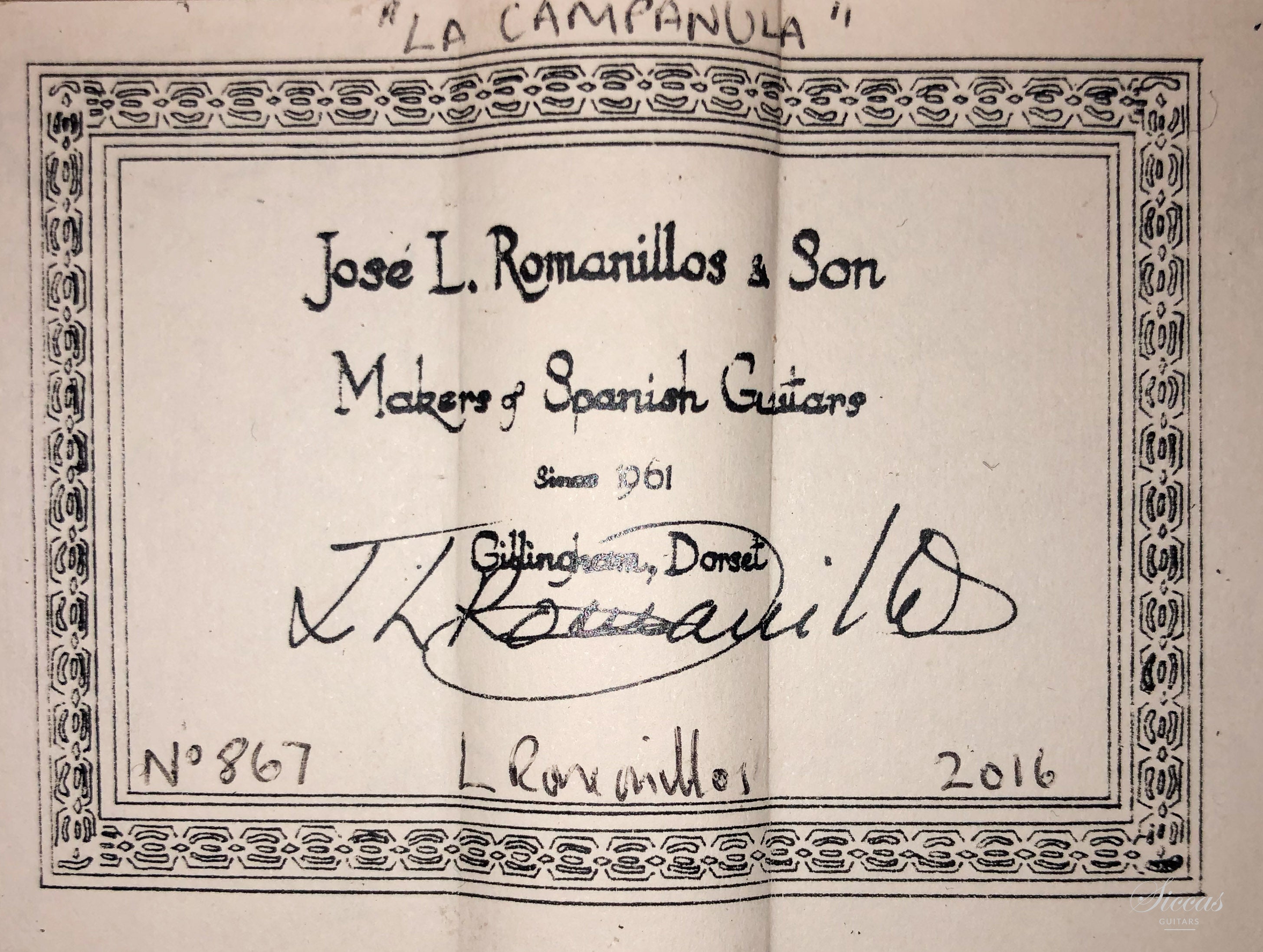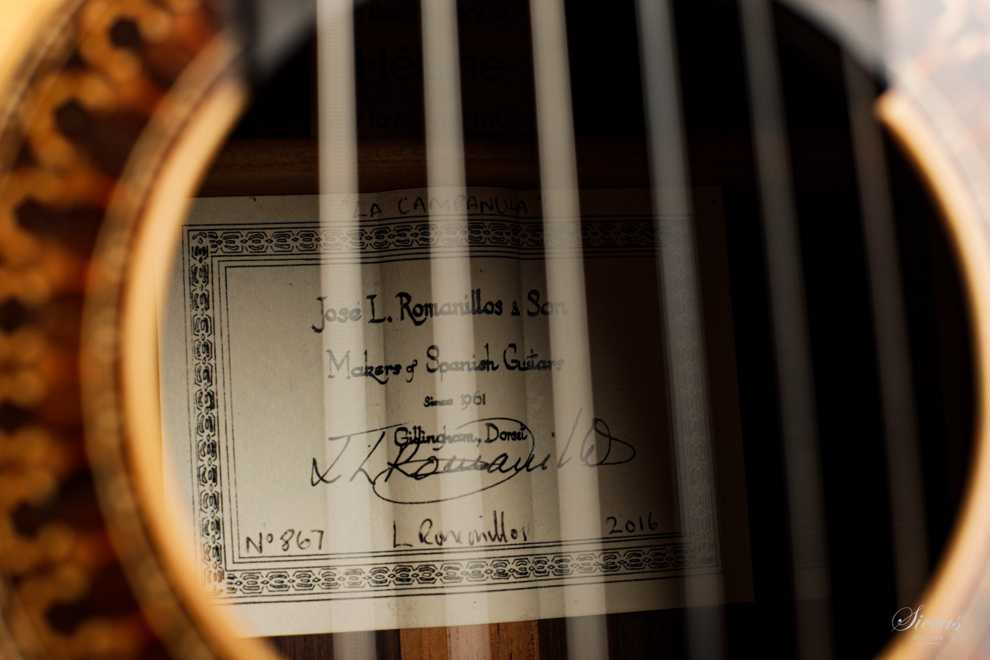 L. Romanillos has given courses on Spanish guitar making in numerous countries as well as lectures and seminars about the organology of the instrument. He has also given lectures on the history and development of the vihuela de mano and the Spanish guitar. In addition, he was a member of the Crafts Council of Great Britain for ten years. He is living in Guijosa, a rural district annexed to Sigüenza in the northern part of the province of Guadalajara in Spain, since 1995. In collaboration with his wife Marian, he published a dictionary of stringed-instrument makers and guitar-makers of Spain titled “The Vihuela de Mano and the Spanish Guitar” in 2002. His son Liam Romanillos is working with José in the family workshop since 1982. Over the 40 last years, father and son built guitars amongst the finest and most sought after worldwide.