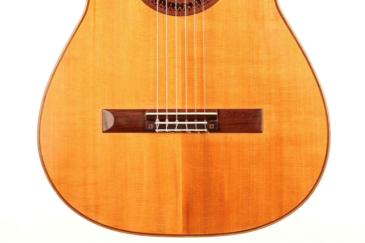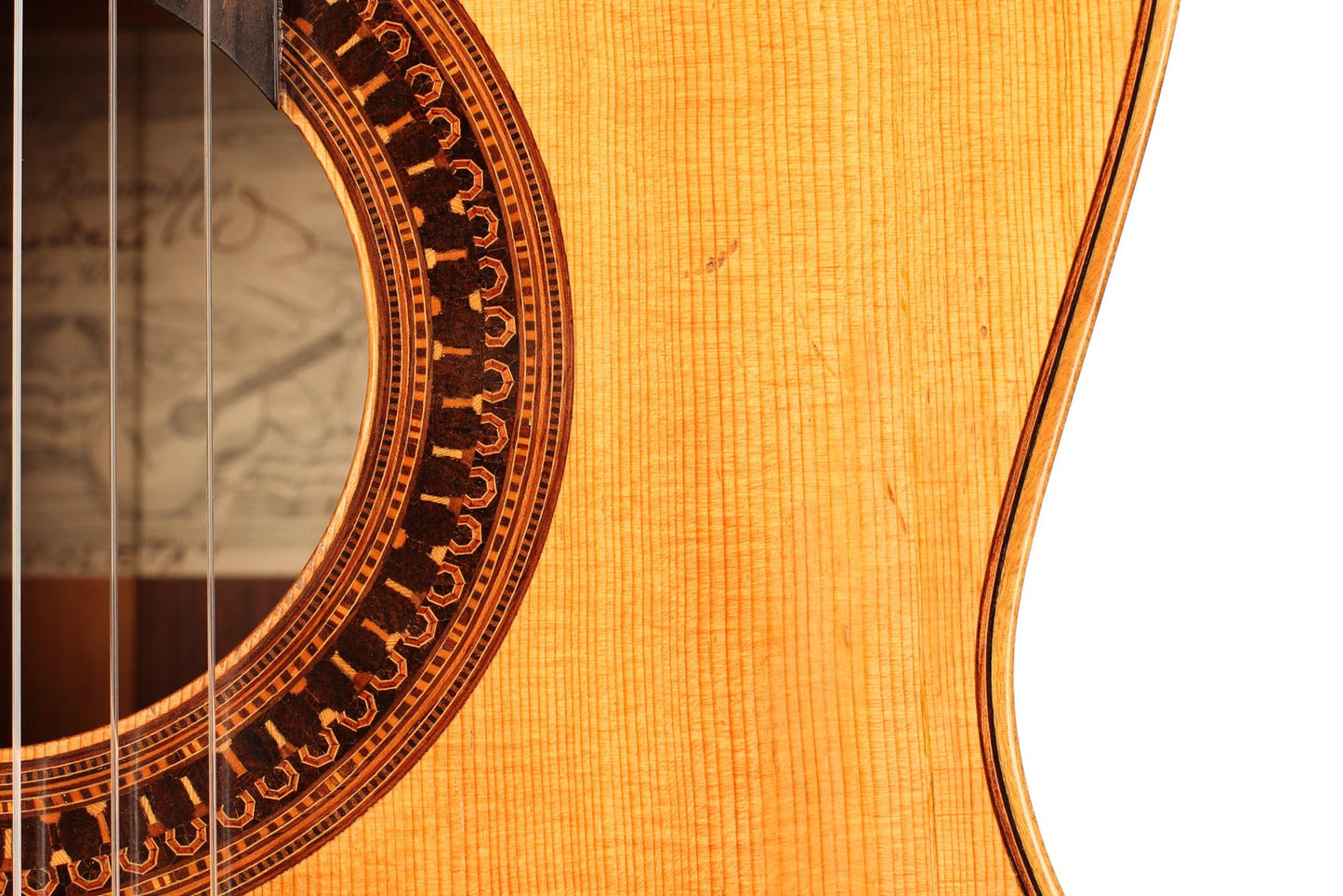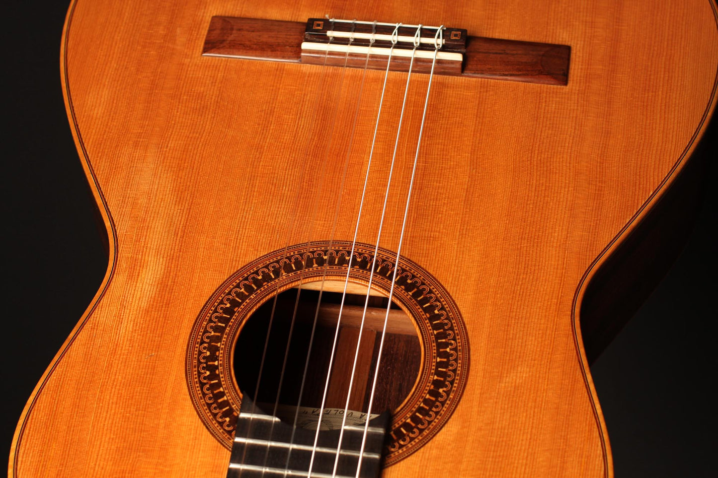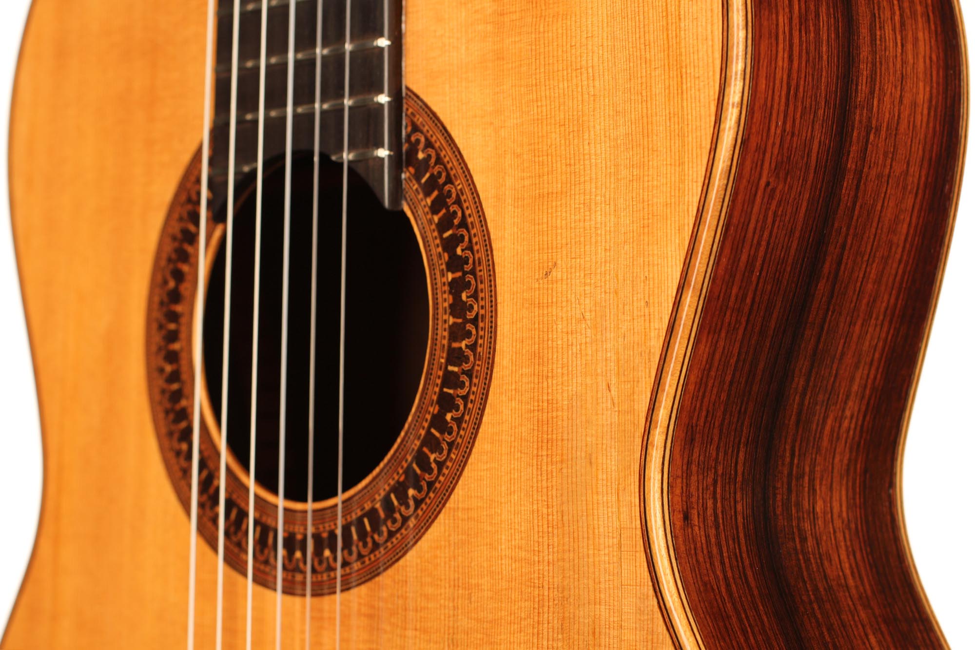 This beautiful instrument was built by José Luis Romanillos in 1984 and is called “La Violeta”. It is an unbelievable instrument for both its sound and aesthetic qualities. This guitar is a very true and sincere instrument. The separation of the voices is perfect and the sustain is fantastic. This guitar not only is a great piece of art and history but also a beautifully sounding instrument with a wide range of colours. The condition is very good, with only a few very well-repaired and stable hair-line cracks on the top. All parts original.