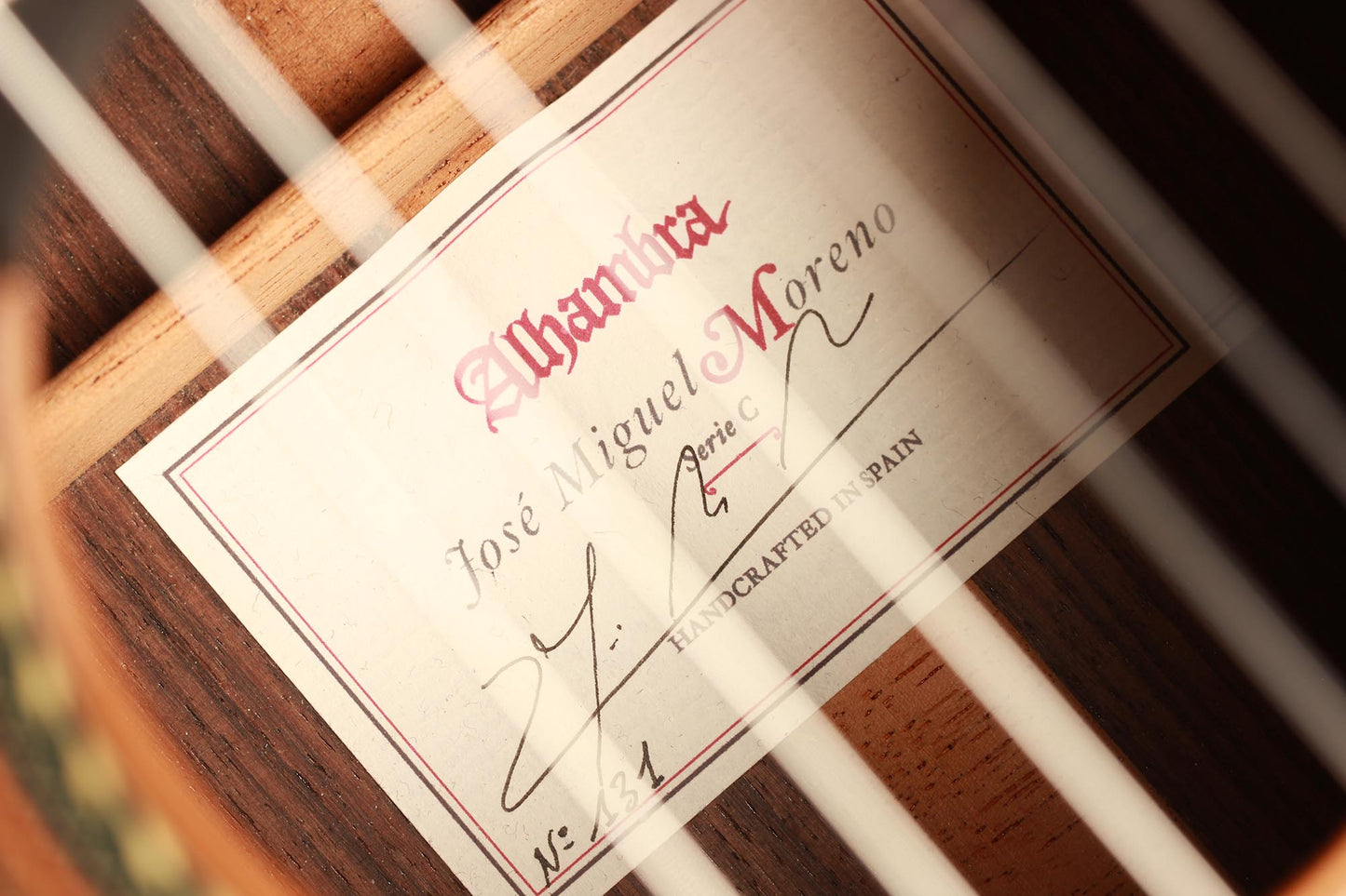 In contrary to the standard Alhambra series this instrument is built in an own workshop in the Alhambra factory. The quality of this guitar built by master José Miguel Moreno is remarkable. Designed under the name "Serie C", it can fill concert halls with its clarity, power, balance and projection. This instrument is in very good condition with only a few superficial marks on the top, which is refined with shellac and hand-signed on the inside. The overall volume and playability of this guitar is excellent. It has a sweet and warm sound character and is very versatile. The Series C is designed for guitarists looking for a modern and elegant instrument with excellent sound performance and high quality.