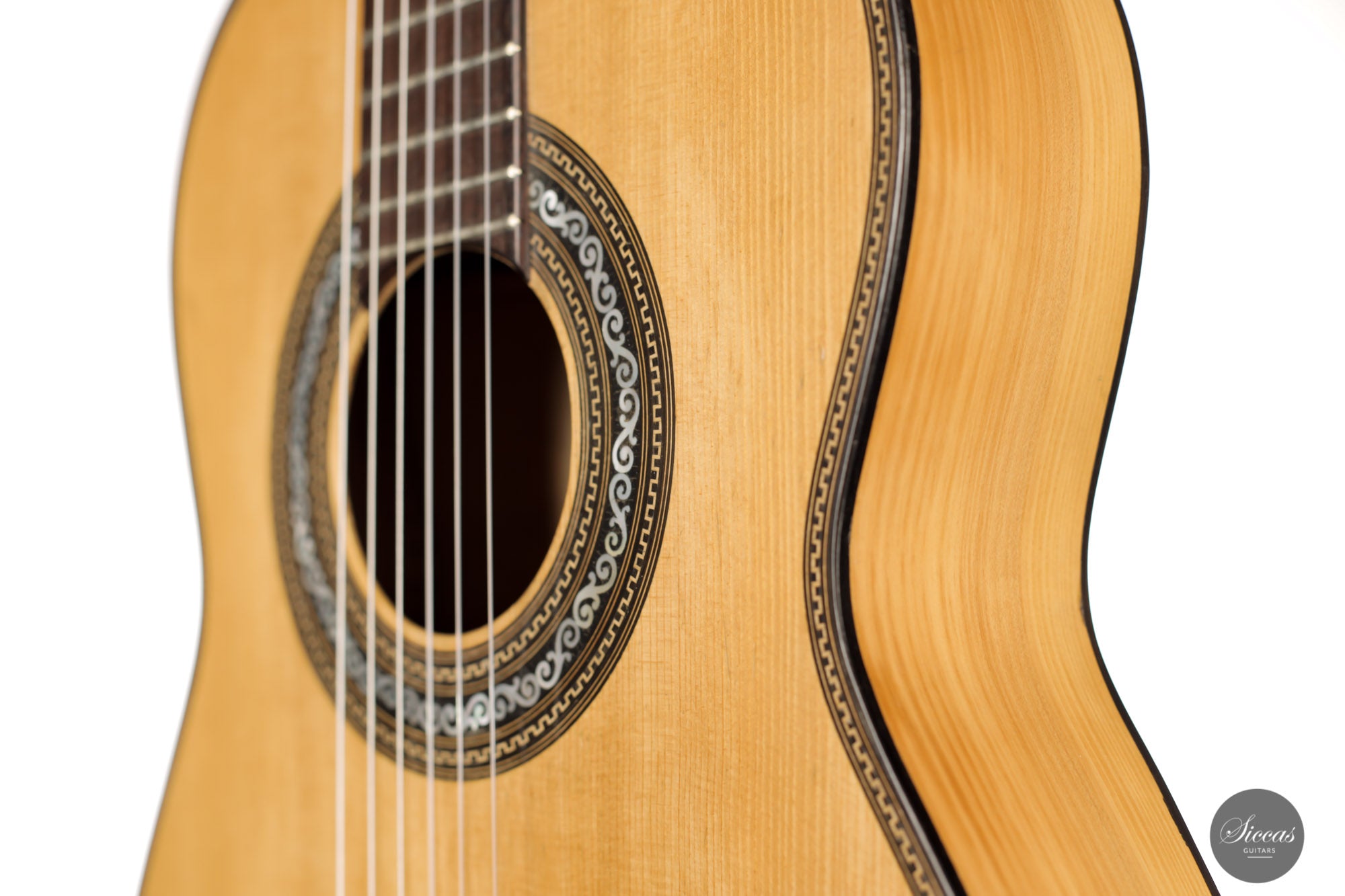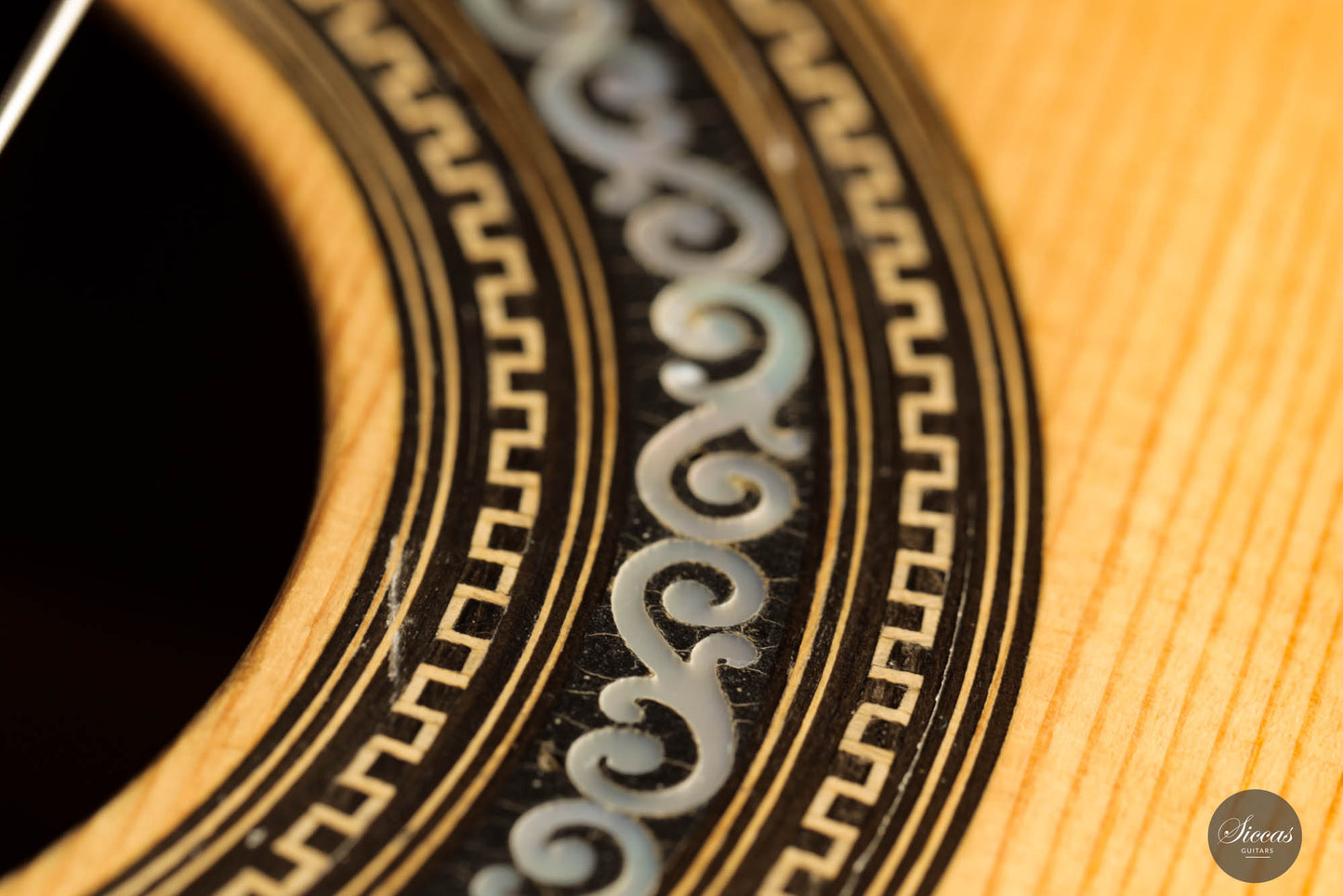 The signature instrument of José Ramirez I was the so-called 'Guitarra de Tablao', a guitar with a slightly larger body than was common at the time, designed for strong sound projection. This instrument was most suitable for the traditional Spanish music of the period, and the sound of the 'tablao' guitar fully embodies the Spanish tonal characteristic of the turn-of-the-century era. This model was available in a variety of decoration levels and timbers, from very sober to richly ornamented.