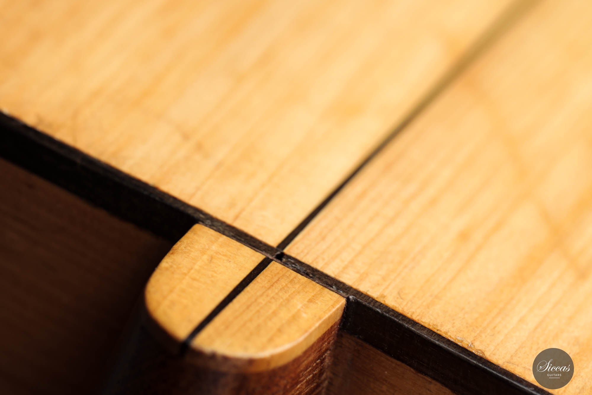 Sound wise, this guitar with 7-fan bracing has excellent liveliness and power. When playing, the entire body vibrates intensely and gives the guitarist pleasant feedback. Especially the trebles stand out with their presence and sustain. Overall, this is a one-of-a-kind guitar in fantastic condition suitable for active players and collectors alike.