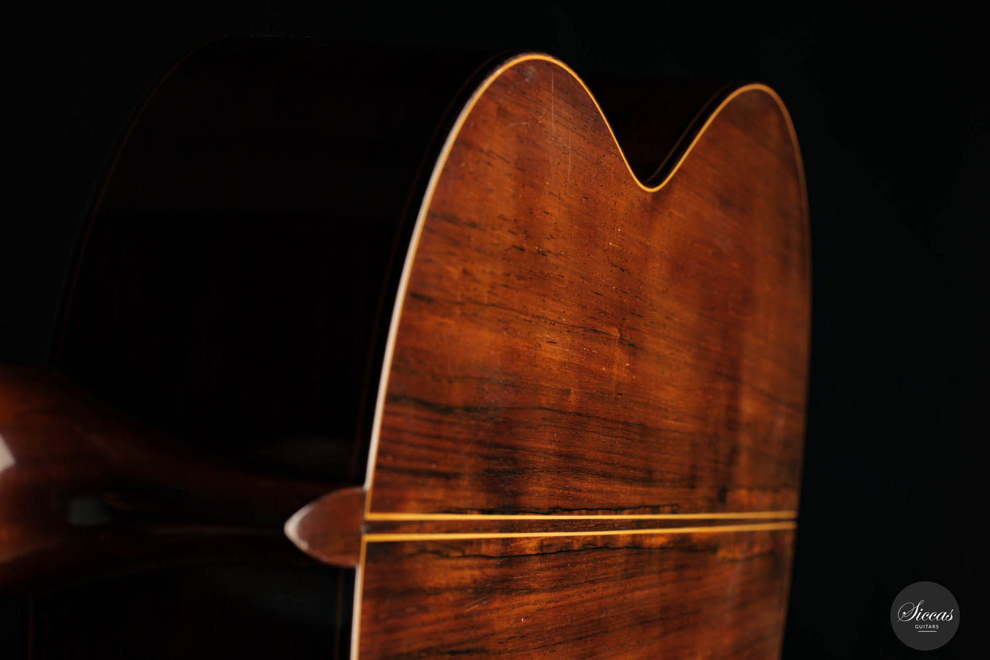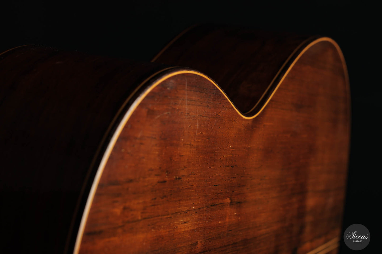 Despite the superficial hairline crack on the upper bout bass side, the guitar's sound quality remains uncompromised. Far from detracting from the guitar's appeal, this minor imperfection adds an authentic charm, telling a tale of its rich history and careful preservation. It bears testimony to the guitar’s longevity and the meticulous care that has gone into preserving it over the years.